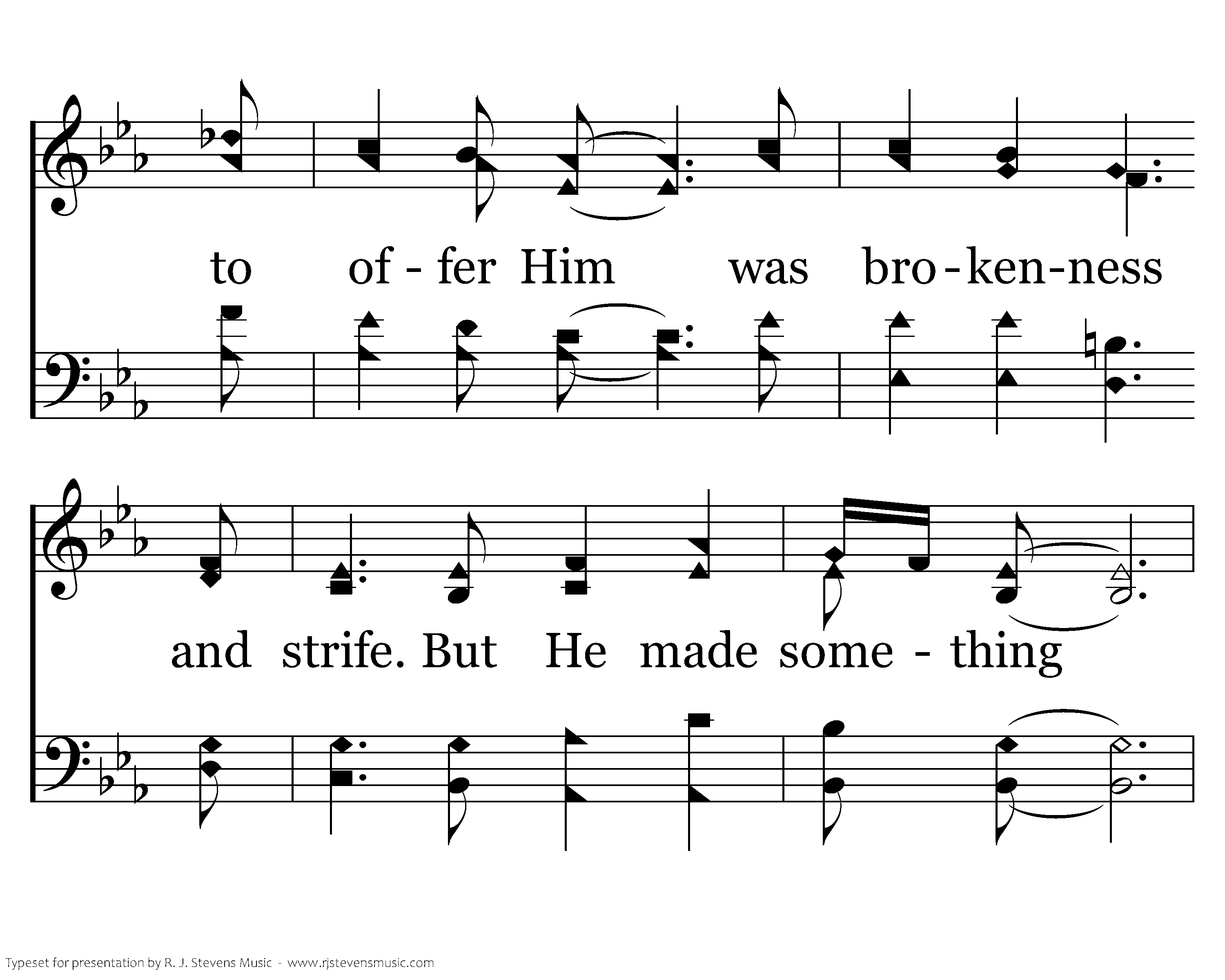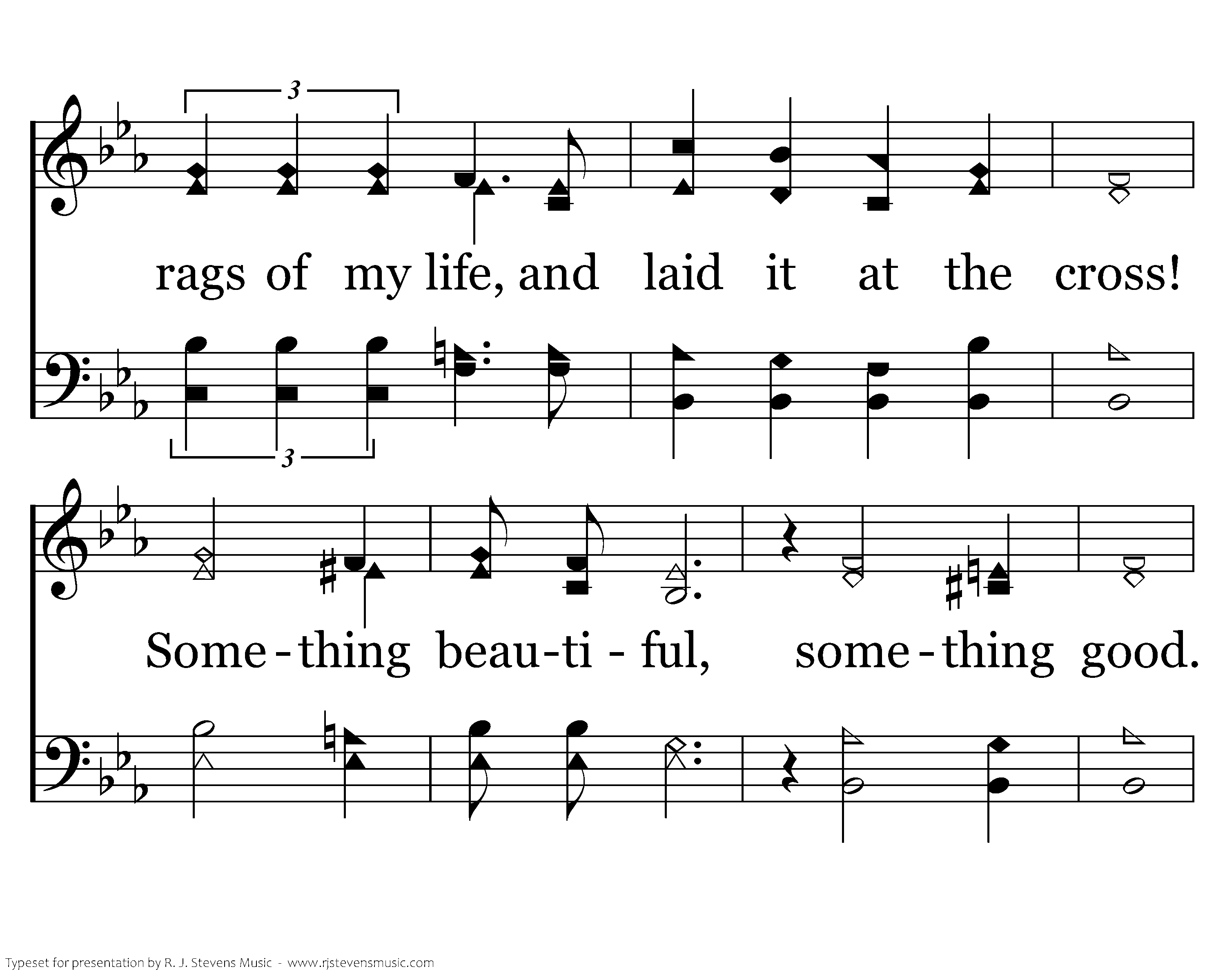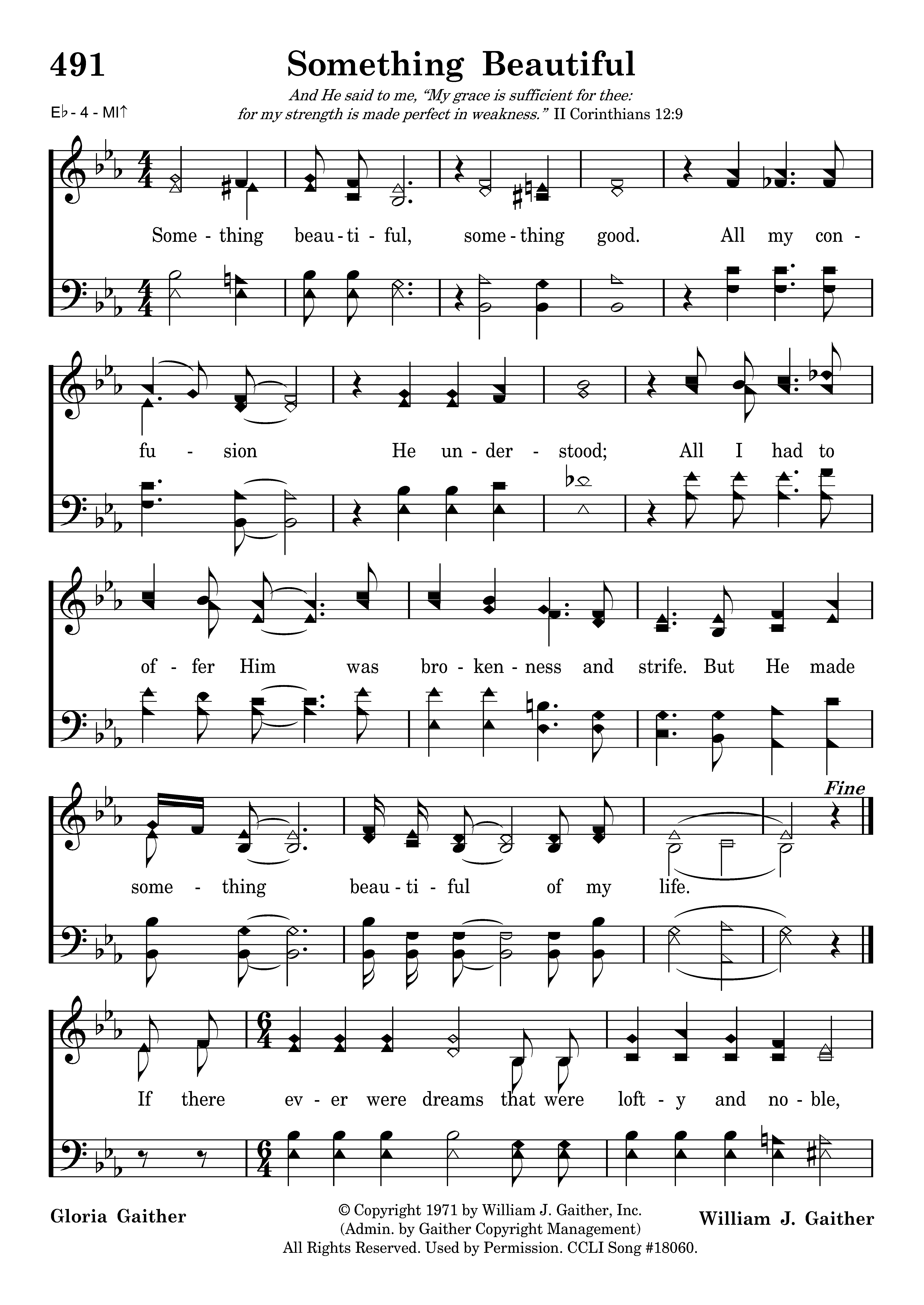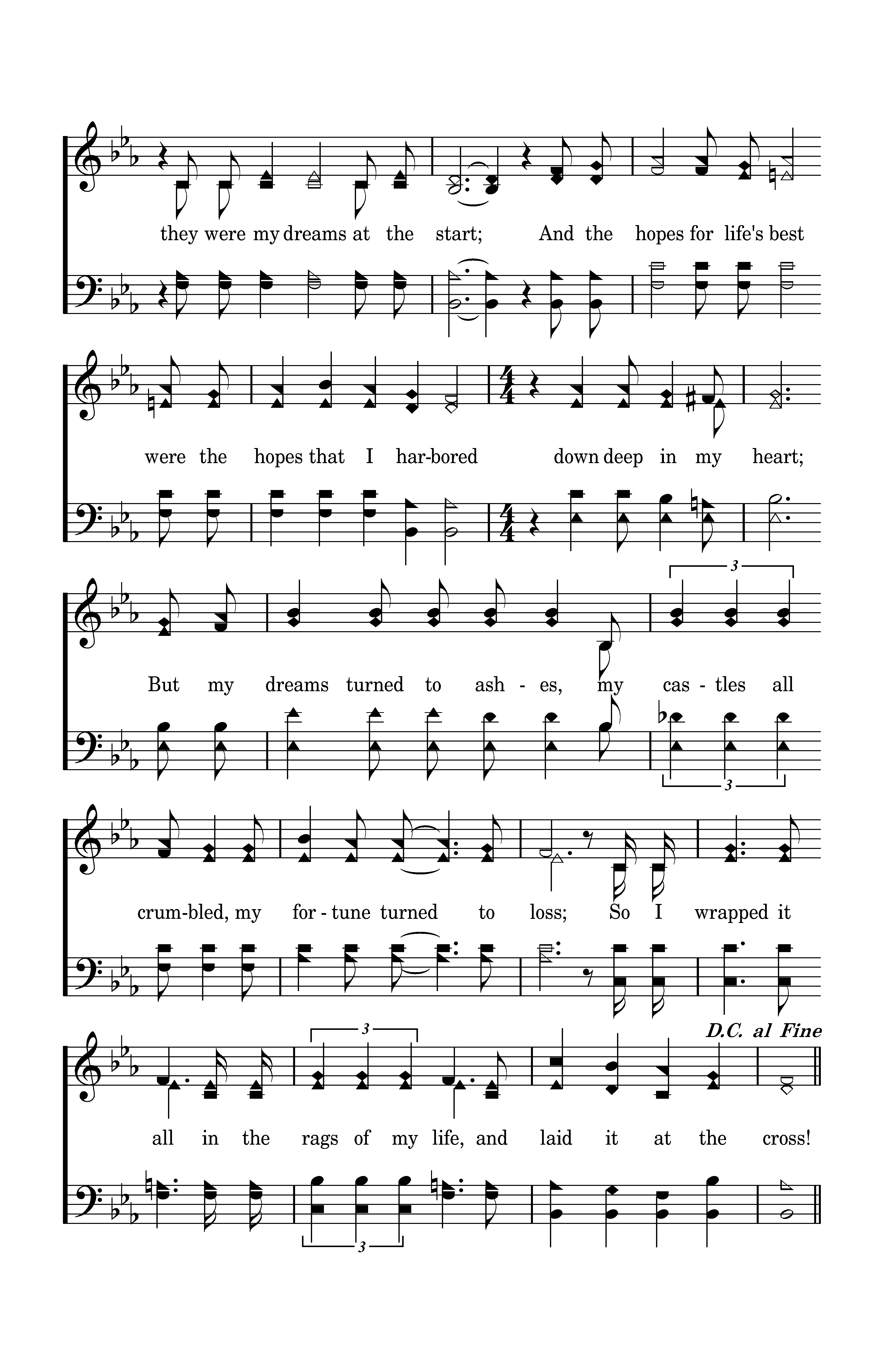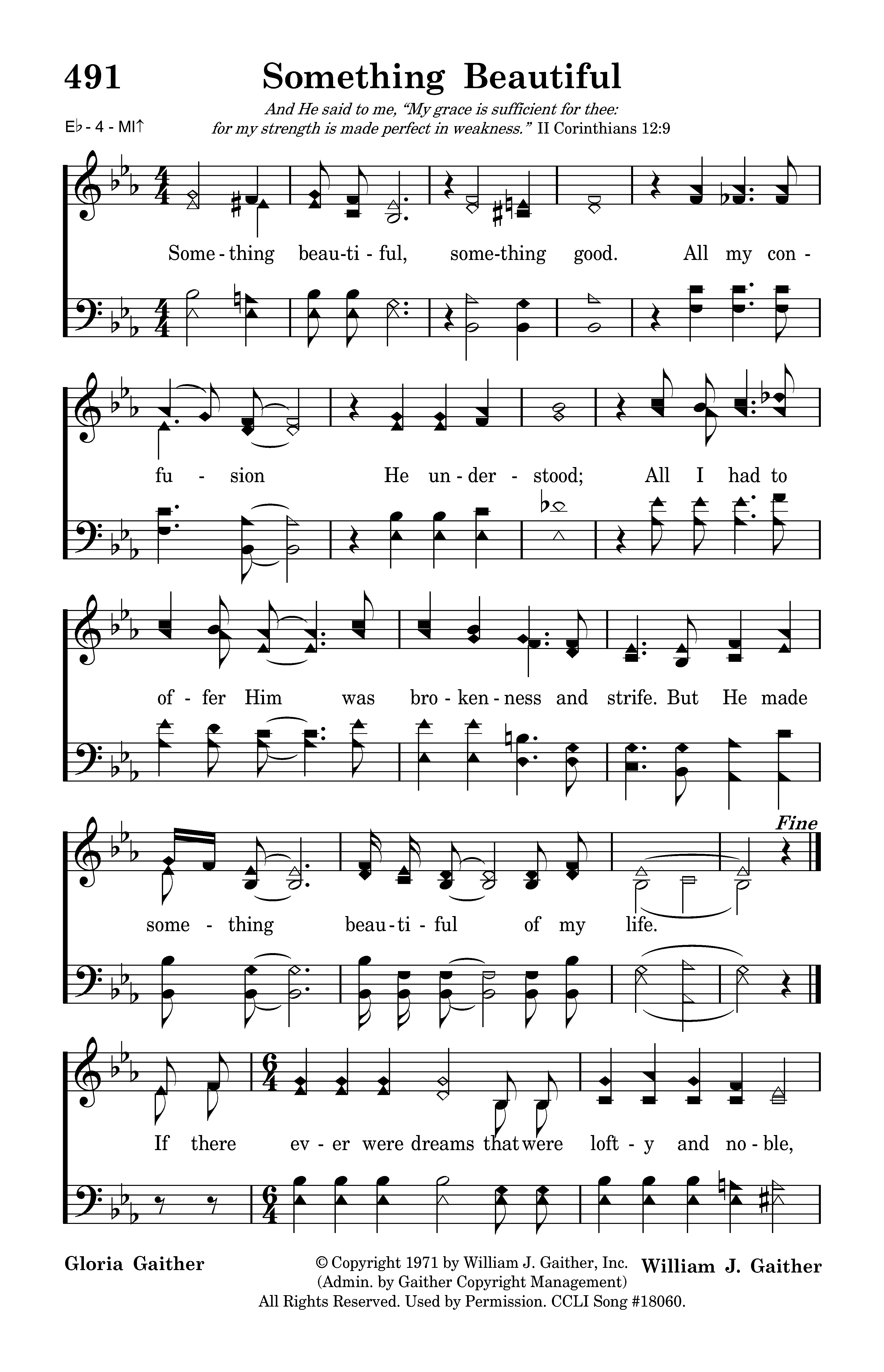 Something beautiful, something good. All my confusion He understood; All I had to offer Him was brokenness and strife. But he made something beautiful of my life. If there ever were dreams that were lofty and noble, they were my dreams at the start; And the hopes for life's best were the hopes that I harbored down deep in my heart; But my dreams turned to ashes, my castles all crumbled, my fortune turned to loss; So I wrapped it all in the rages of my life, and laid it at the cross!
