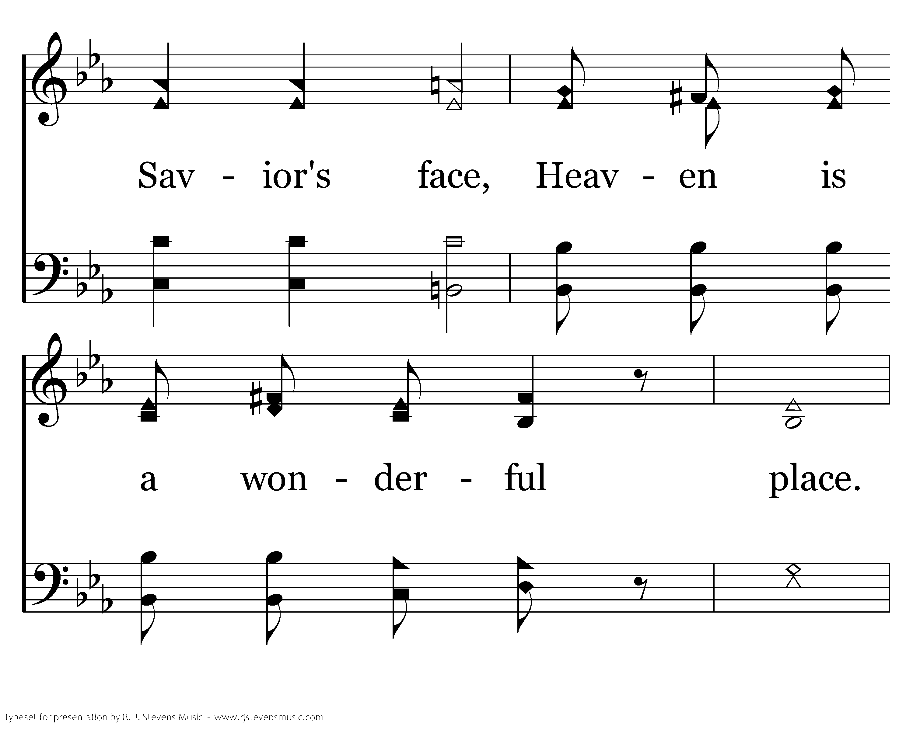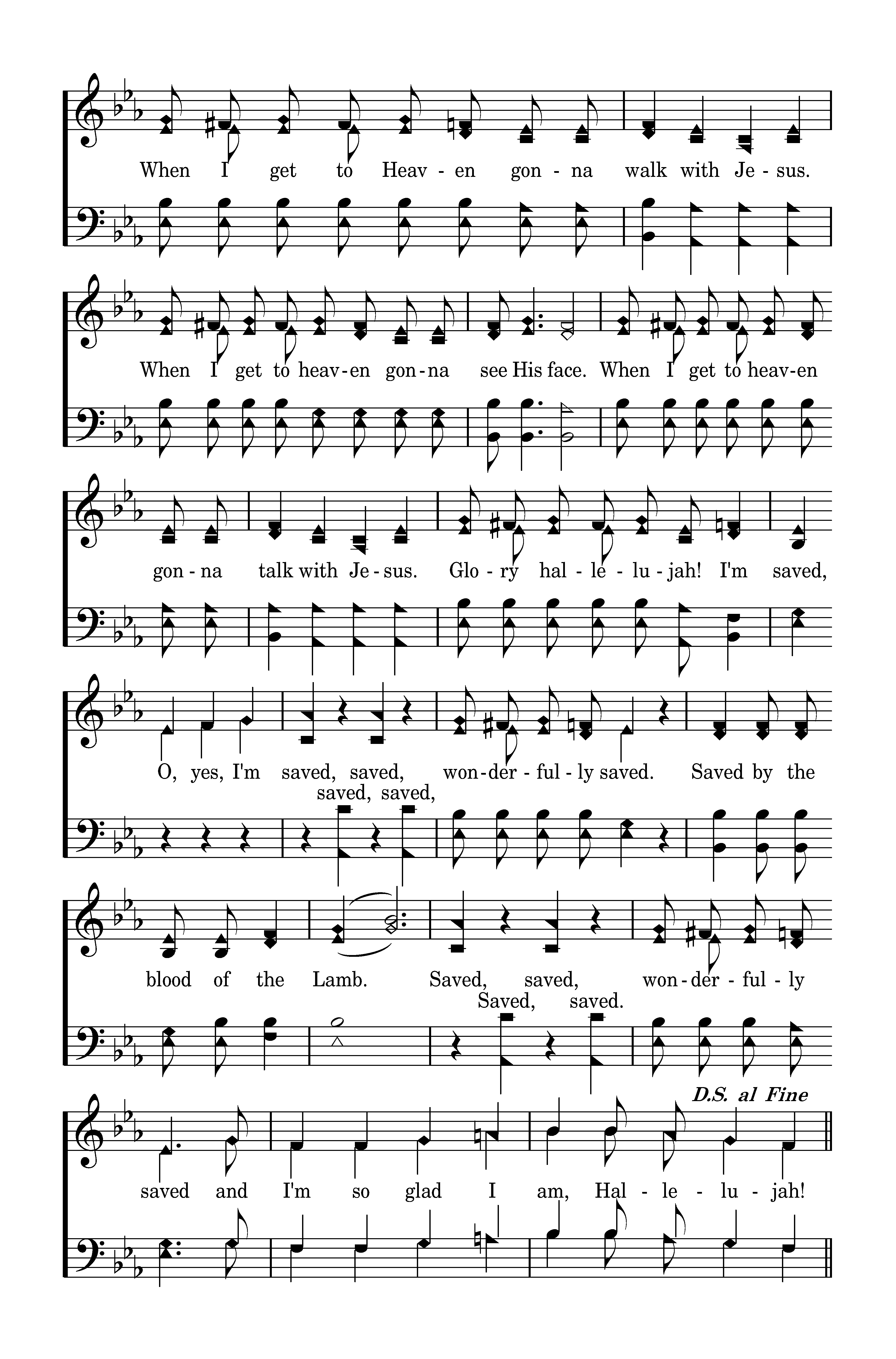 Heaven is a wonderful place filled with glory and grace; I wanna see my Savior's face, Heaven is a wonderful place, wanna go there. When I get to Heaven gonna walk with Jesus. When I get to heaven gonna see His face. When I get to heaven gonna talk with Jesus. Glory hallelujah! I'm saved, O, yes, I'm saved, saved, wonderfully saved. Ssaved by the blood of the Lamb. Saved, Saved, wonderfully saved and I'm so glad I am, Hallelujah!