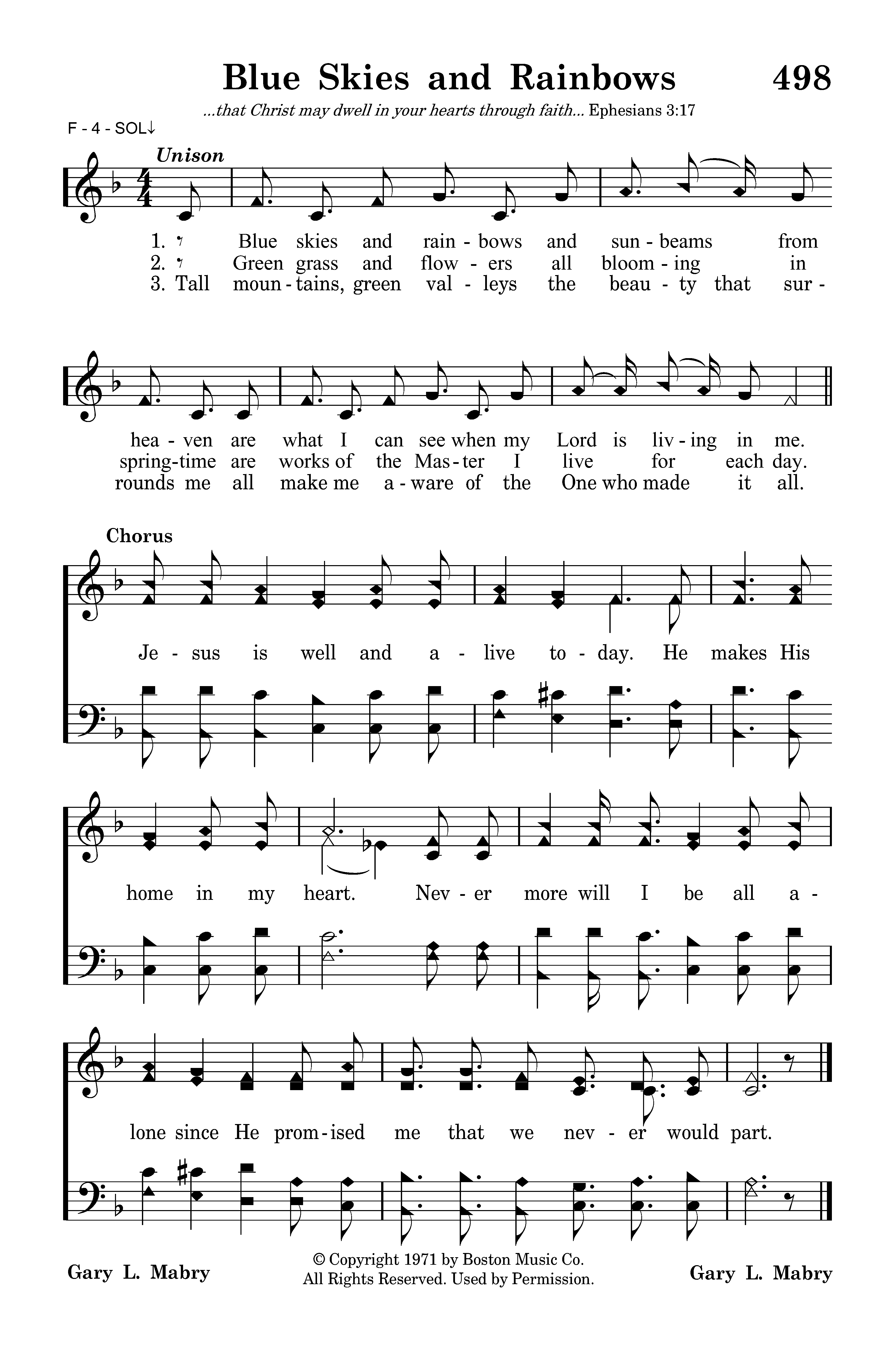 Blue skies and rainbows and sunbeams from heaven are what I can see when my Lord is living in me.