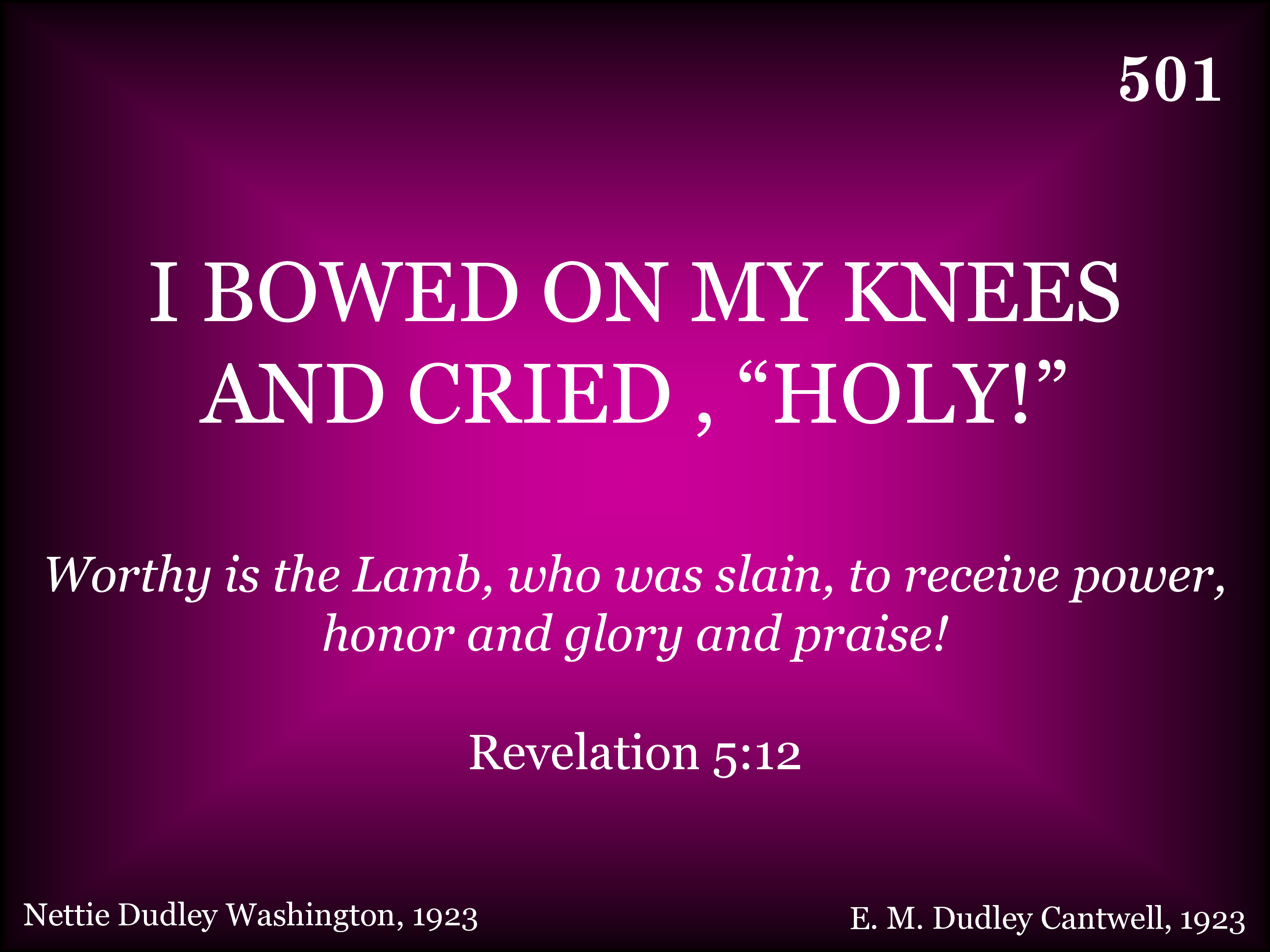| Title | I BOWED ON MY KNEES AND CRIED, HOLY |