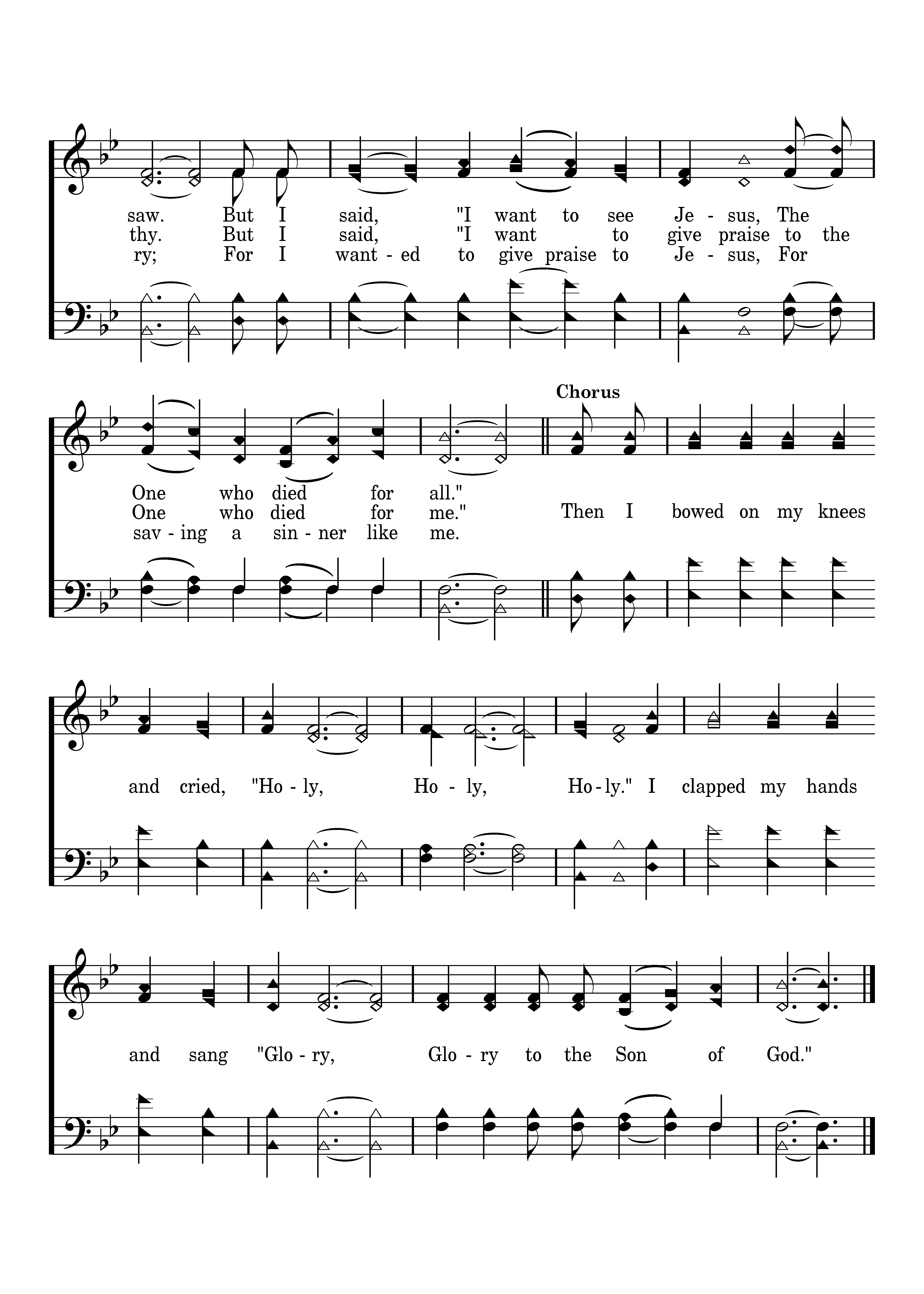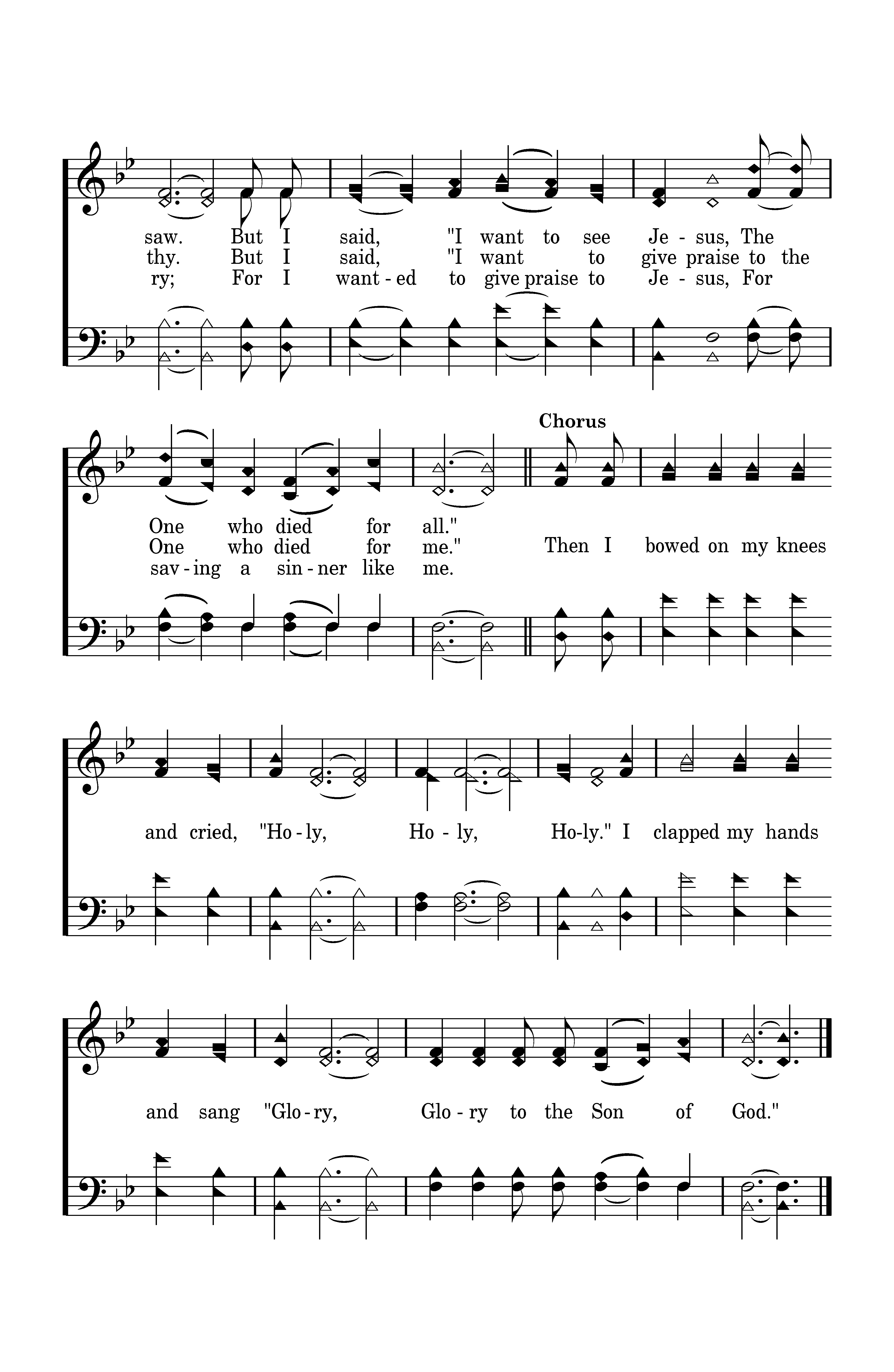 Then I bowed on my knees and cried, "Holy, Holy, Holy." I clapped my hands and sang "Glory, Glory to the Son of God."