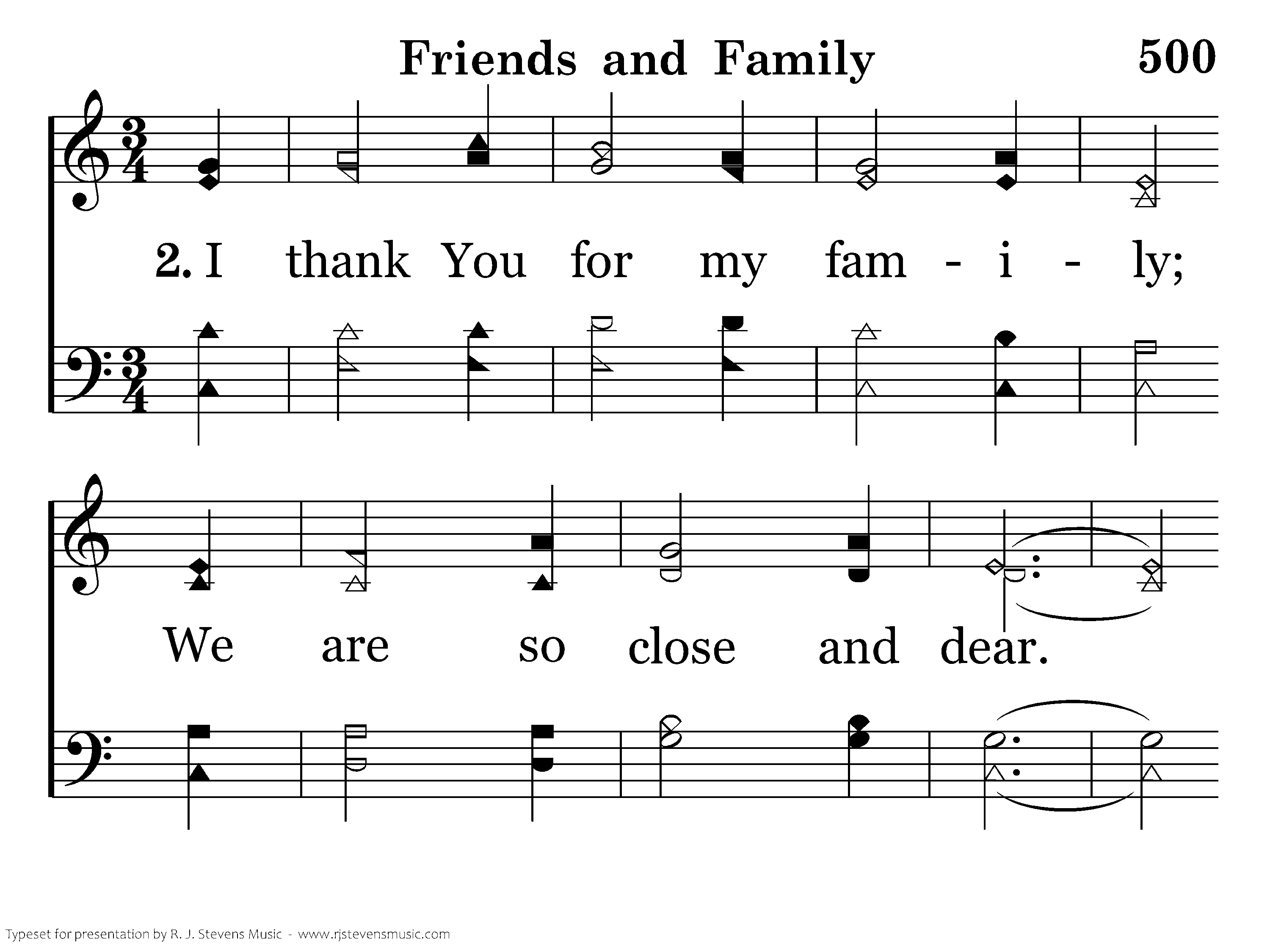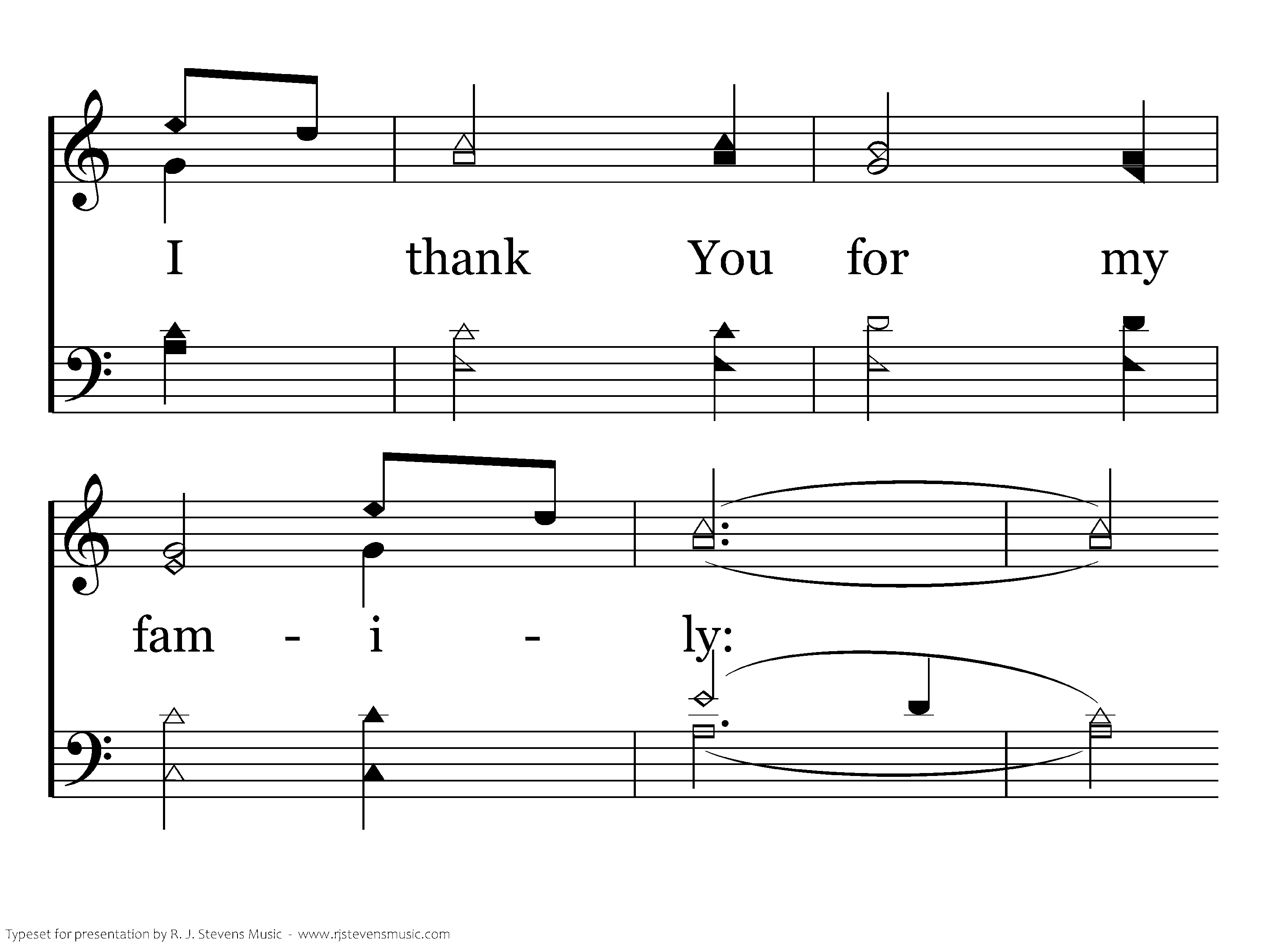 I thank You for my family; We are so close and dear. When one hurts we all share the tears Because we are so near. I thank You for my family; They give me strength and love. I thank You for my family: Your gift from up above.