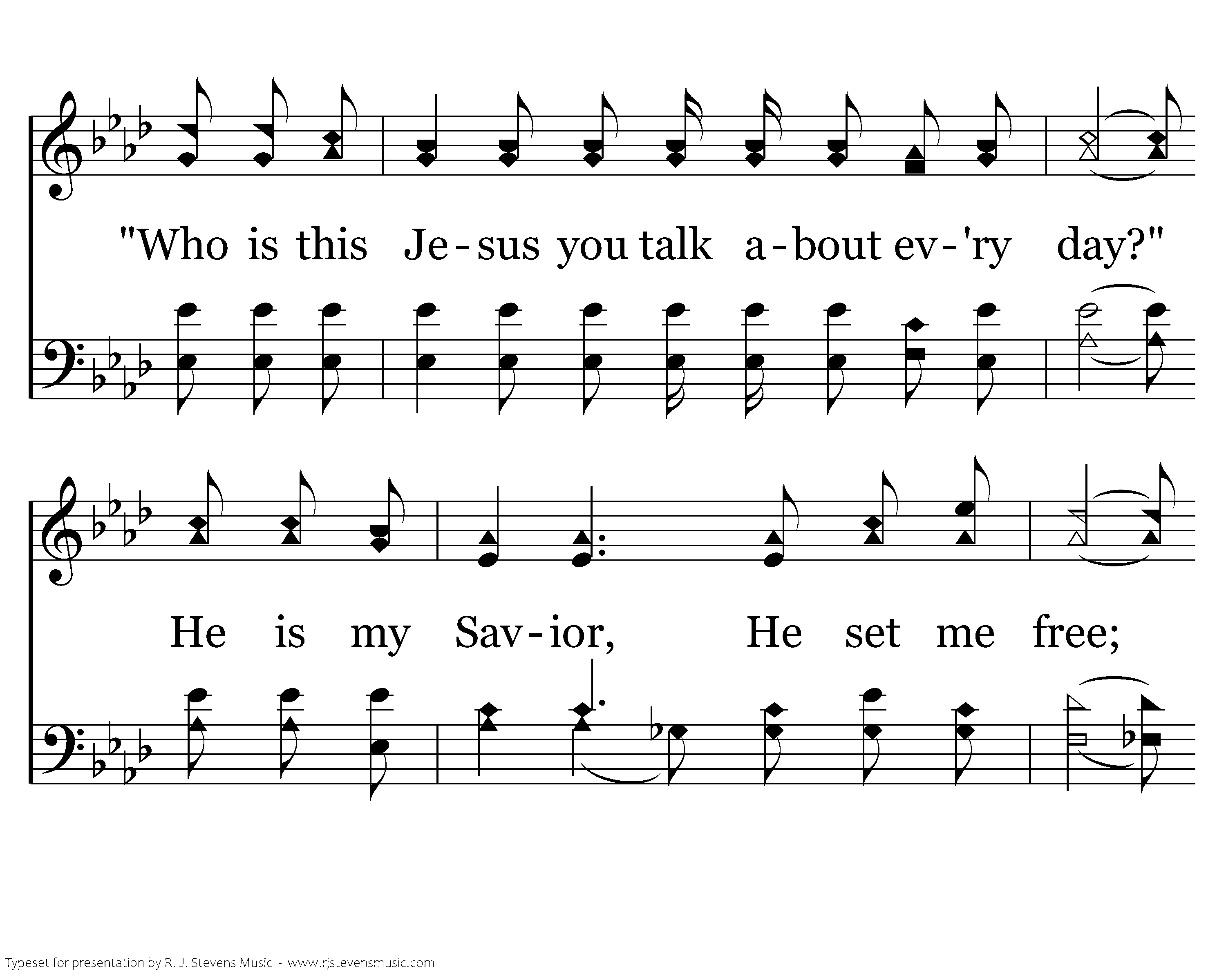 He is my ev'rything, He is my all. He is my ev'rything, both great and small; He gave His life for me, made ev'rything new. He is my ev'rything, now how about you? Some folks may ask me, some folks may say: "Who is this Jesus you talk about ev'ry day?" He is my Savior, He set me free; Now listen while I tell you what He means to me!