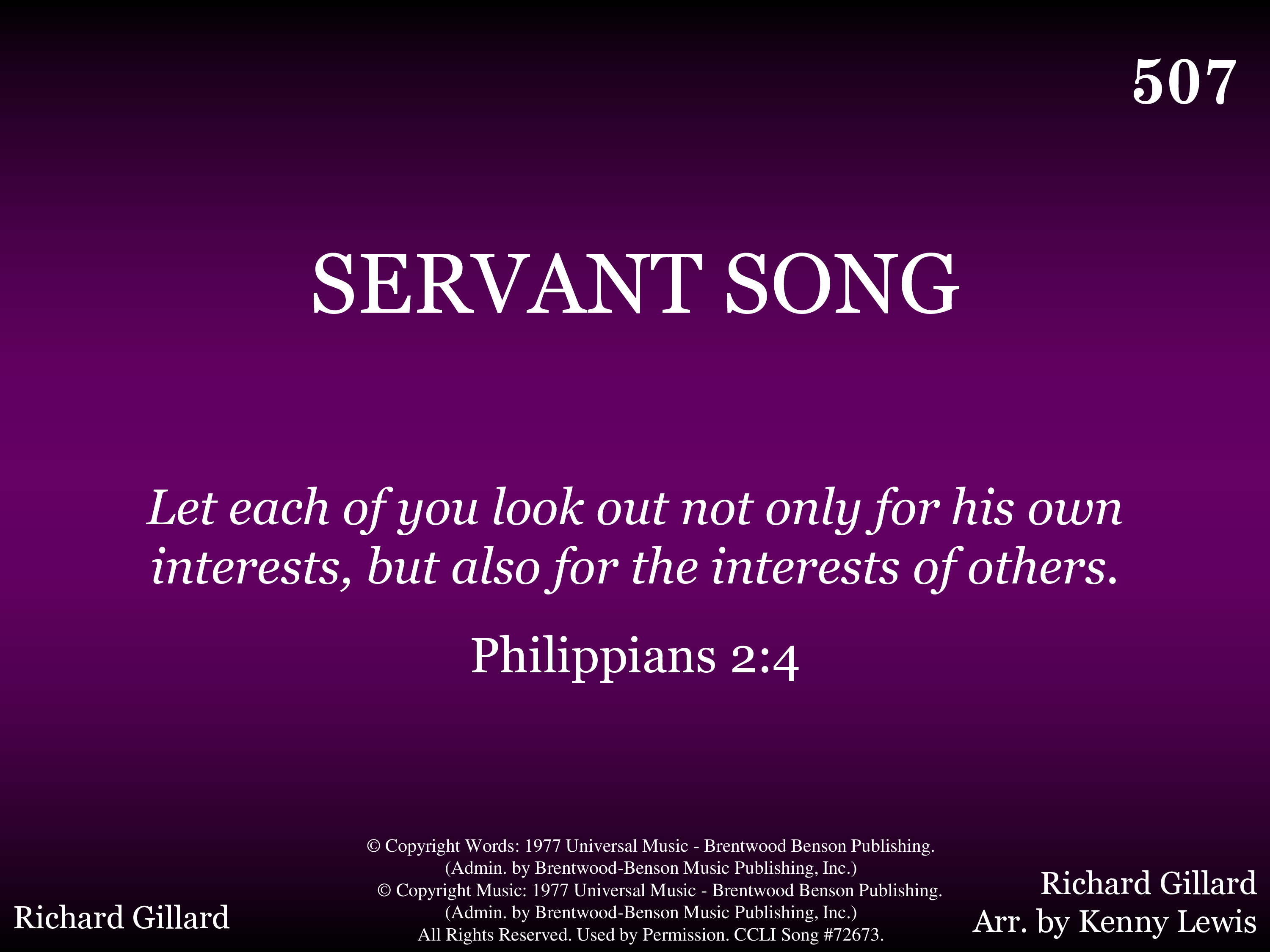 - © Copyright 1977 by Universal Music - Brentwood-Benson Publishing. (Admin. by Brentwood-Benson Music Publishing Co., Inc.) All Rights Reserved. Used by Permission.