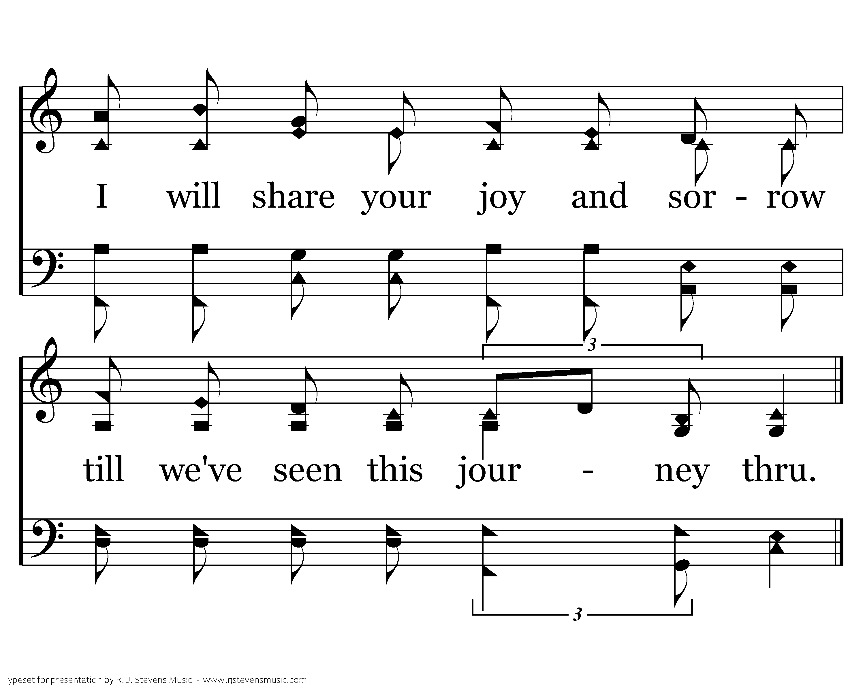 I will weep when you are weeping; when you laugh I'll laugh with you. I will share your joy and sorrow till we've seen this journey thru.