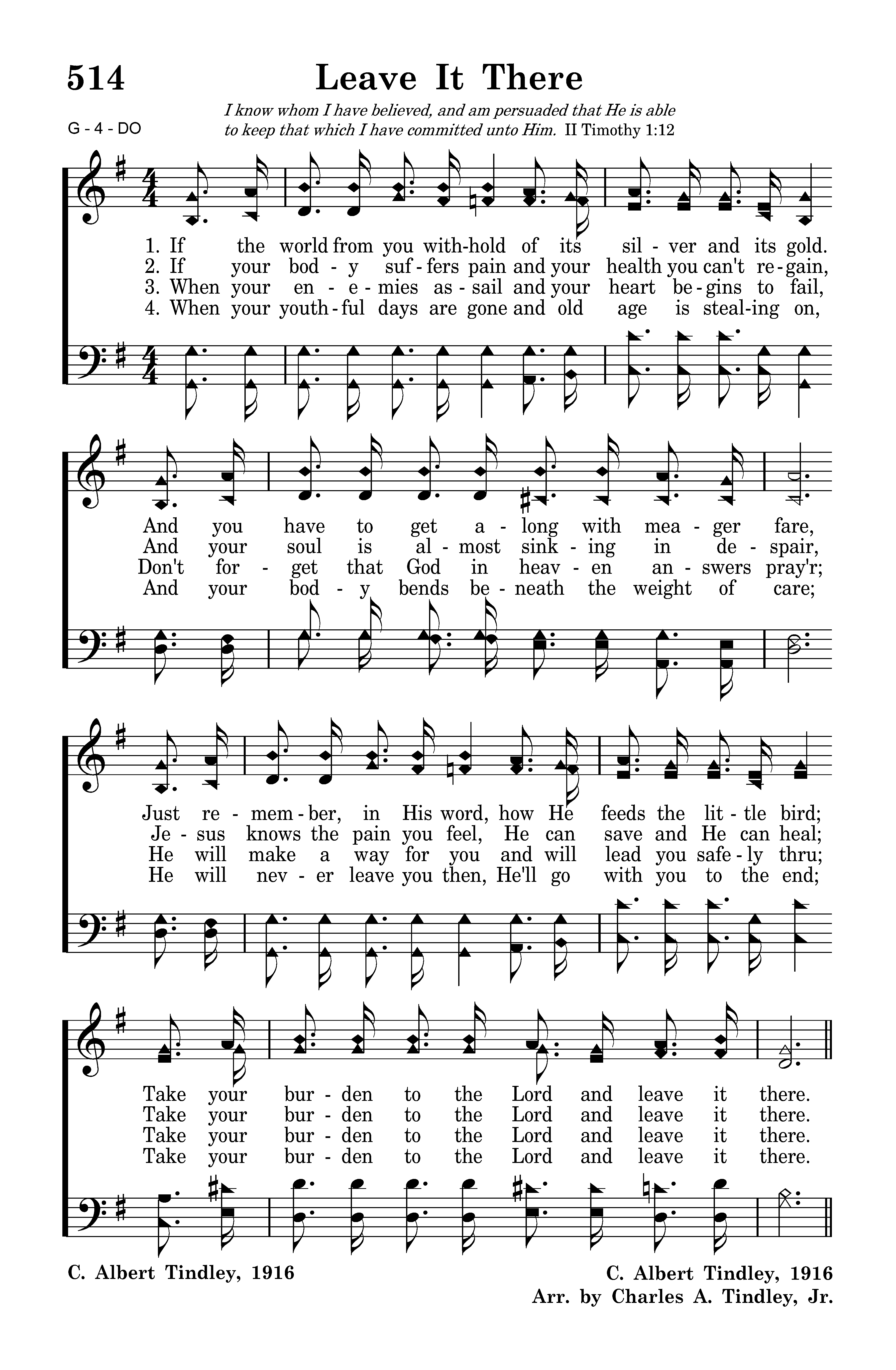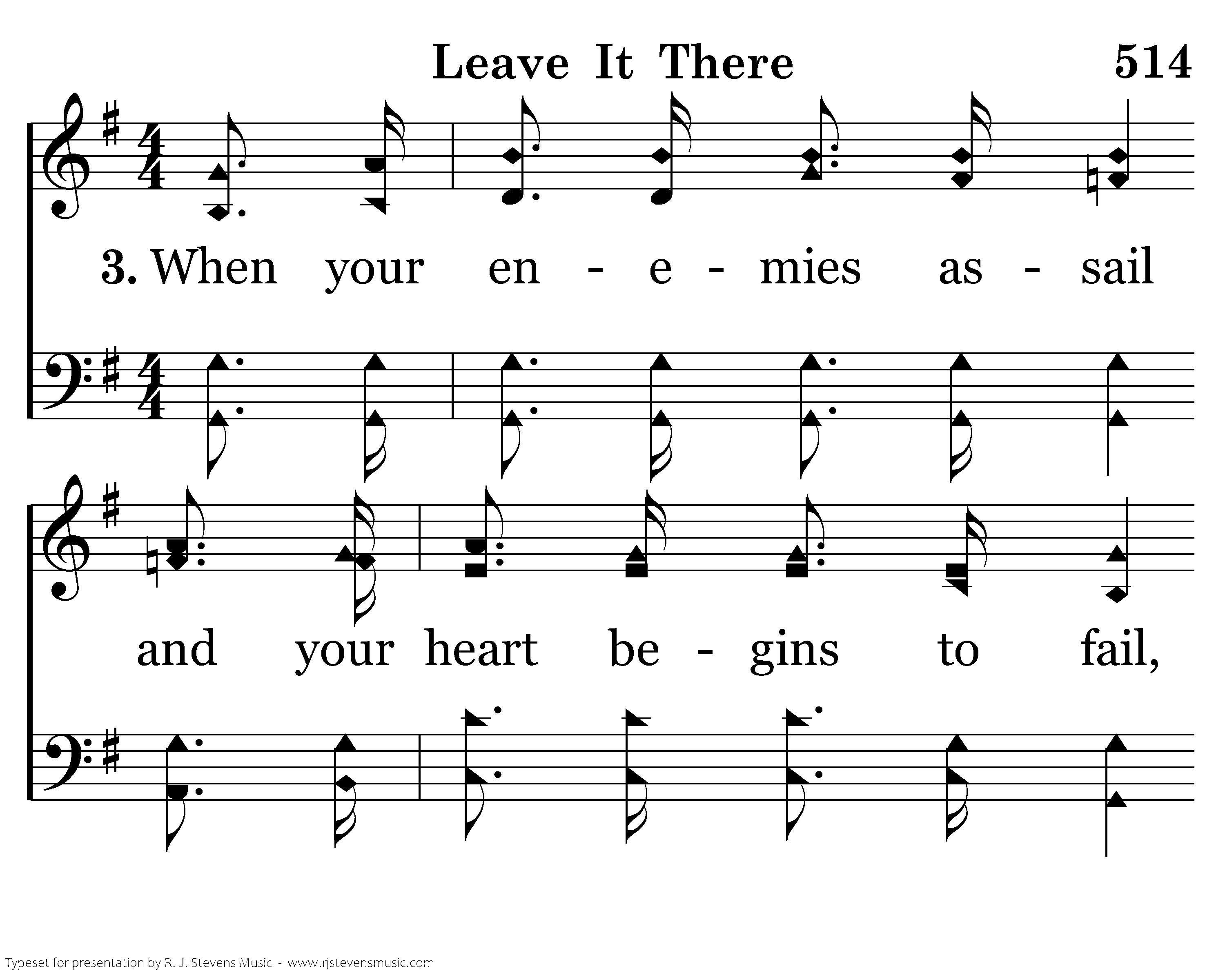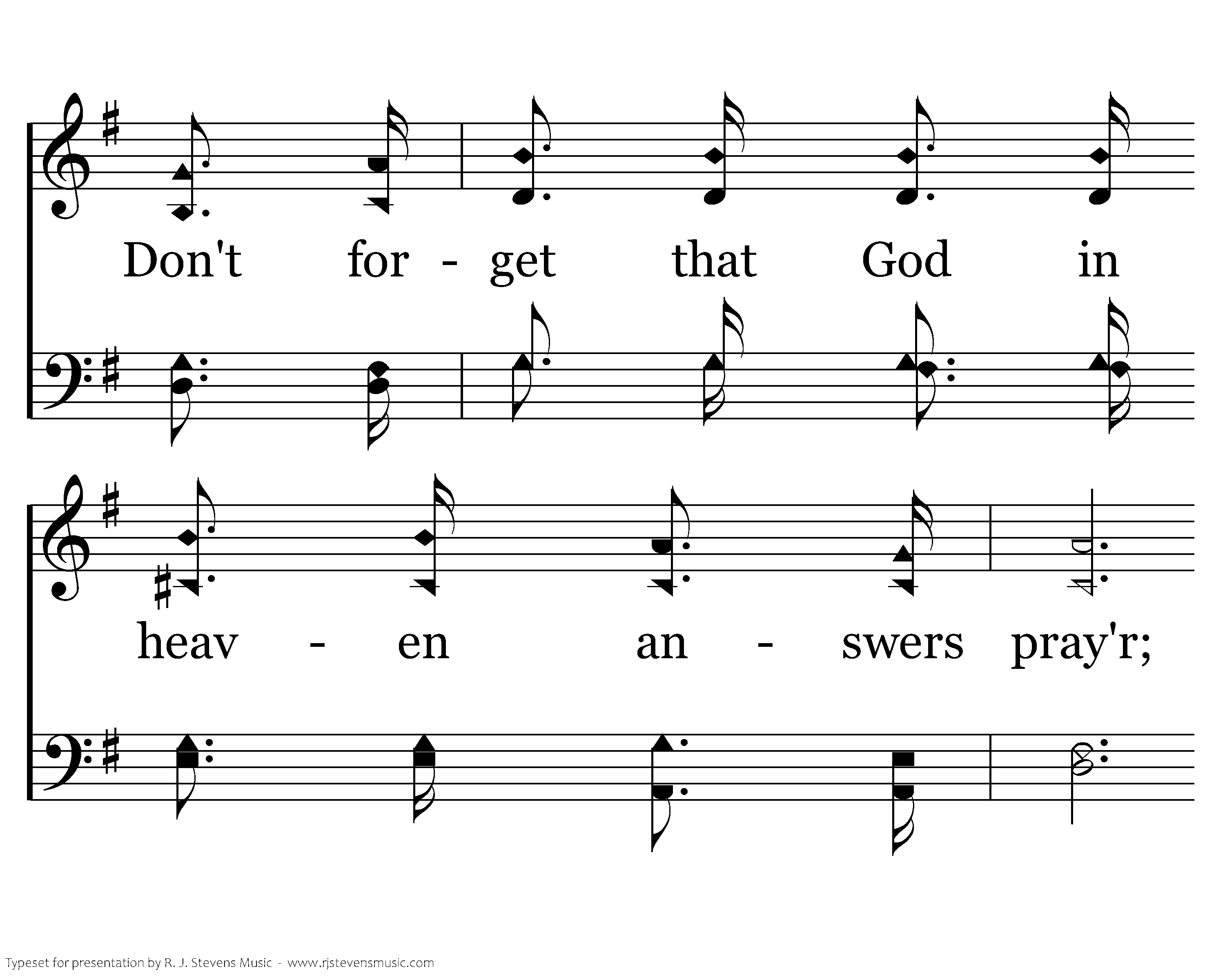 When your enemies assail and your heart begins to fail, Don't forget that God in heaven answers pray'r; He will make a way for you and will lead you safely thru; take your burden to the Lord and leave it there.