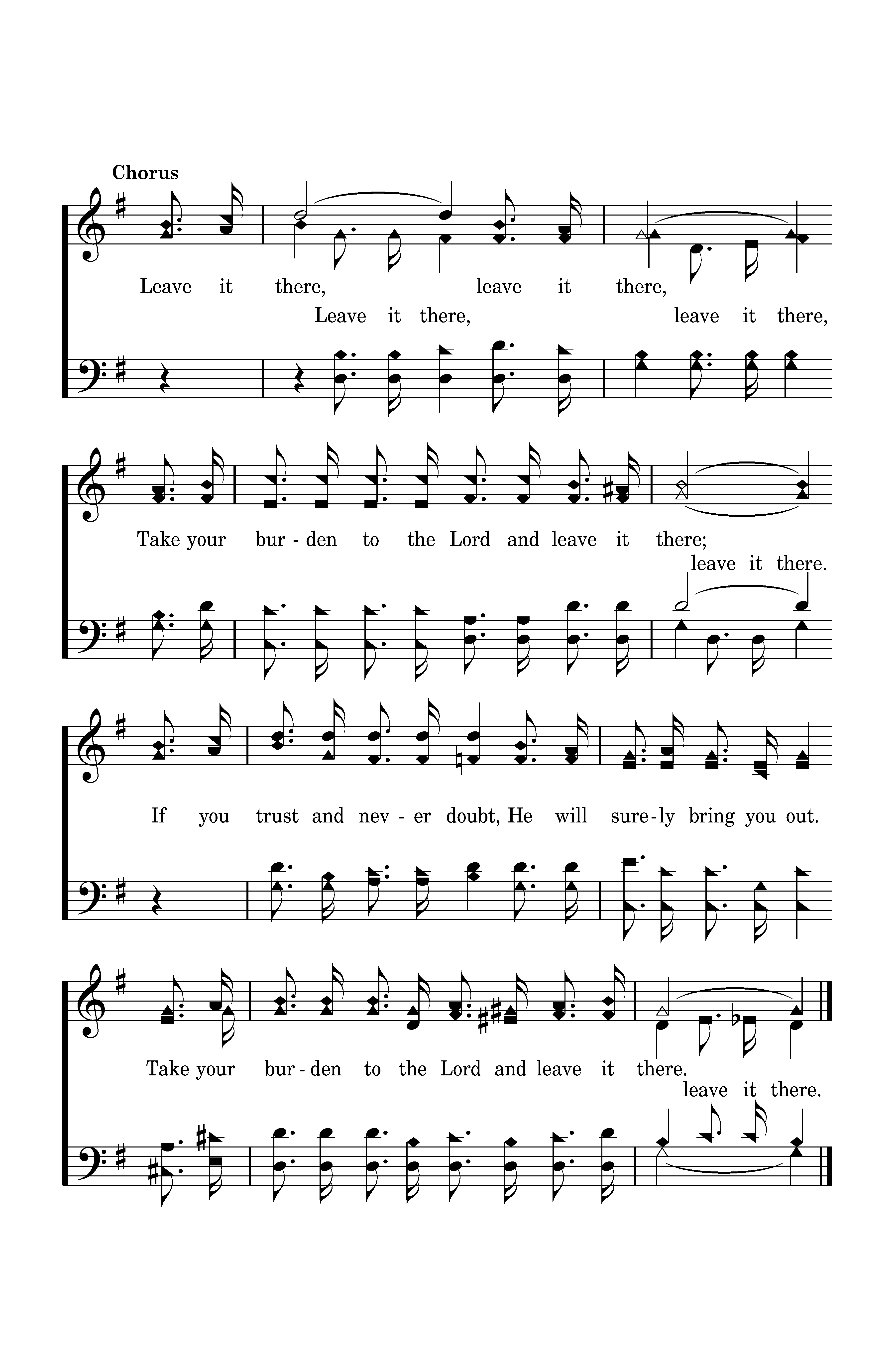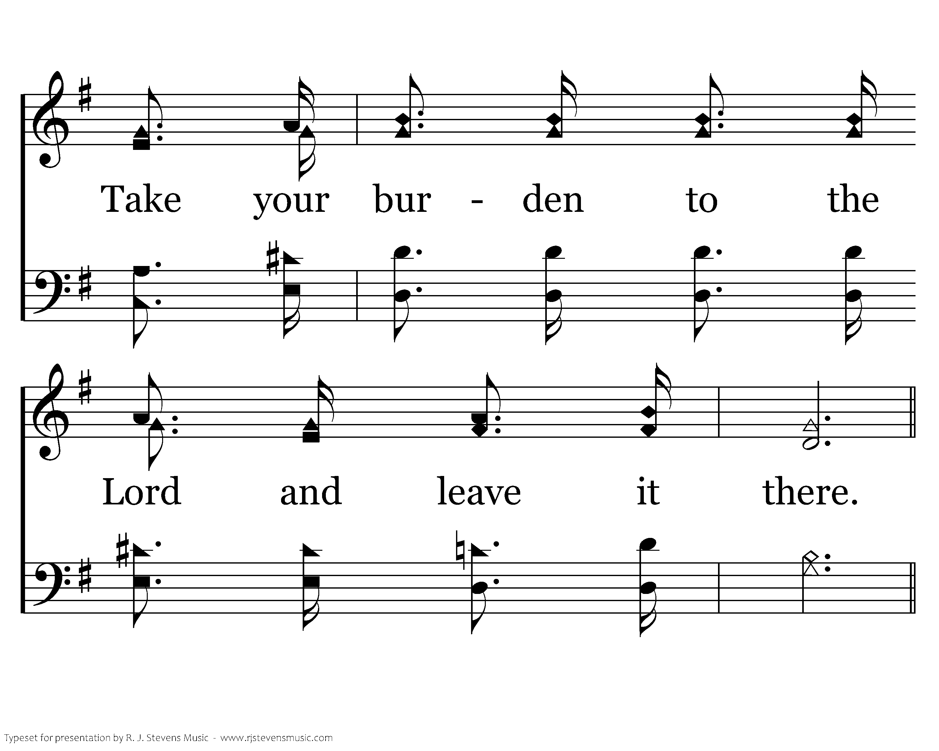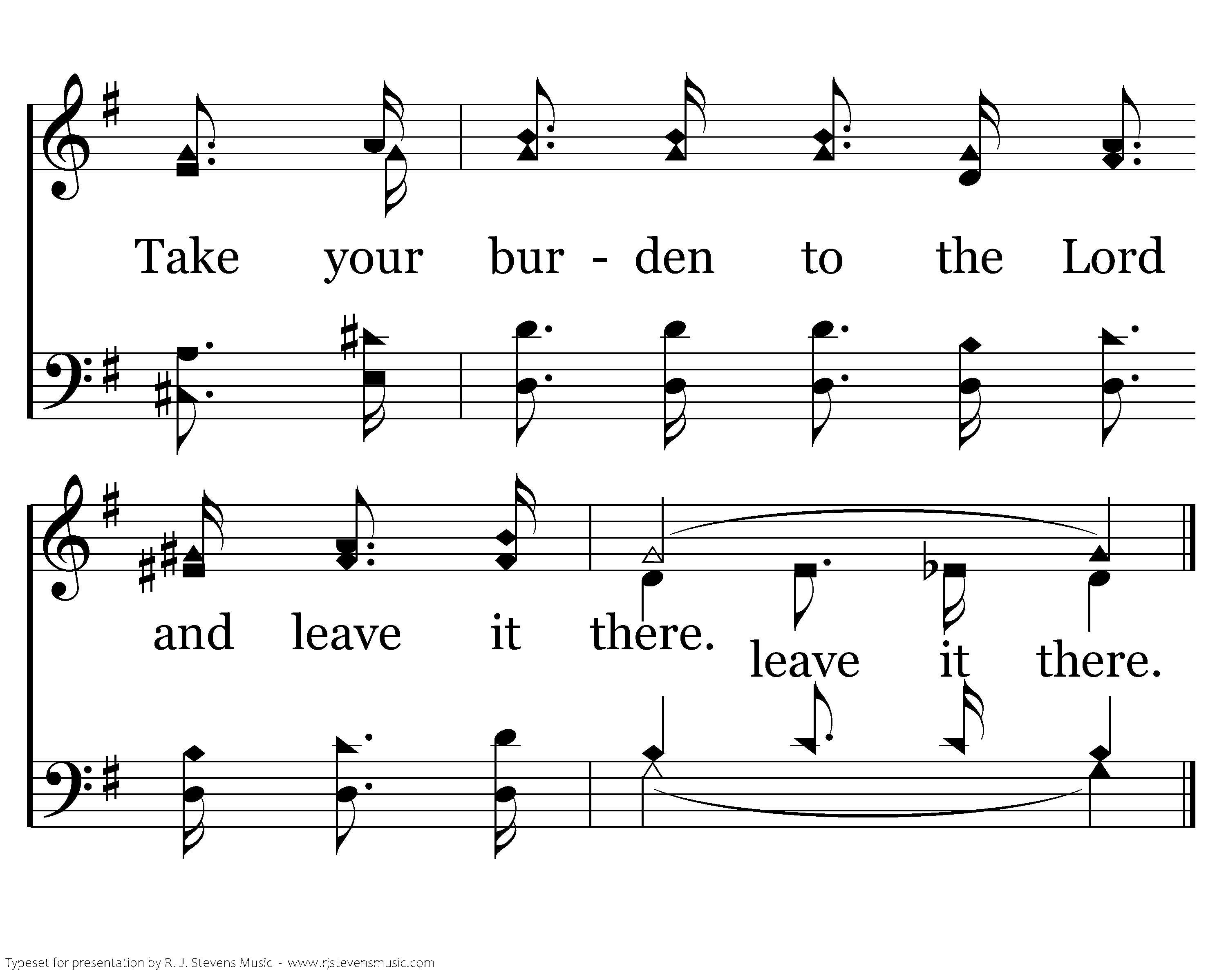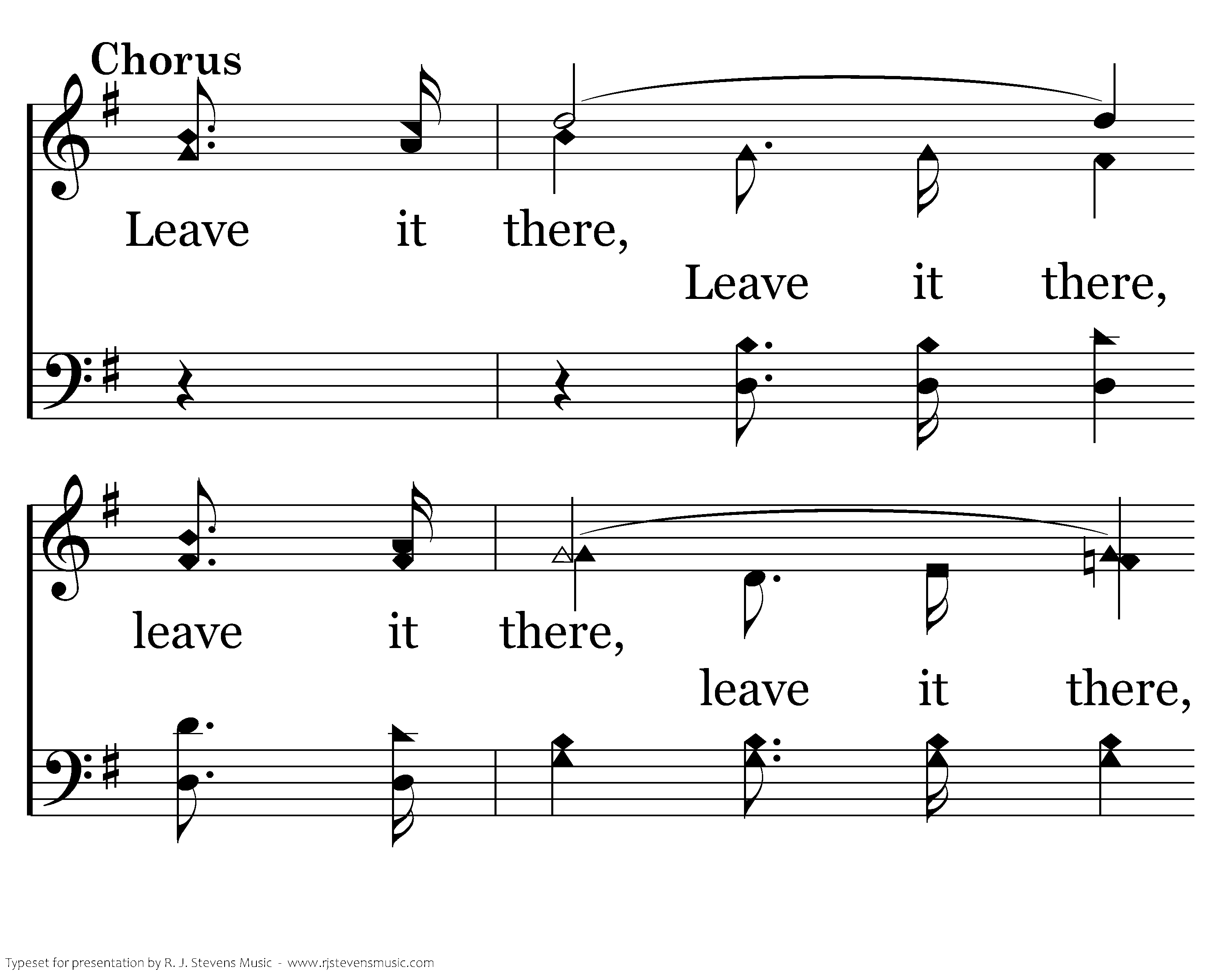 Leave it there, leave it there, Take your burden to the Lord and leave it there; If you trust and never doubt, He will surely bring you out. Take your burden to the Lord and leave it there.