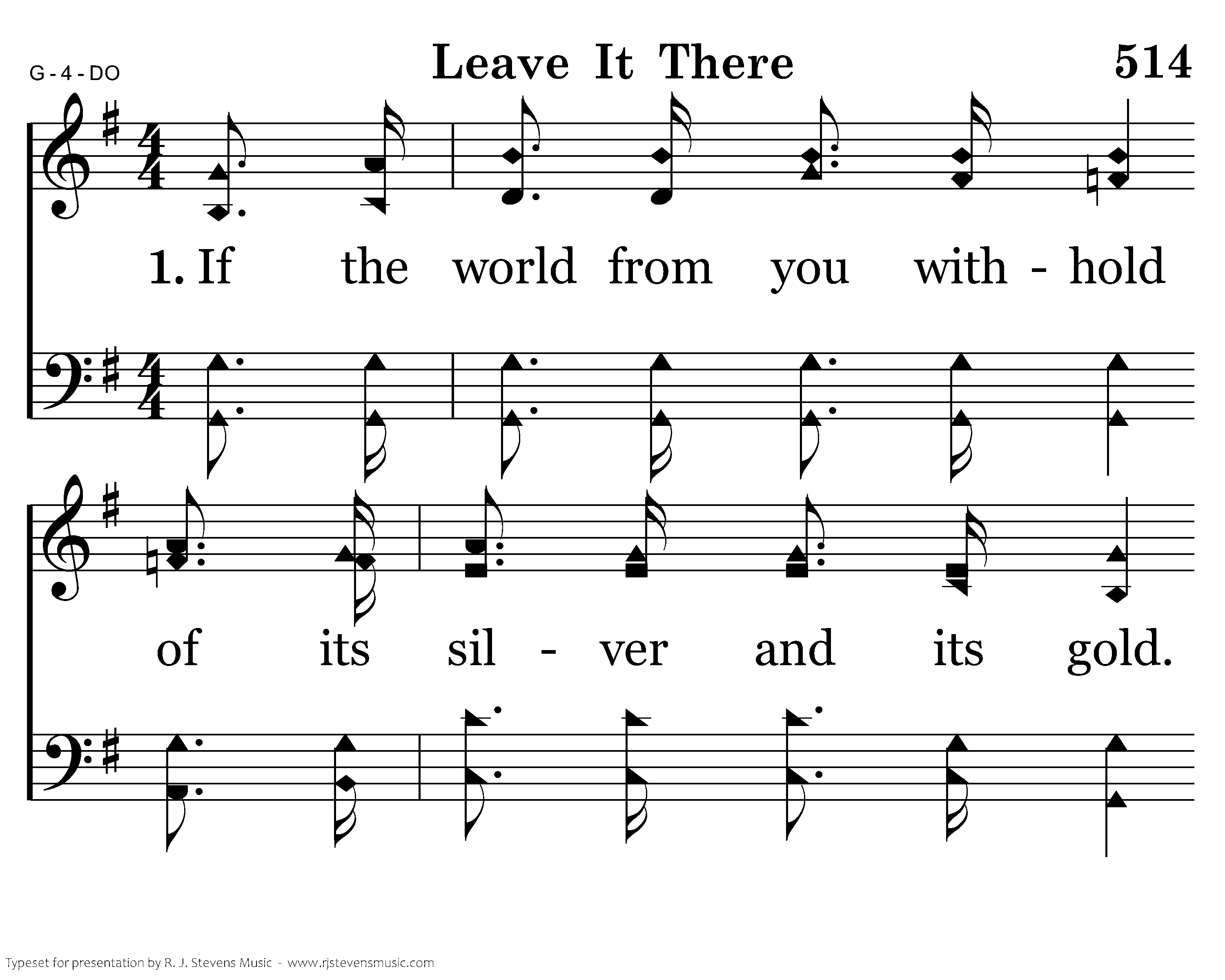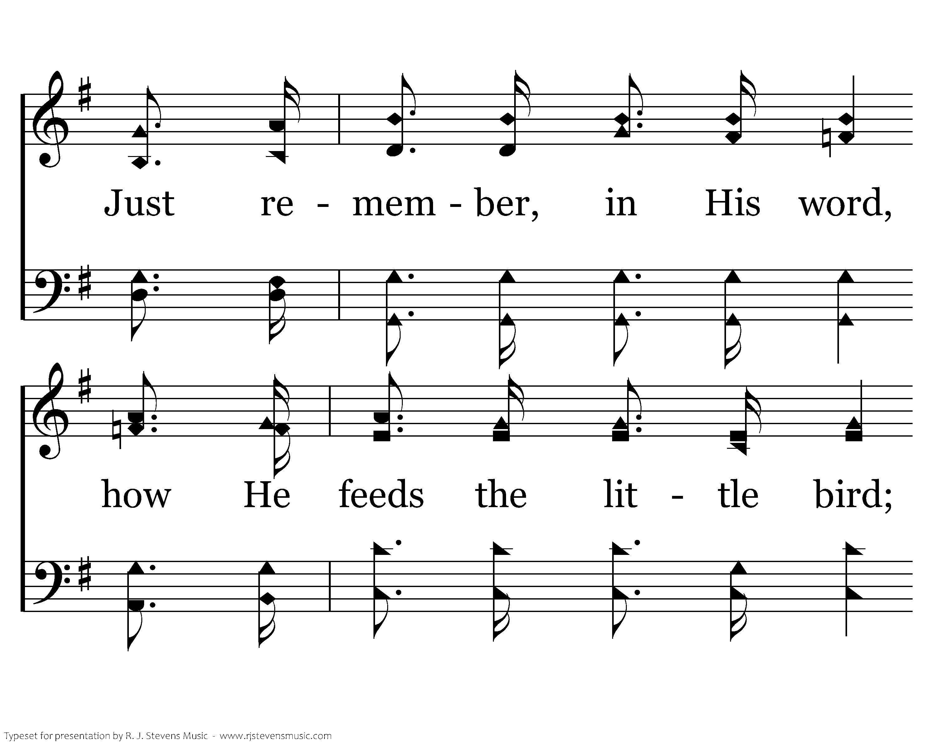 If the world from you withold of its silver and its gold. And you have to get along with meager fare, Just remember, in His word, how He feeds the little bird; Take your burden to the Lord and leave it there.
