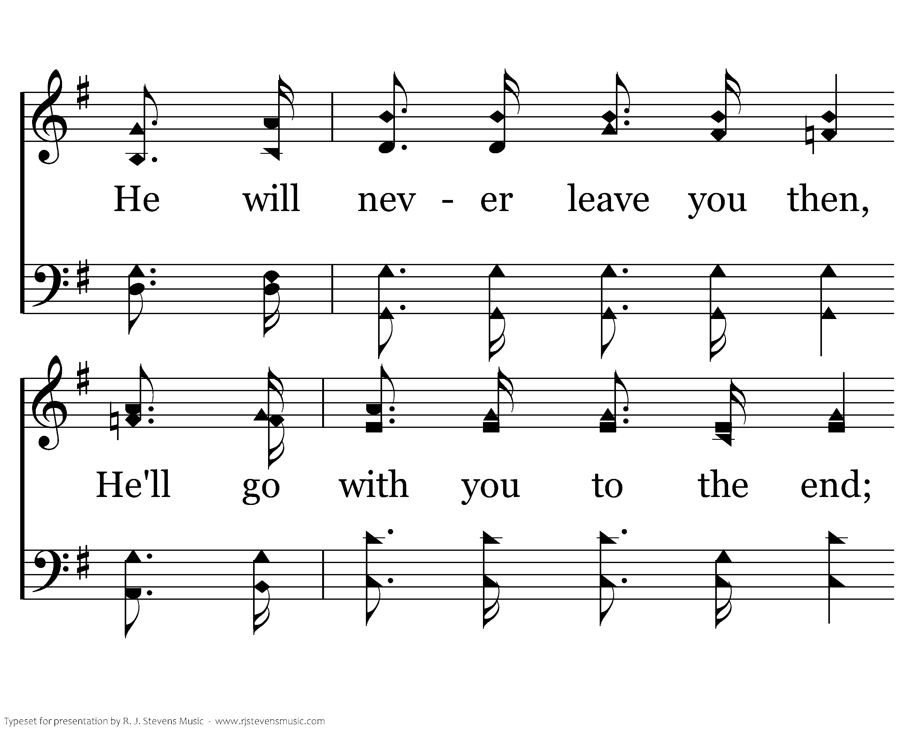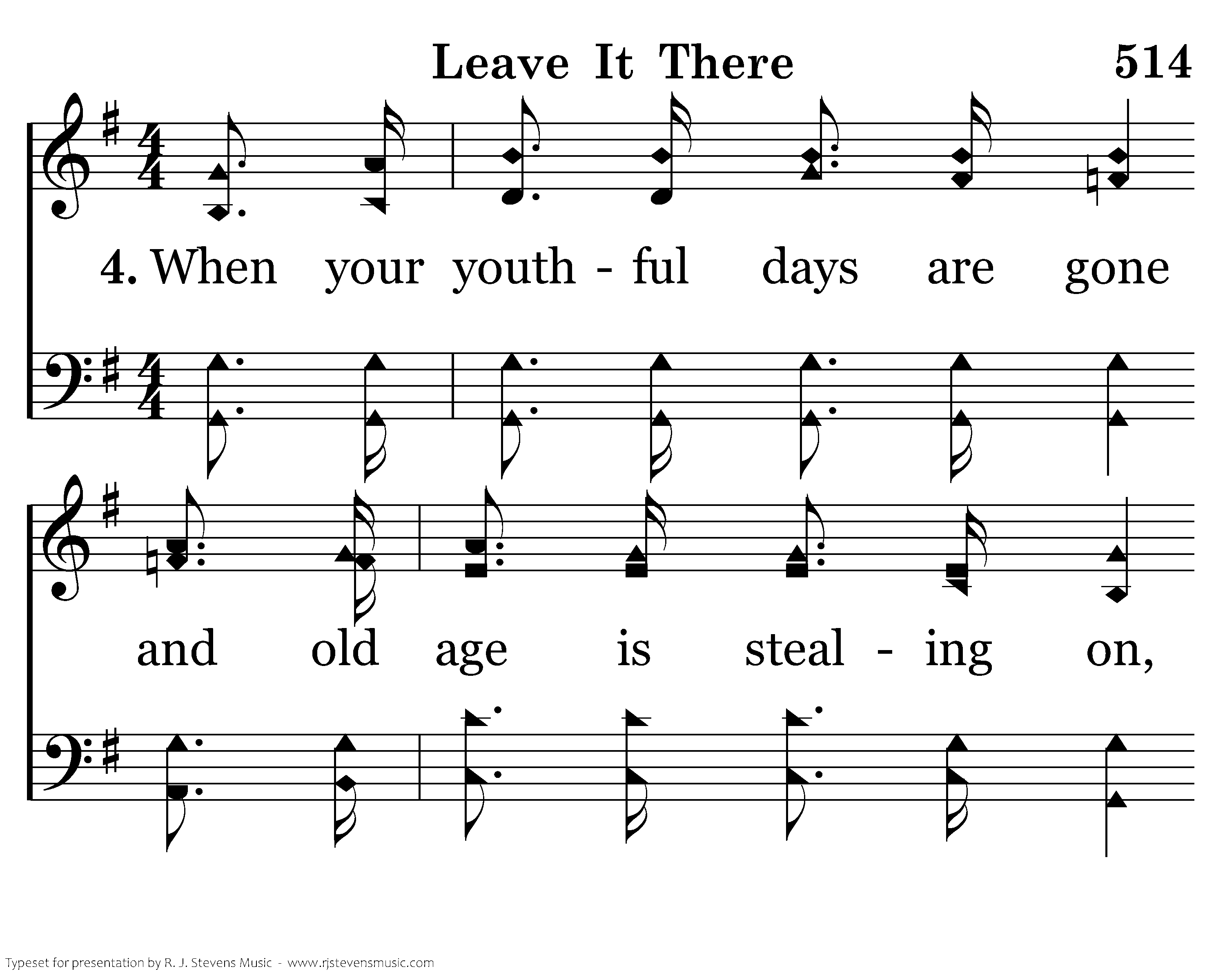 When your youthful days are gone and old age is stealing on, And your body bends beneath the weight of care; He will never leave you then, He'll go with you to the end; Take your burden to the Lord and leave it there.