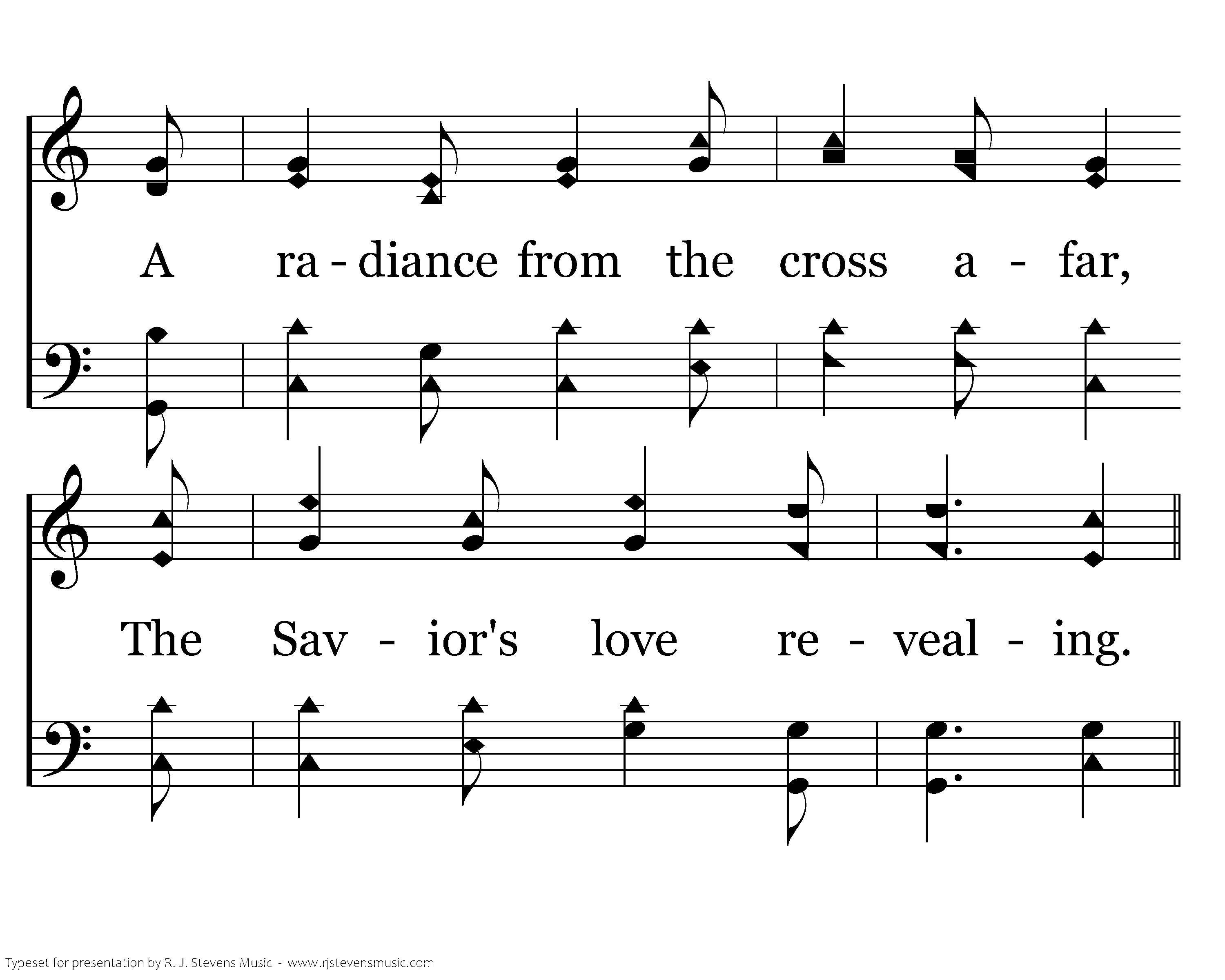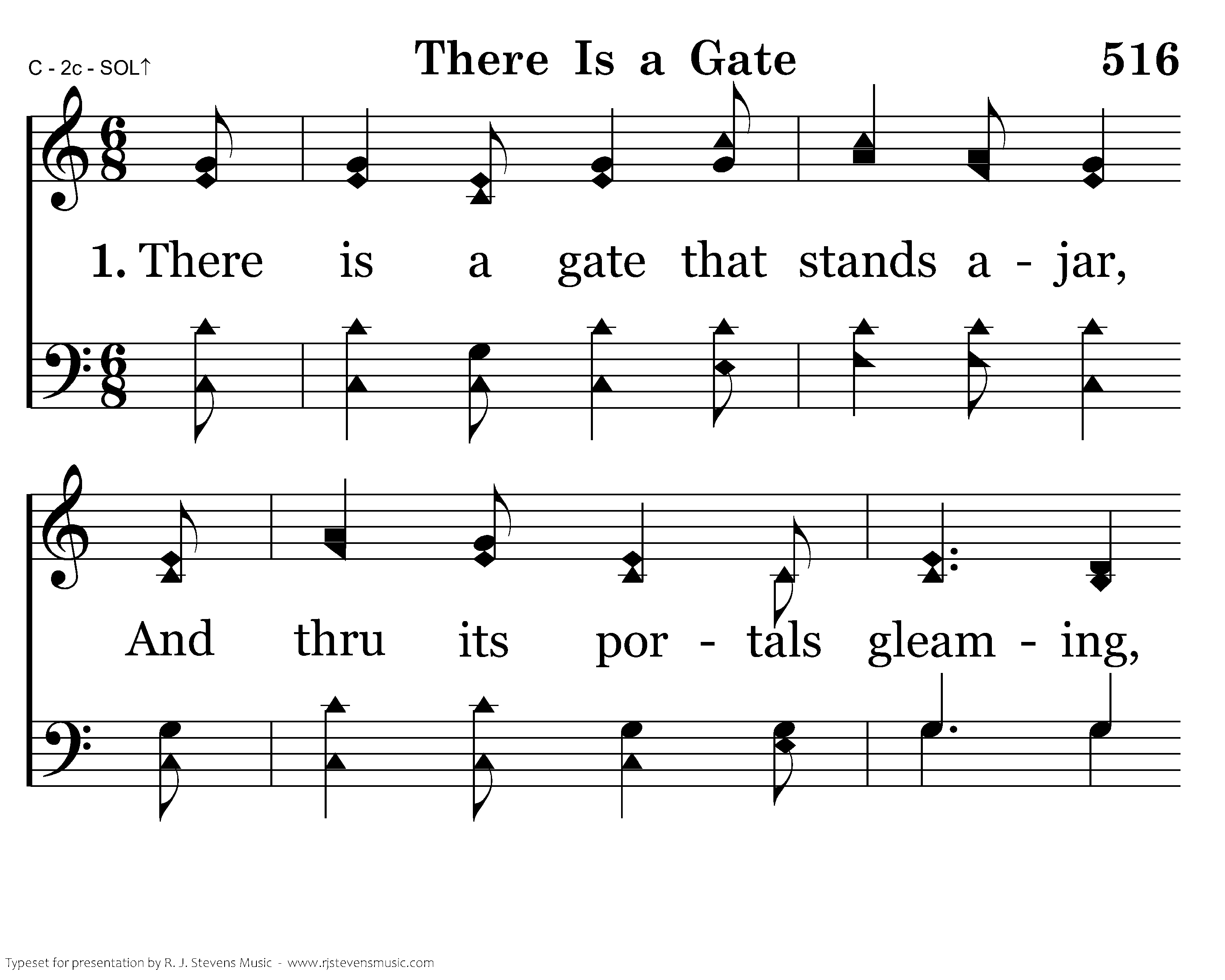 There is a gate that stands ajar, And thru its portals gleaming, A radiance from the cross afar, The Savior's love revealing.
