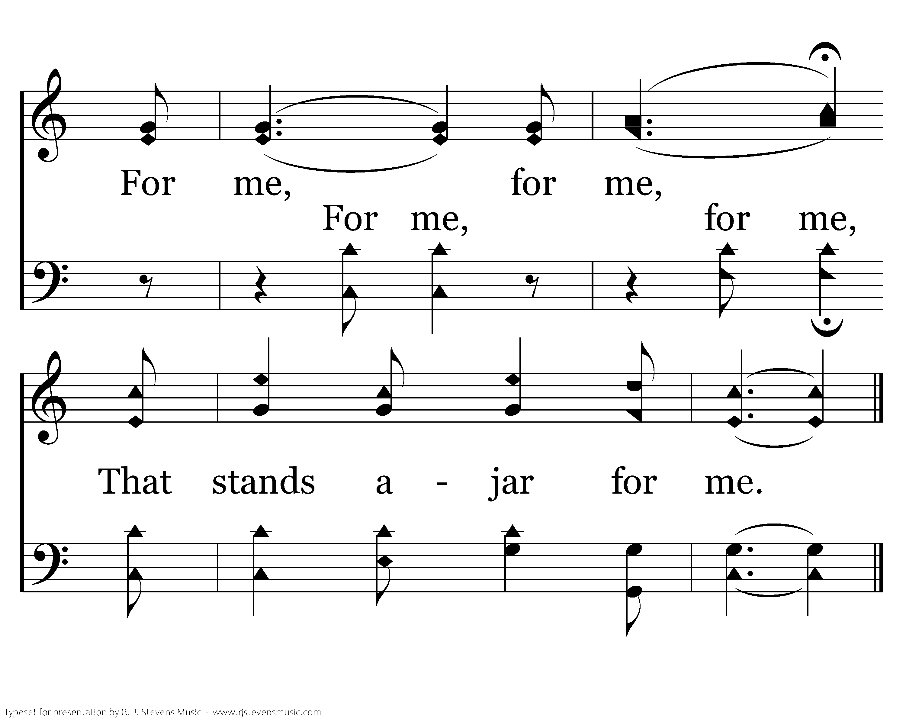 Yes, in the blood of Christ I see The gate that stands ajar for me; For me, for me, That stands ajar for me.