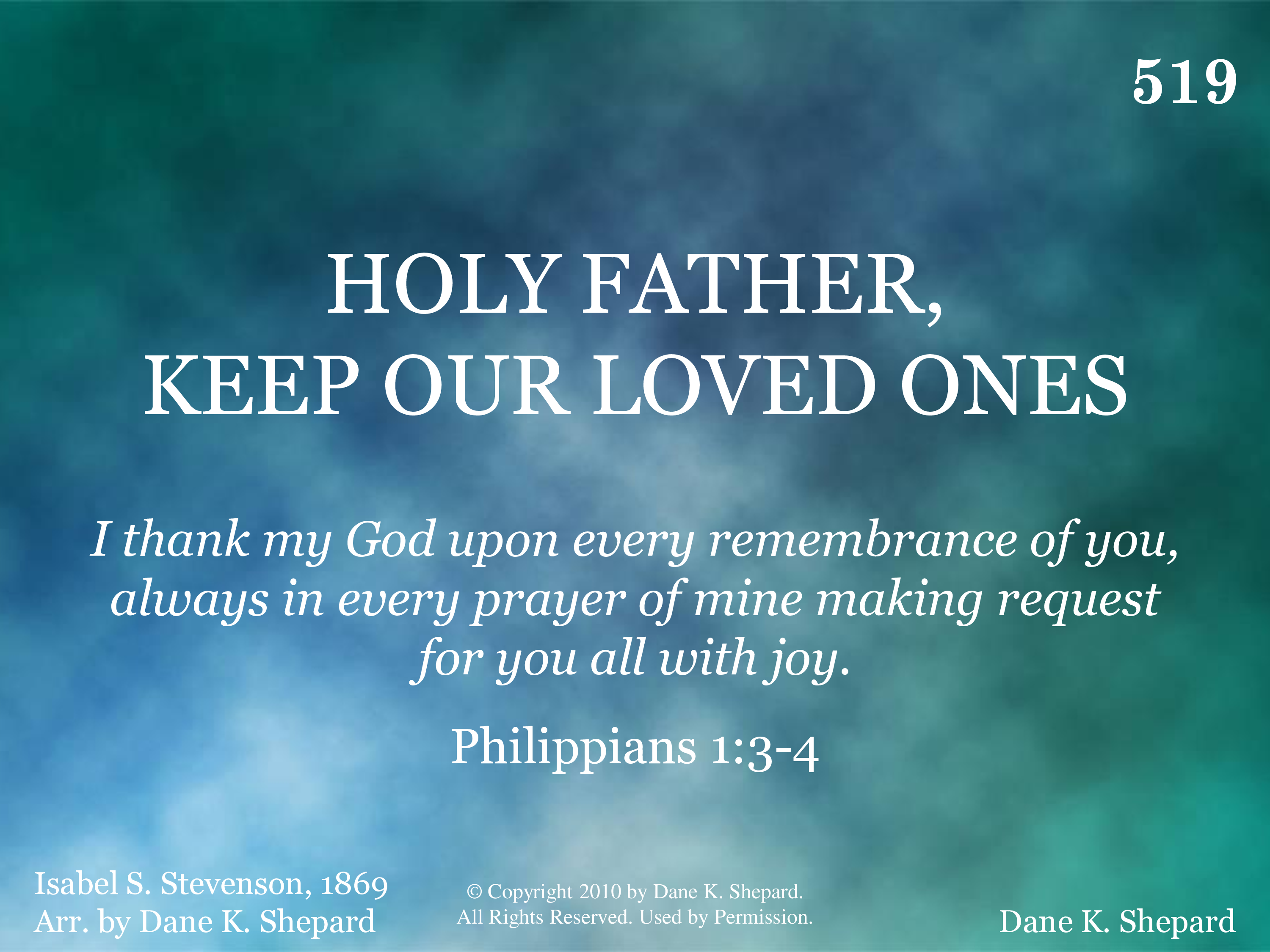 - Music © Copyright 2010 by Dane K. Shepard. All Rights Reserved. Used by Permission.