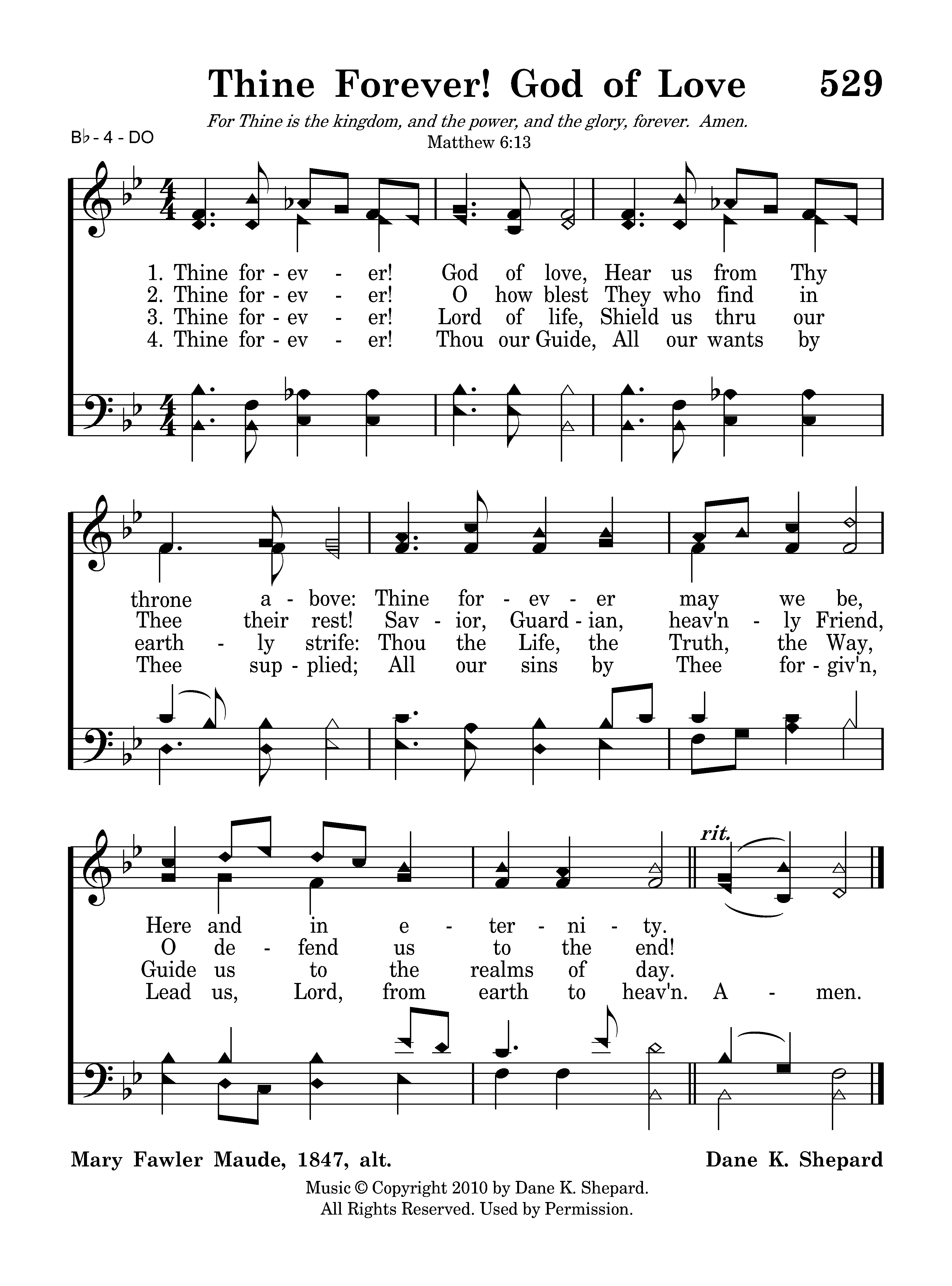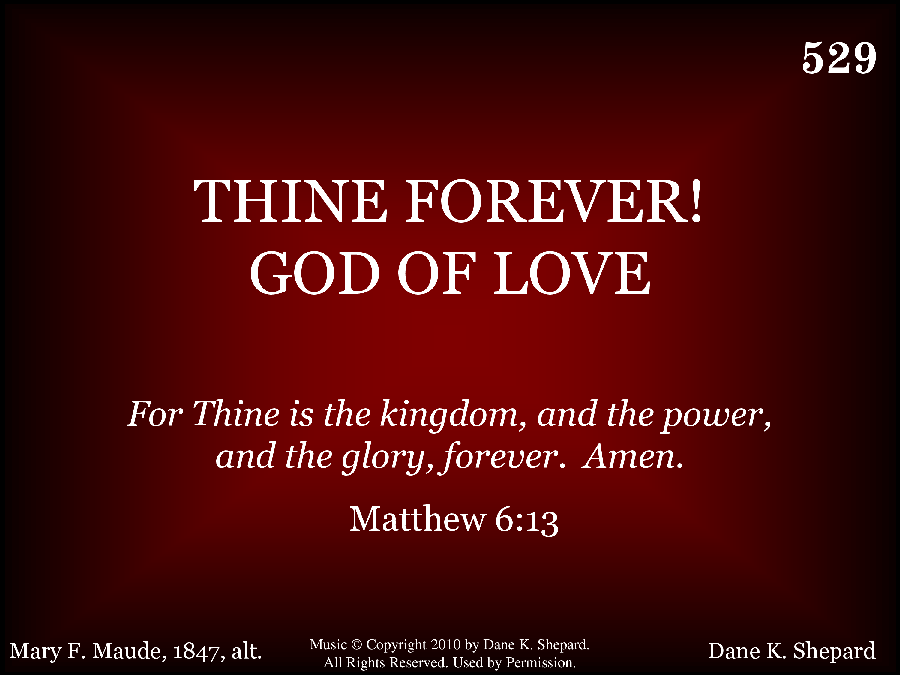 Thine forever! God of love, Hear us from Thy throne above: Thine forever may we be, Here and in eternity.