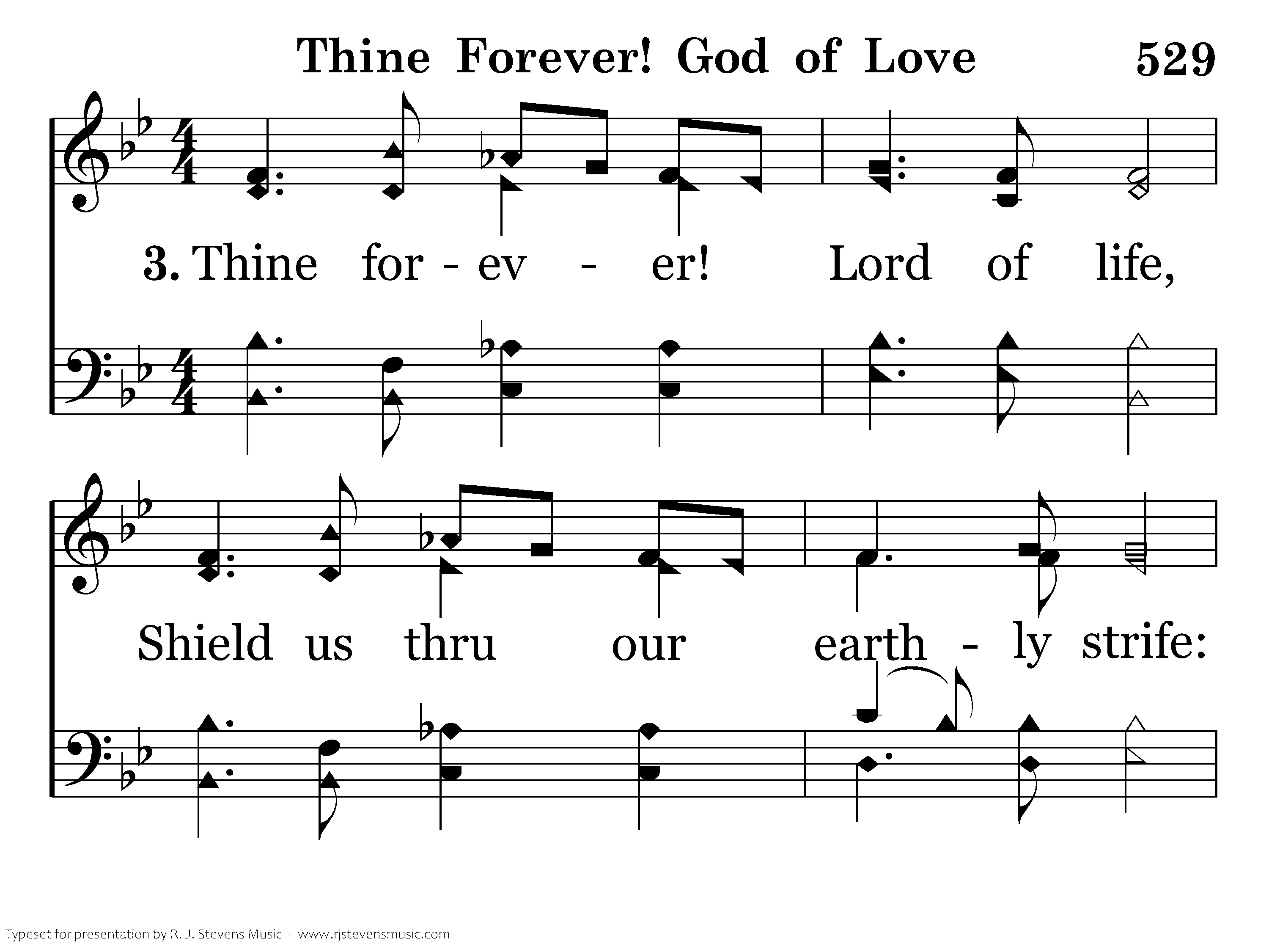 Thine forever! Lord of life, Shield us thru our eathly strife: Thou the Life, the Truth, the Way, guide us to the realms of day.