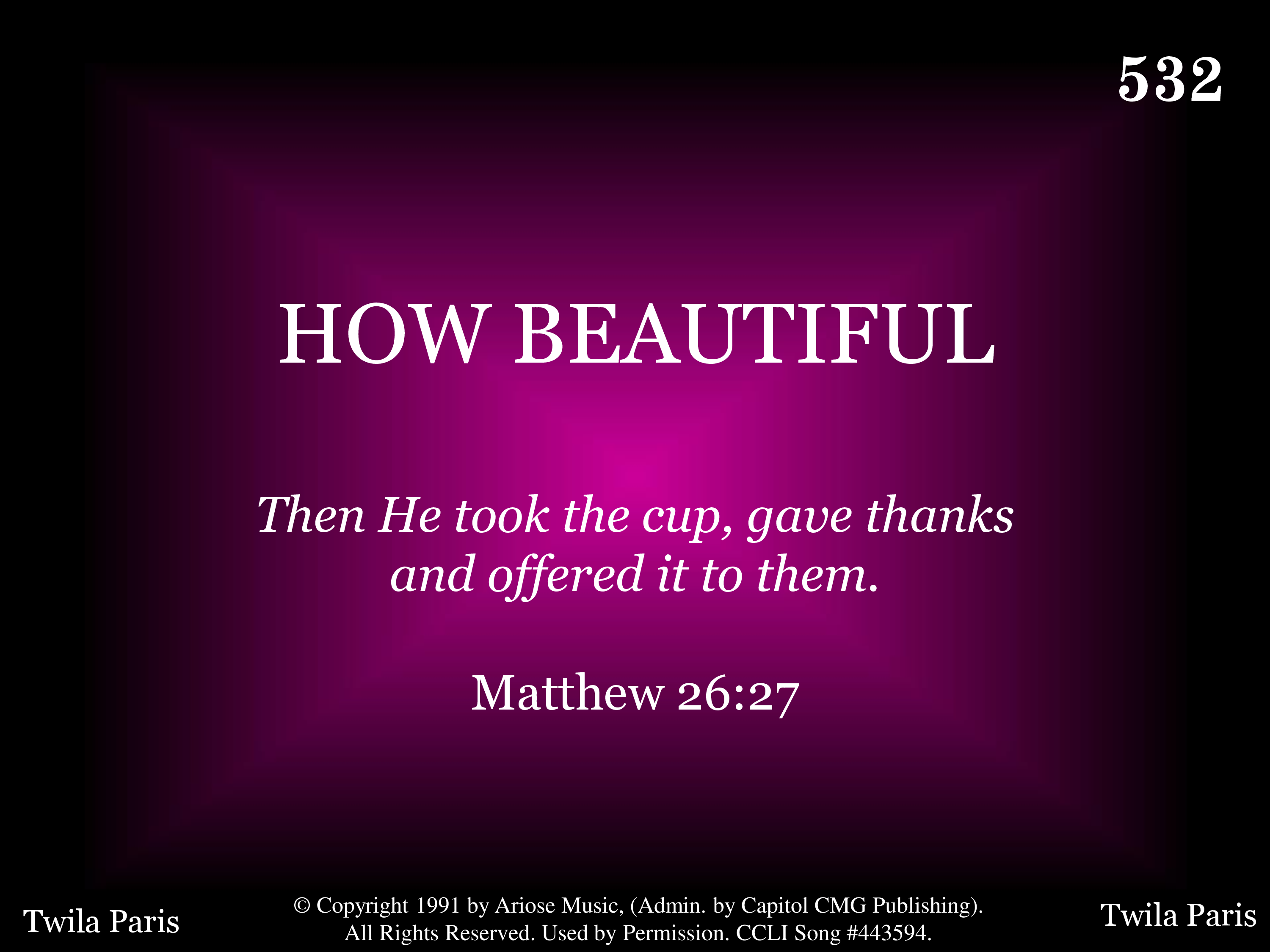 - Copyright © 1991 by Ariose. (Admin. by Capitol CMG Publishing.) All Rights Reserved. Used by Permission.