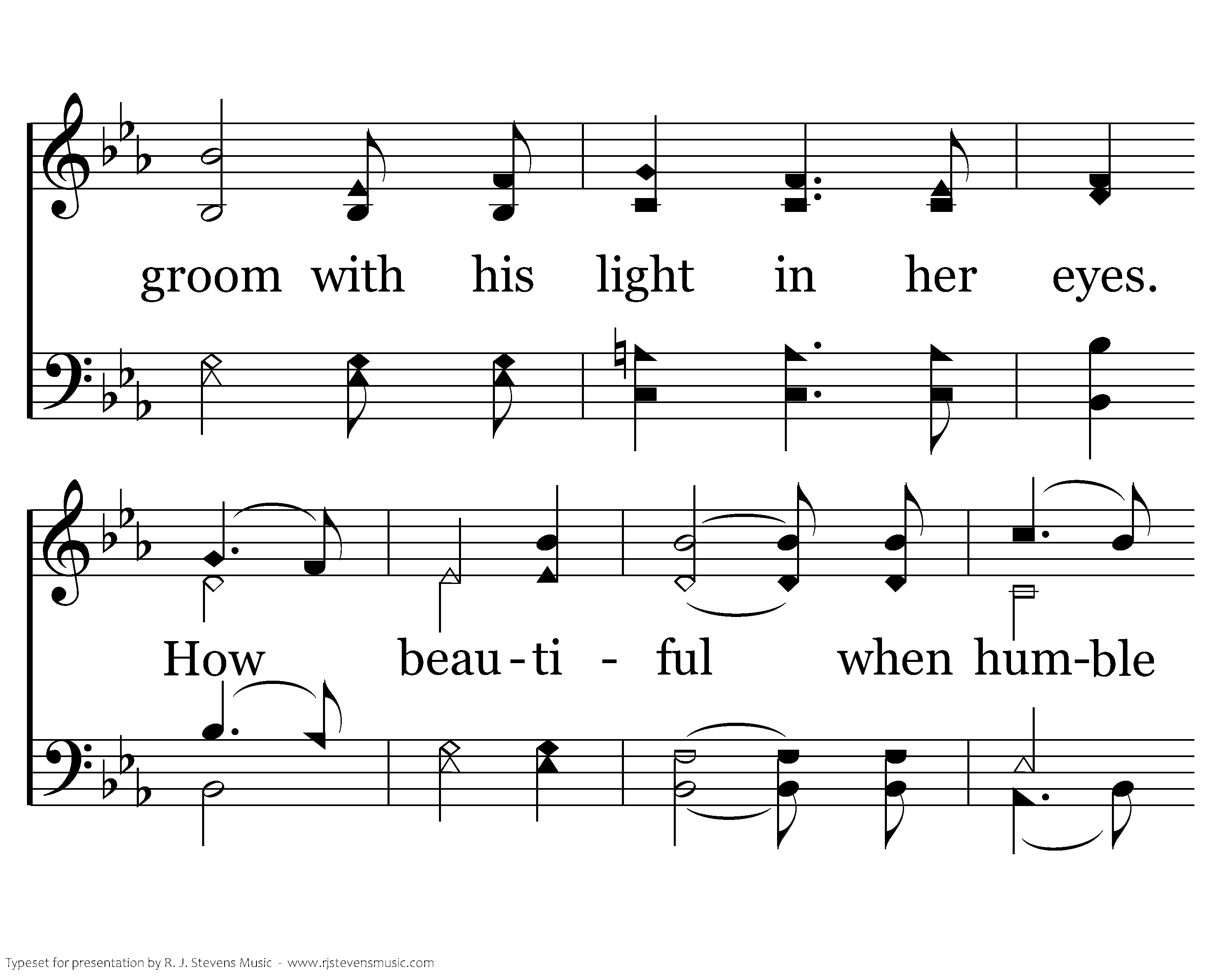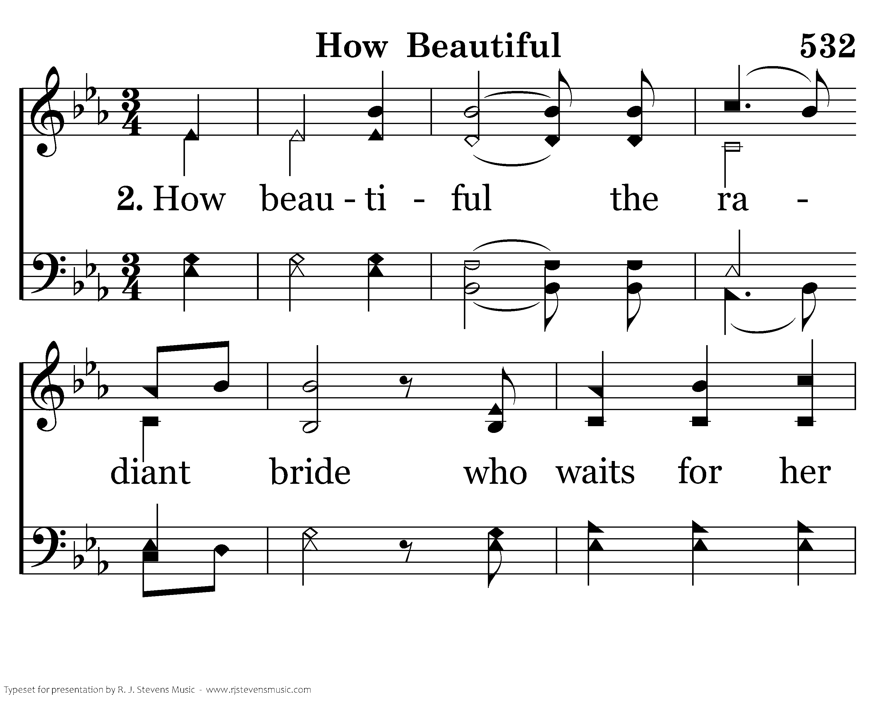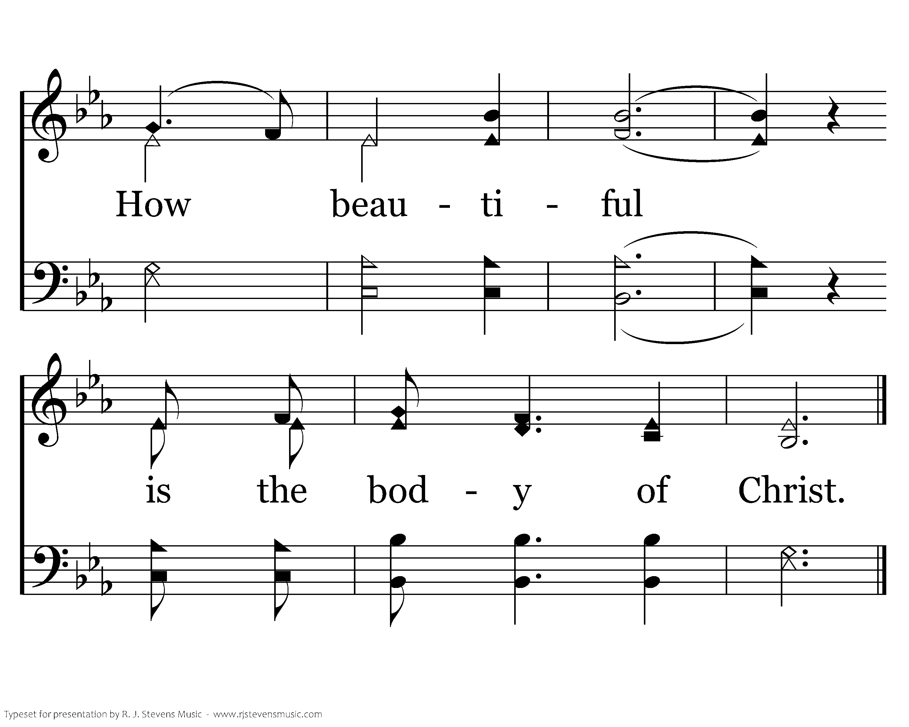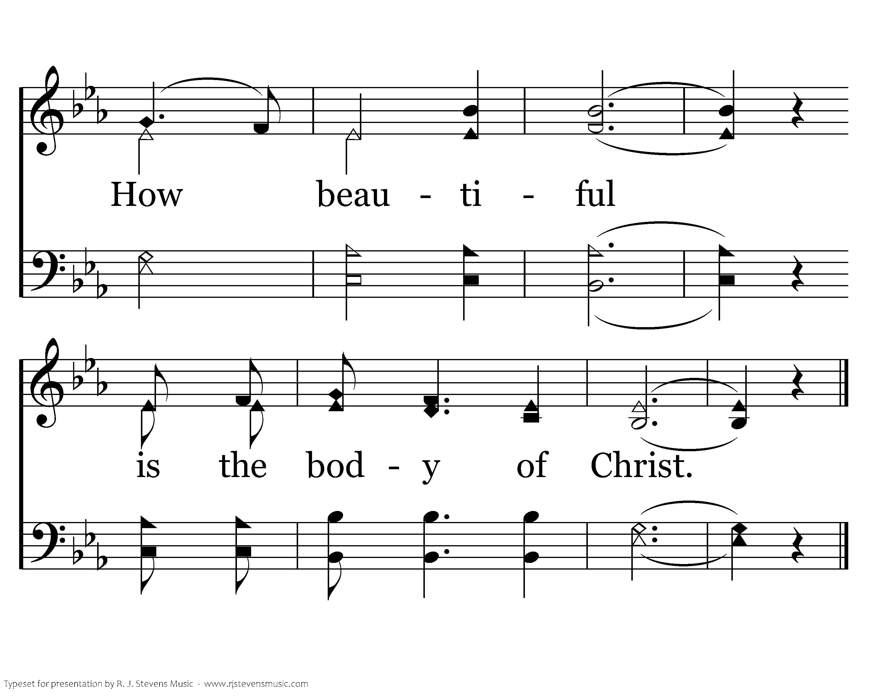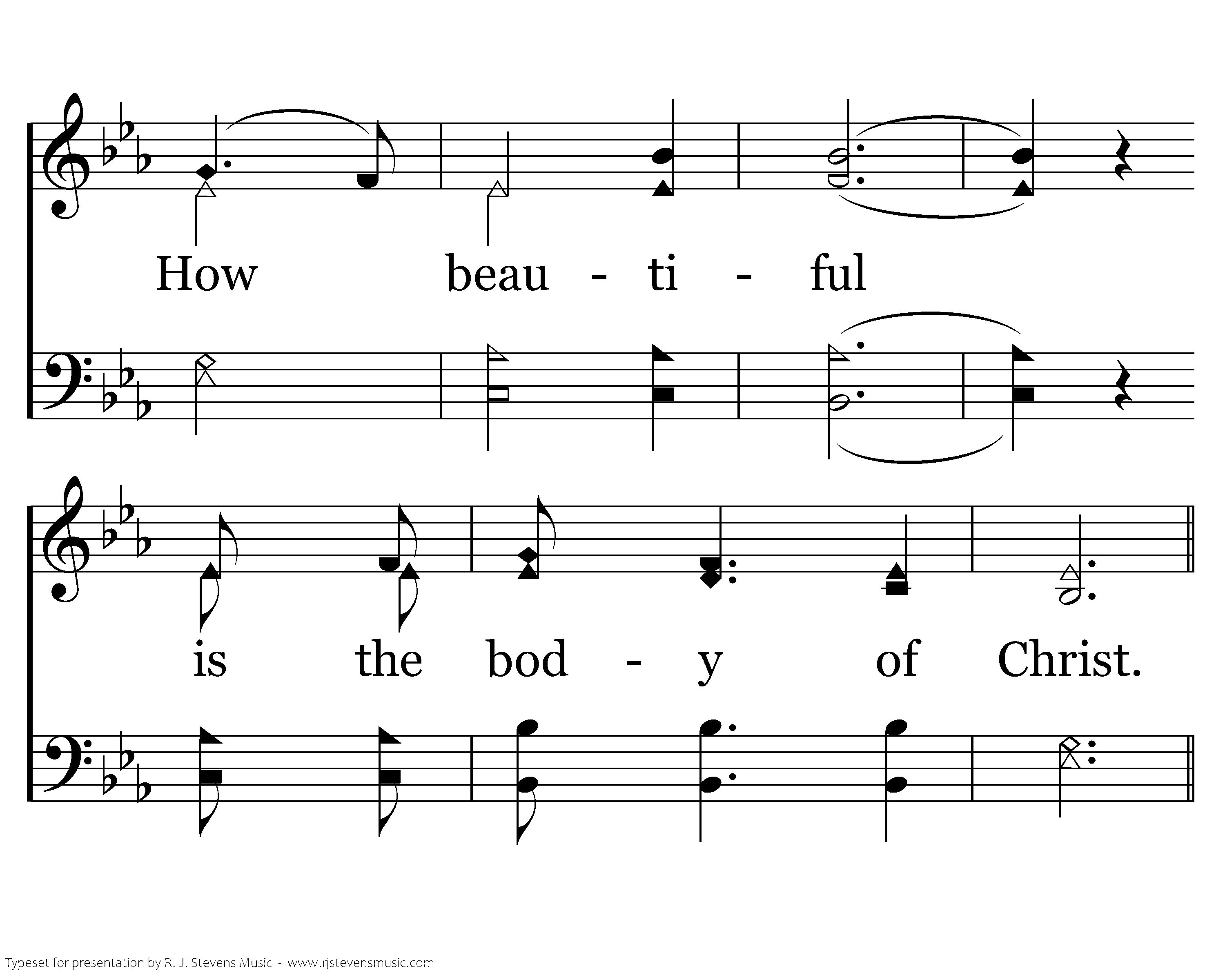 How beautiful the radiant bride who waits for her groom with his light in her eyes. How beautiful when humble hearts give the fruit of pure lives so that others may live. How beautiful, How beautiful How beautiful is the body of Christ.