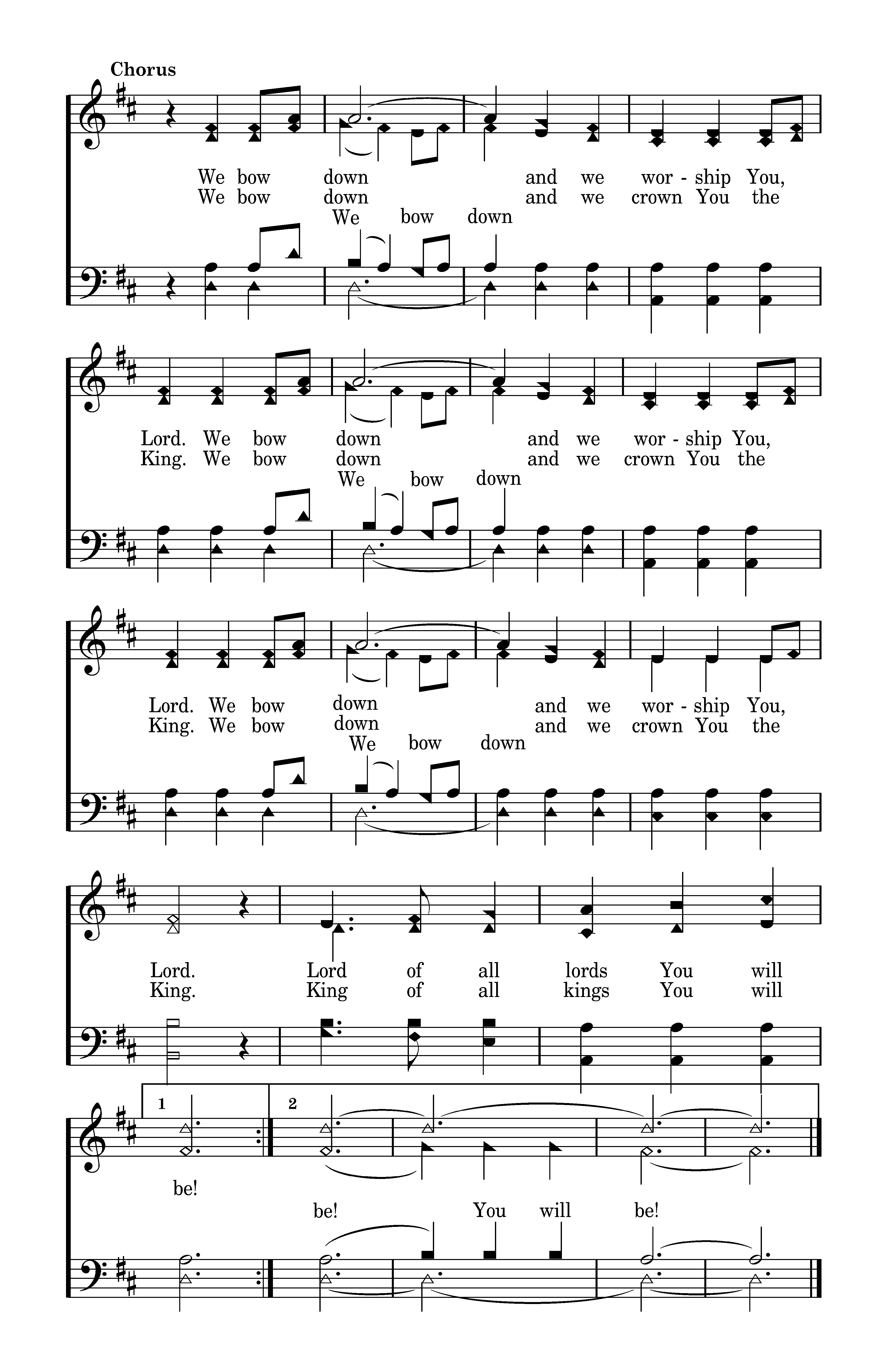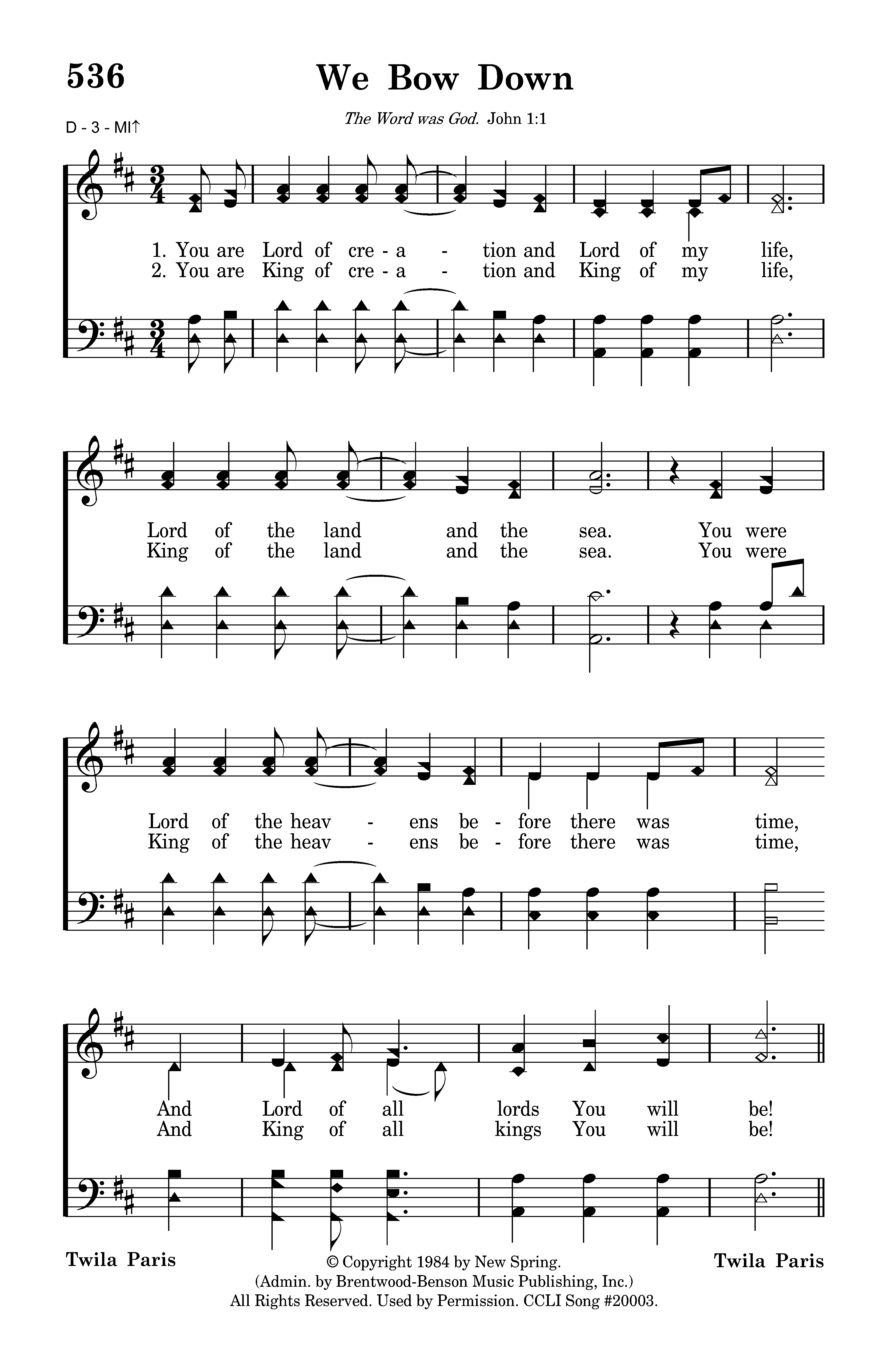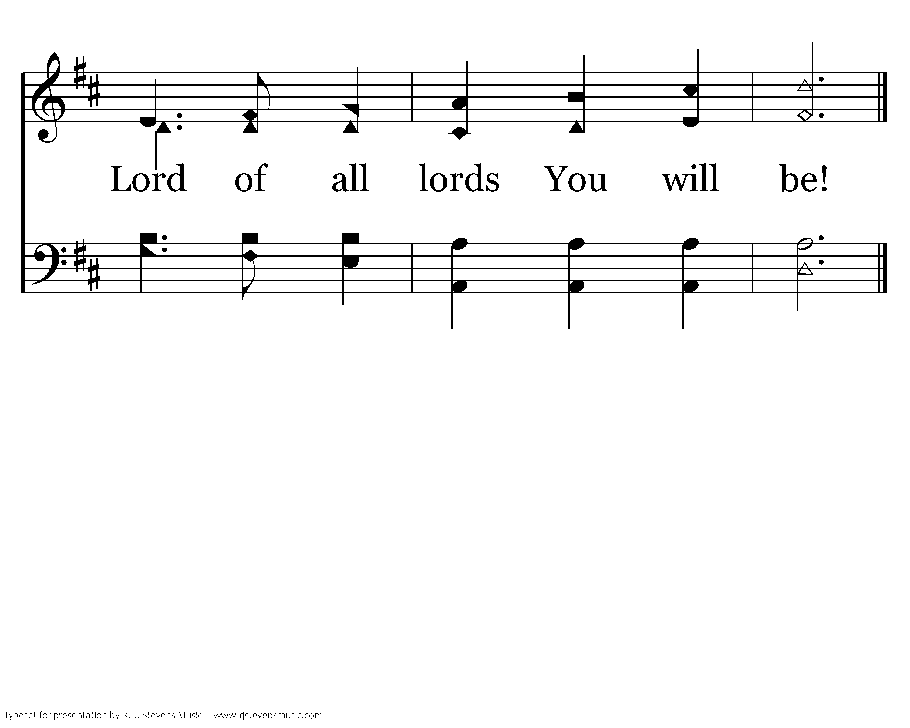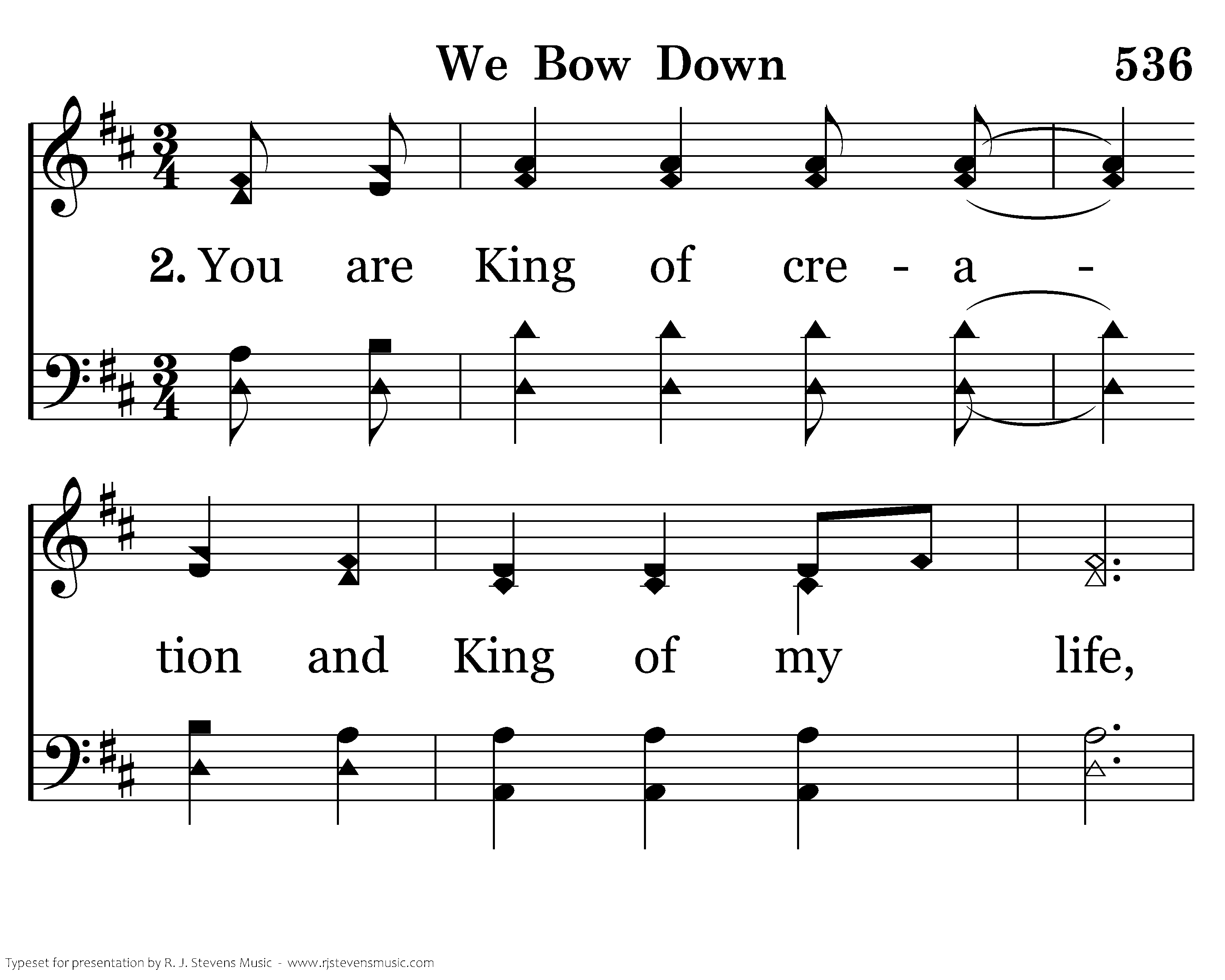 You are Lord of creation and Lord of my life, Lord of the land and the sea. You were Lord of the Heavens before there was time, And Lord of all lords You will be! We bow down and we worship You, Lord. We bow down and we worship You, Lord. We bow down and we worship You, Lord. Lord of all lords You will be! We bow down and we crown You the King. We bow down and we crown You the King. We bow down and we crown You the King. King of all kings You will be!