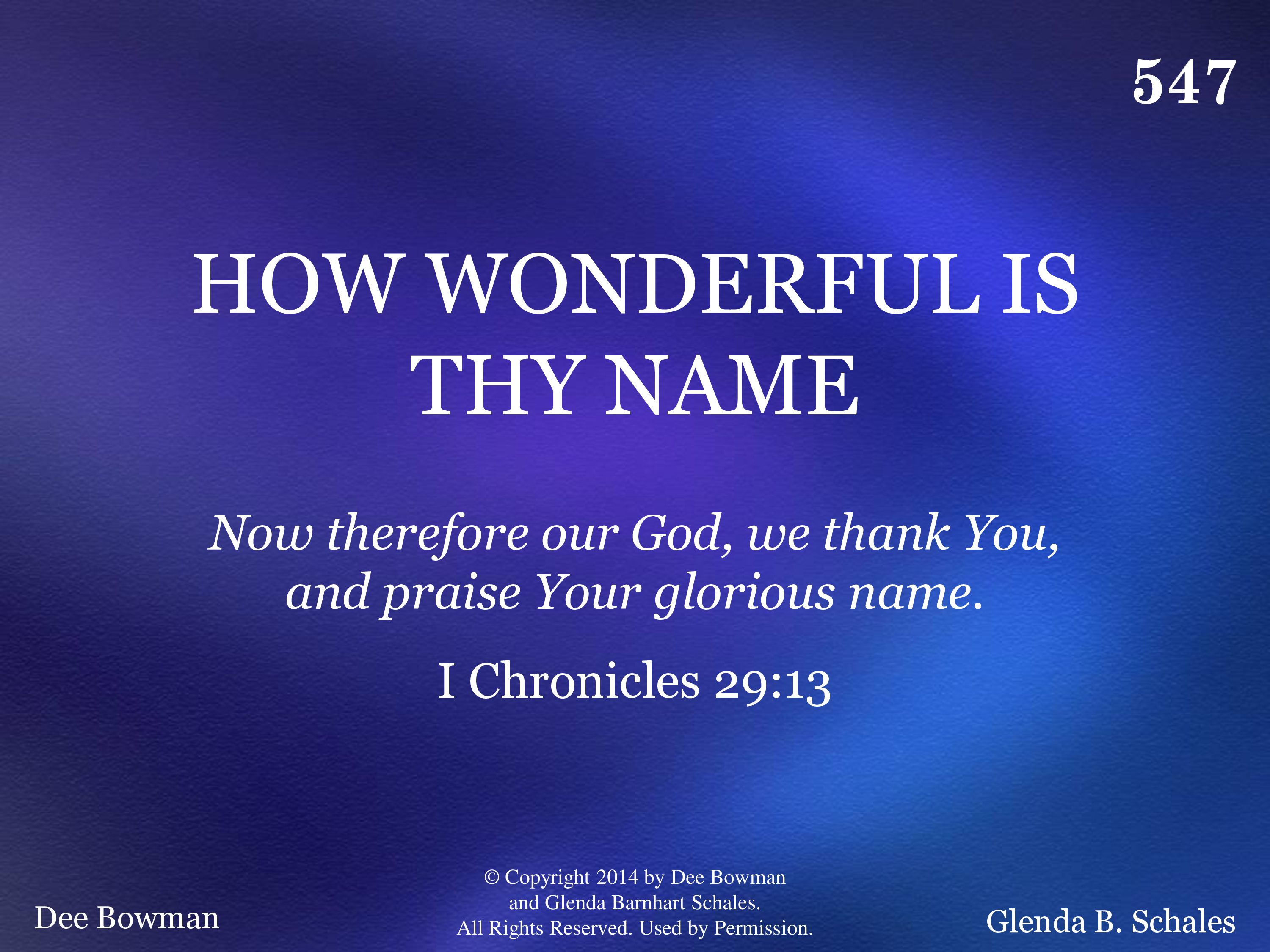 How wonderful is Thy name, O God, and high it is, and noble, How wonderful is thy name, O God, And worthy of all honor.