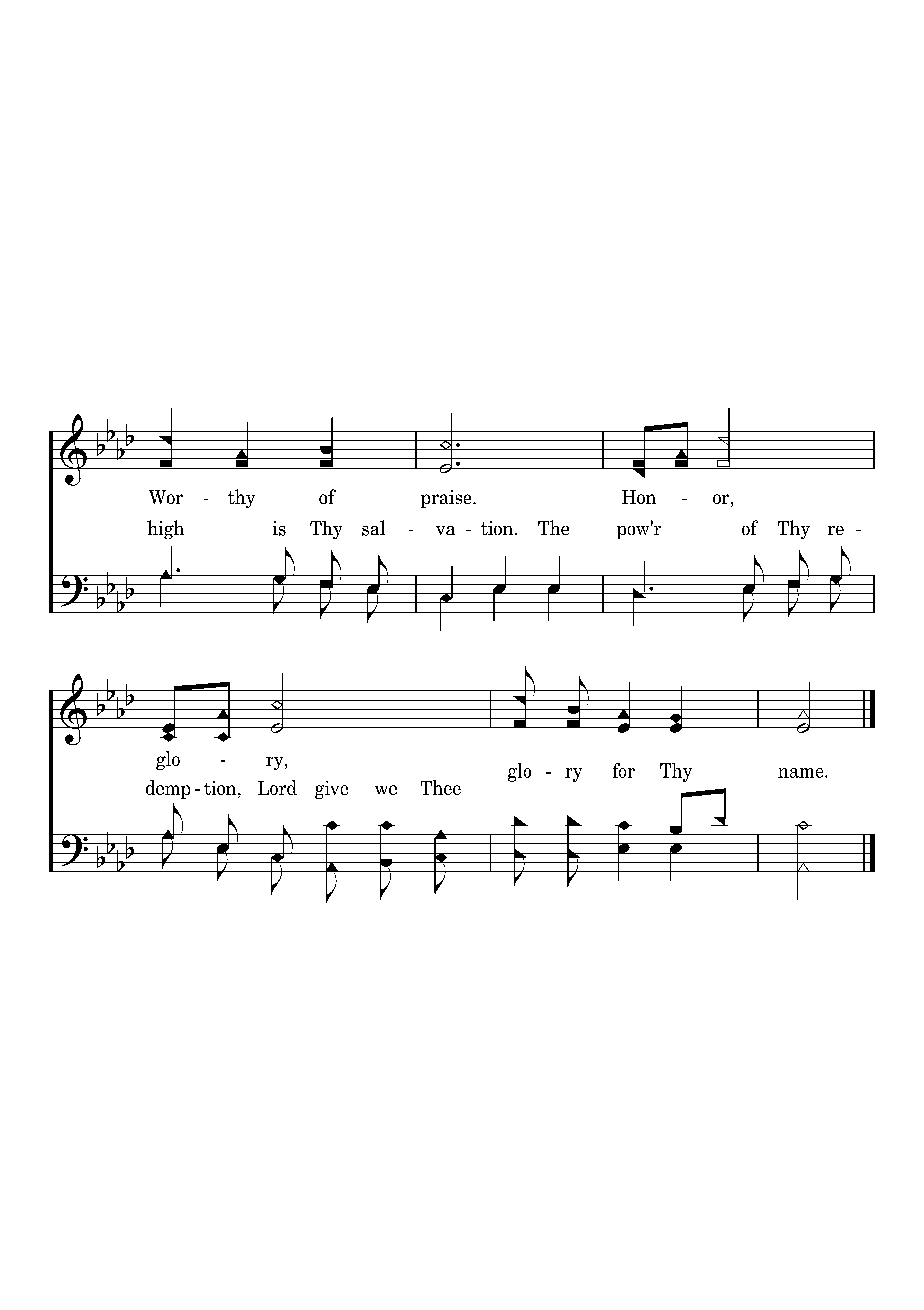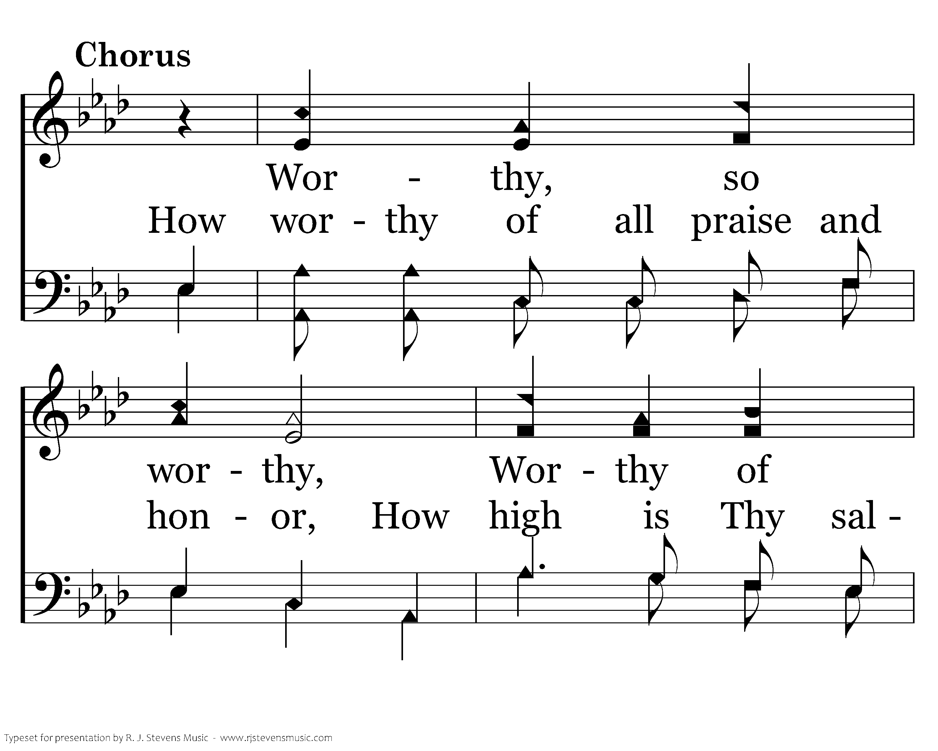 How worthy of all praises and honor How high is Thy salvation the power of Thy redemption, Lord give we Thee glory for Thy name