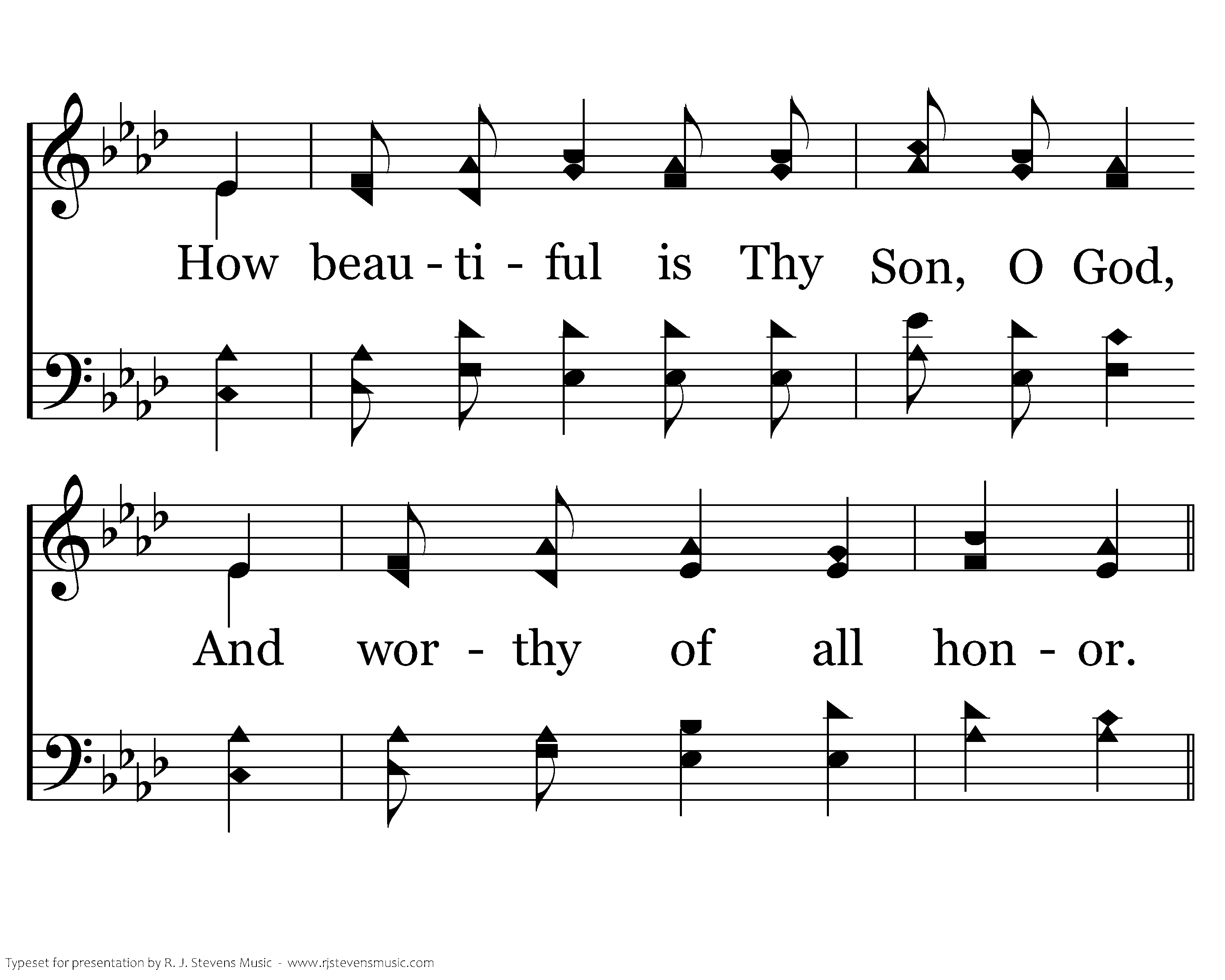 How beautiful is thy Son, O God, The joy of all our living, How beautiful is thy Son, O God, And worthy of all honor.