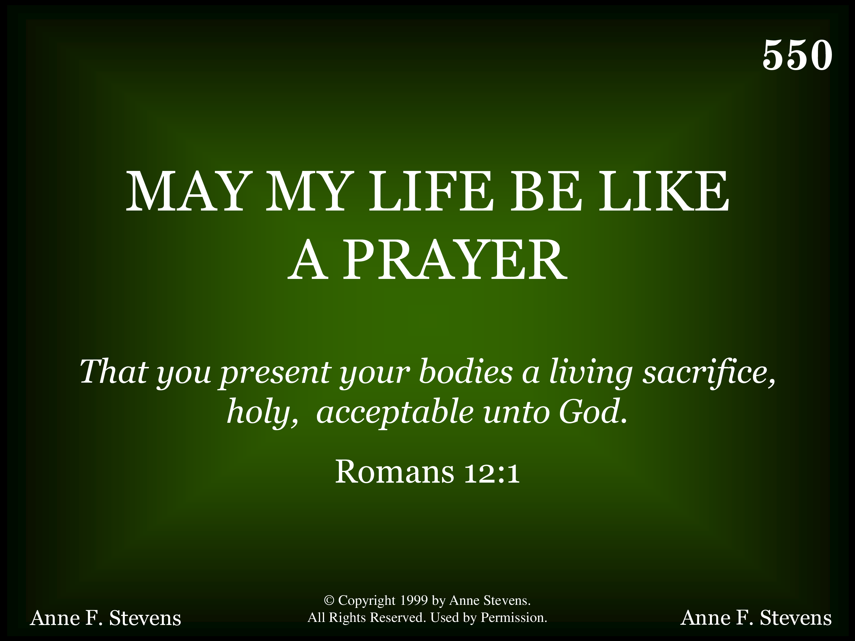 - Copyright © 1999 by Anne Stevens. All Rights Reserved. Used by Permission.