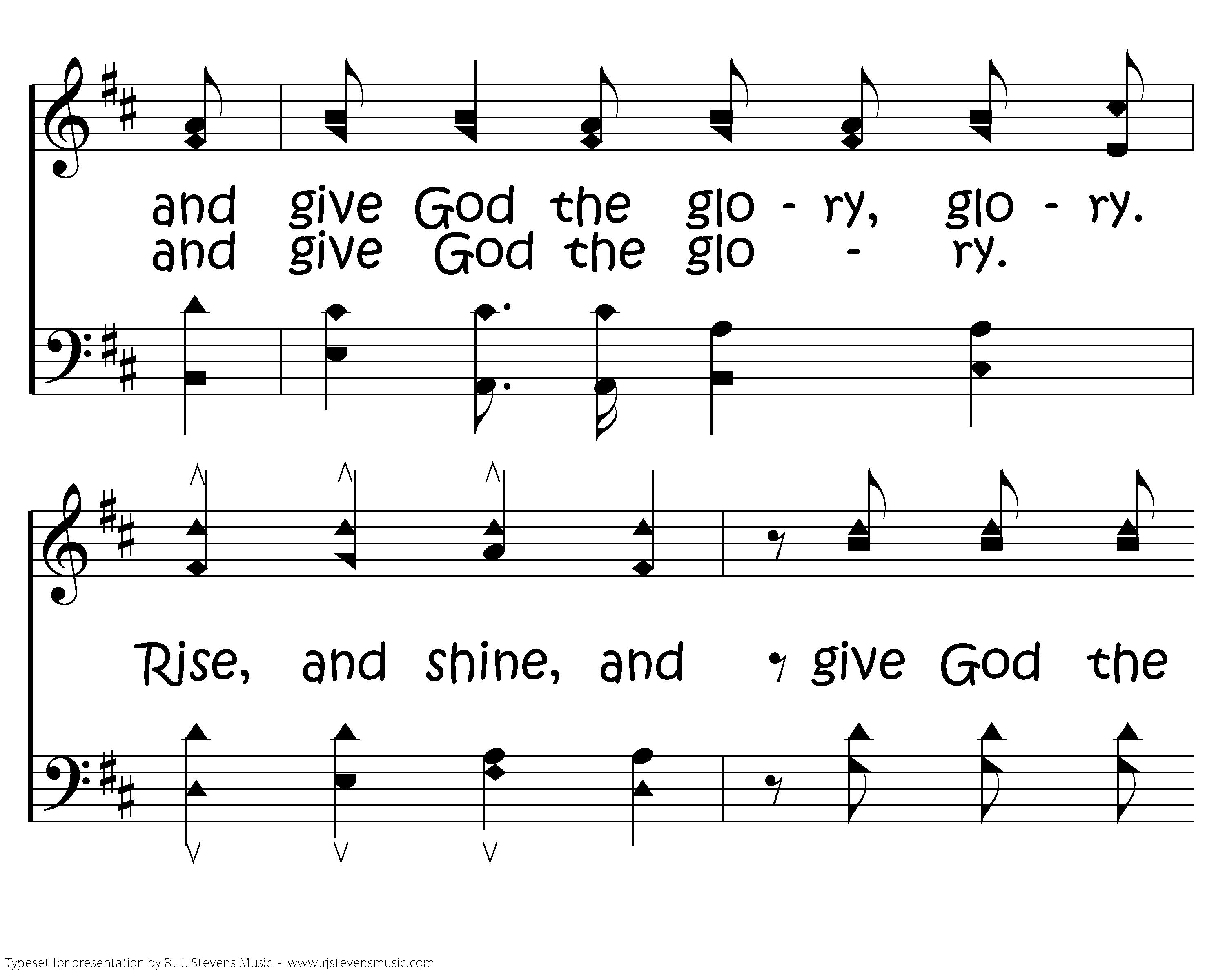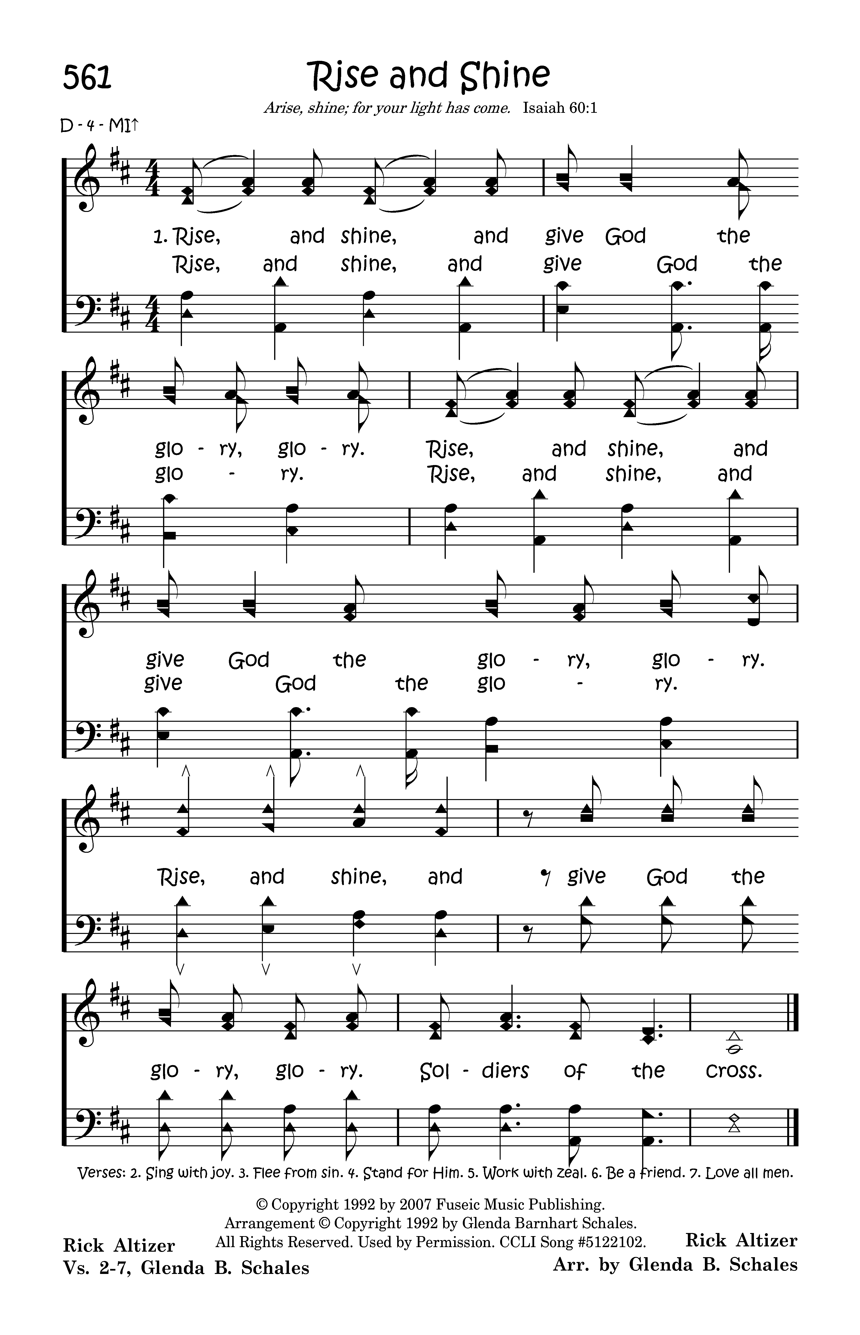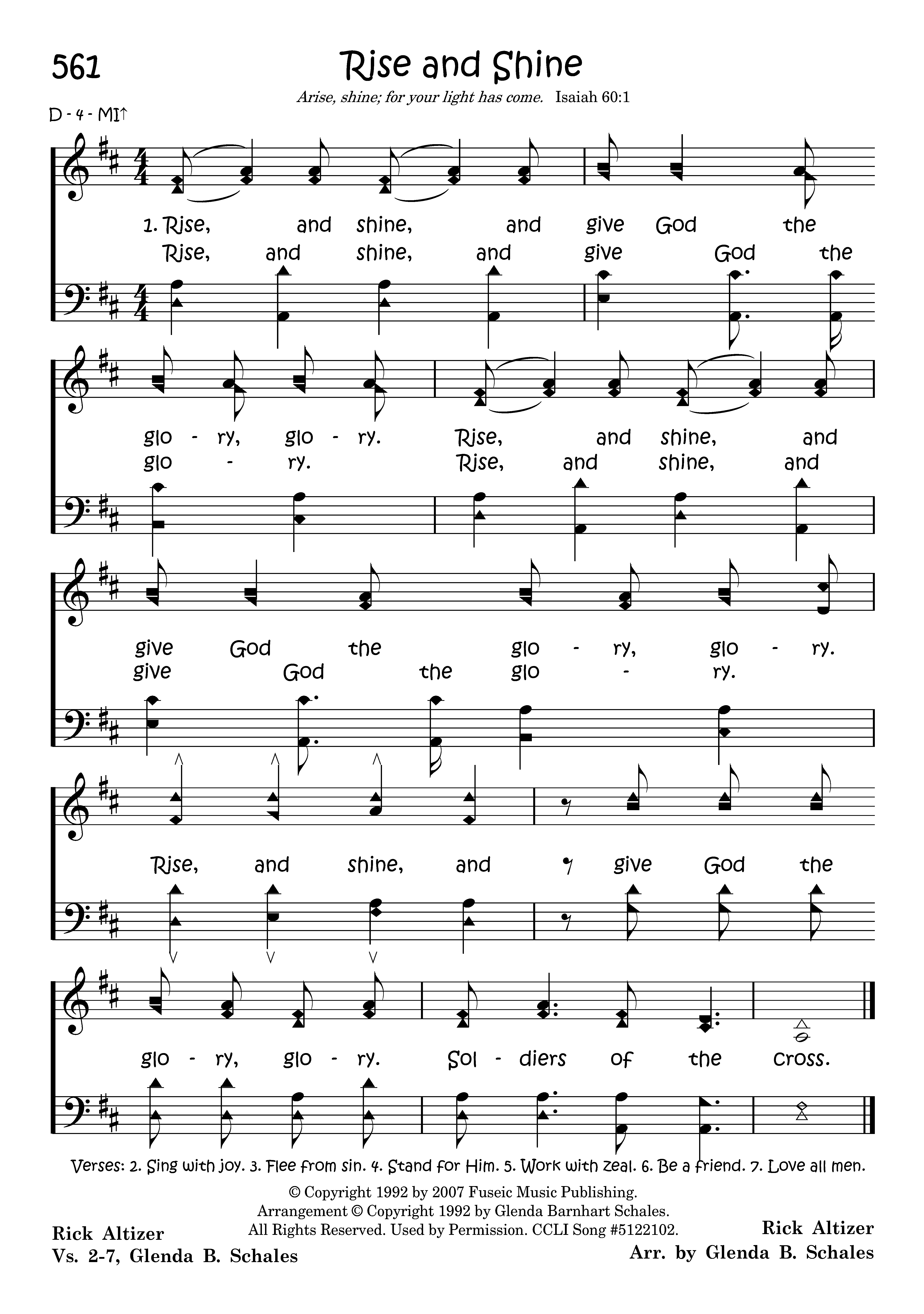 Rise, and shine, and give God the glory, glory. Rise, and shine, and give God the glory, glory. Rise, and shine, and give God the glory, glory. Soldiers of the cross.