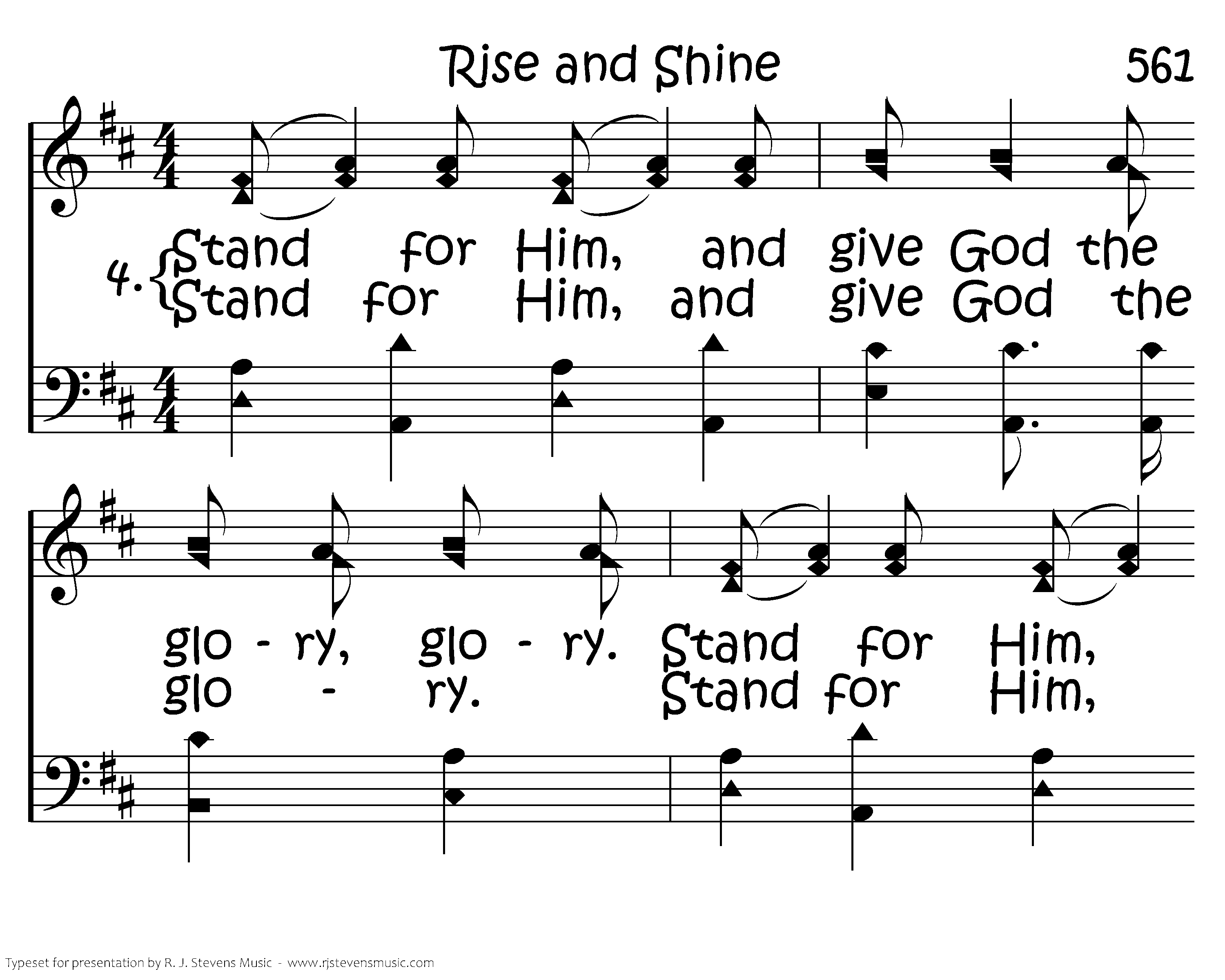 Stand for Him, and give God the glory, glory. Stand for Him, and give God the glory, glory. Stand for Him, and give God the glory, glory. Soldiers of the cross.