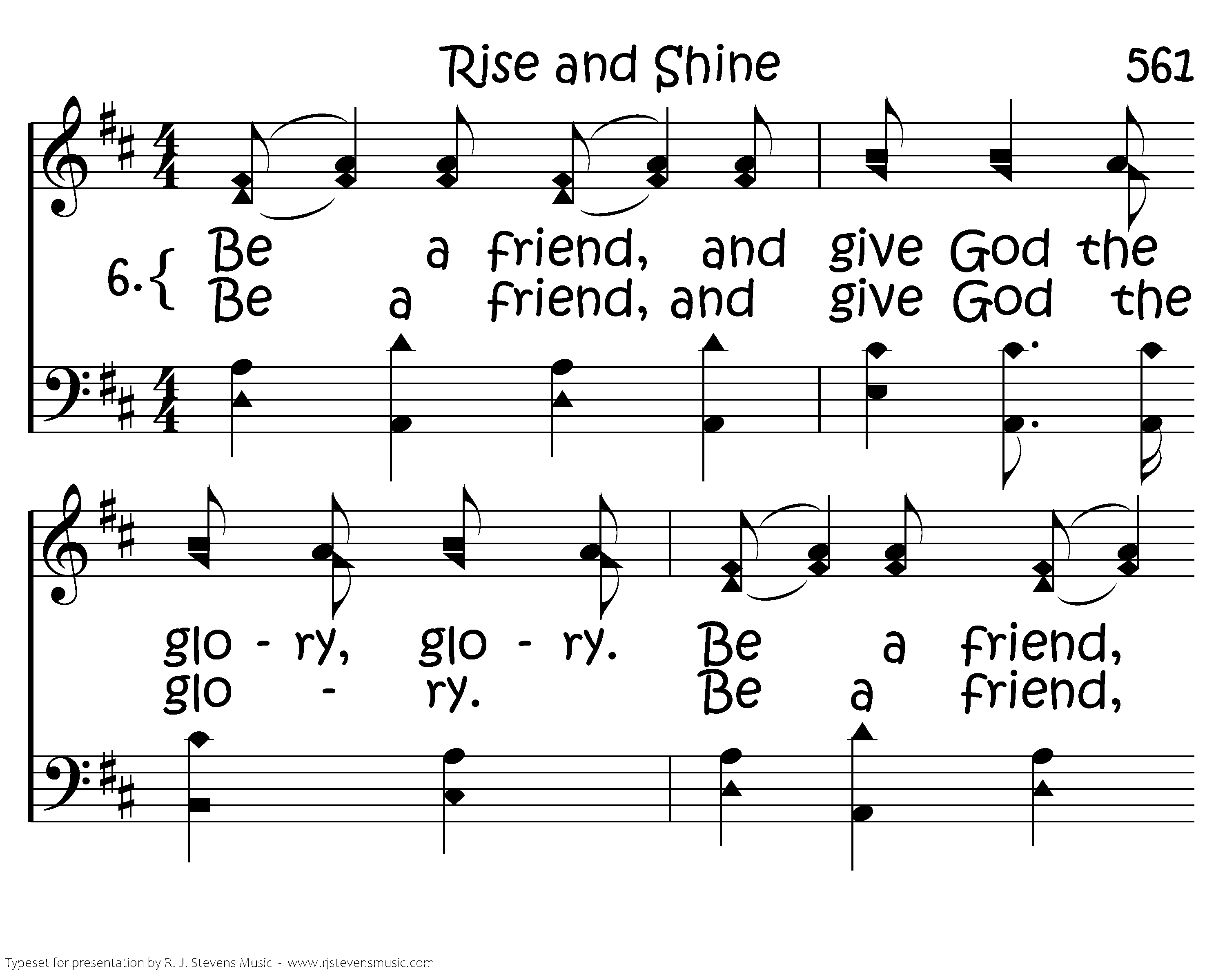 Be a friend, and give God the glory, glory. Be a friend and give God the glory, glory. Be a friend and give God the glory, glory. Soldiers of the cross.