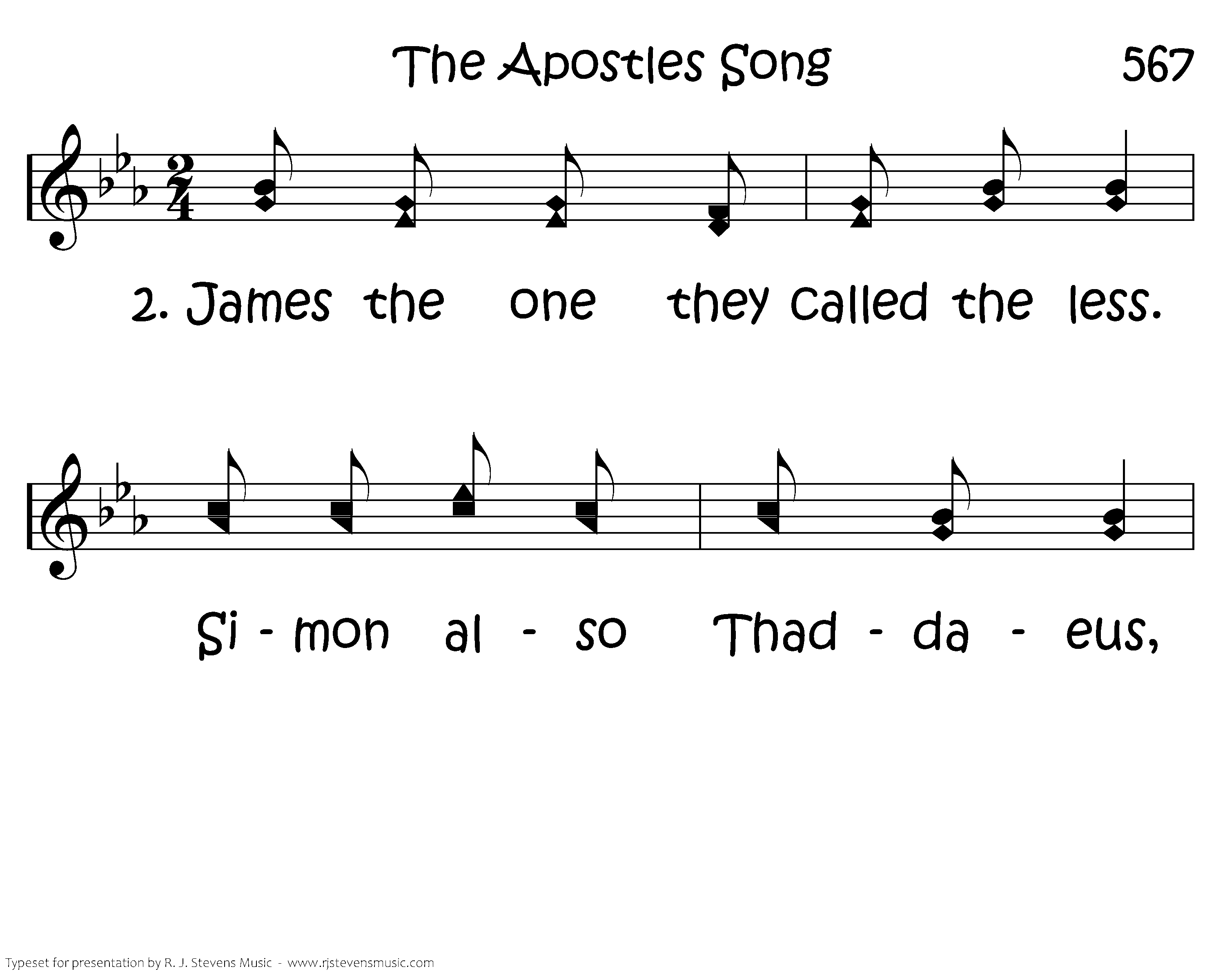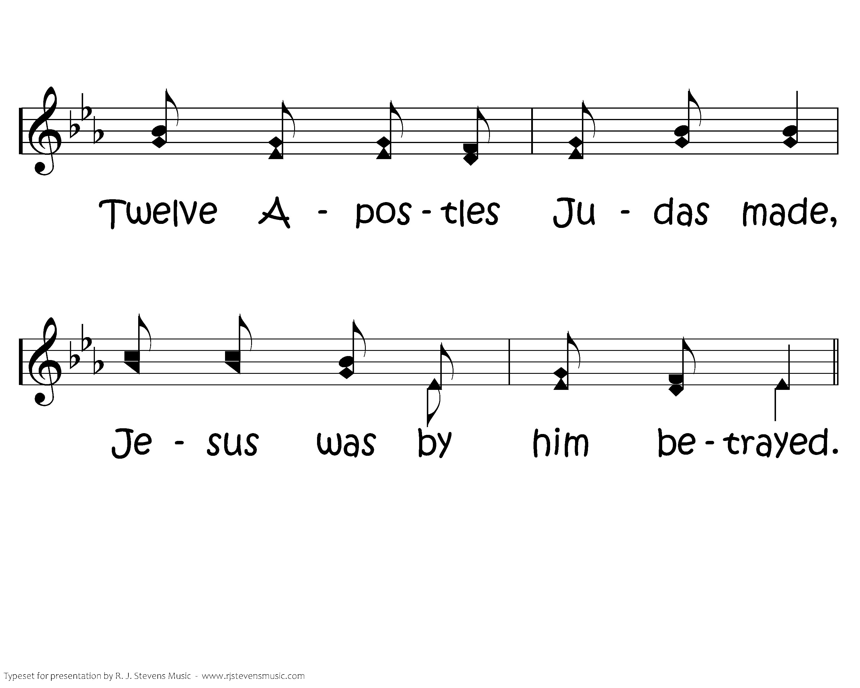 James the one they called the less. Simon also Thaddaeus, Twelve Apostles Judas made, Jesus was by him betrayed.