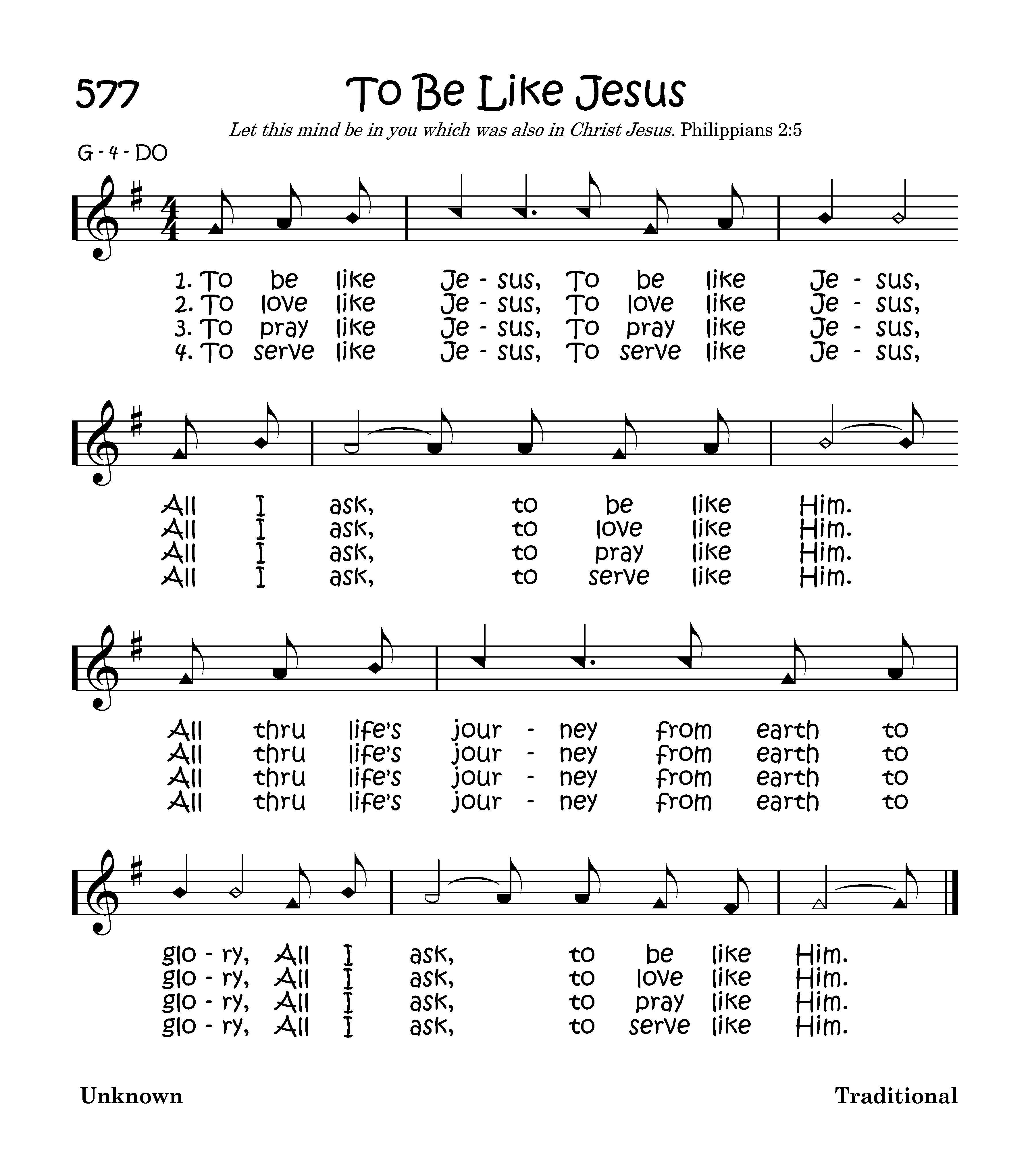 To be like Jesus, To be like Jesus, All I ask, to be like Him. All thru life's journey from earth to glory, All I ask, to be like Him.