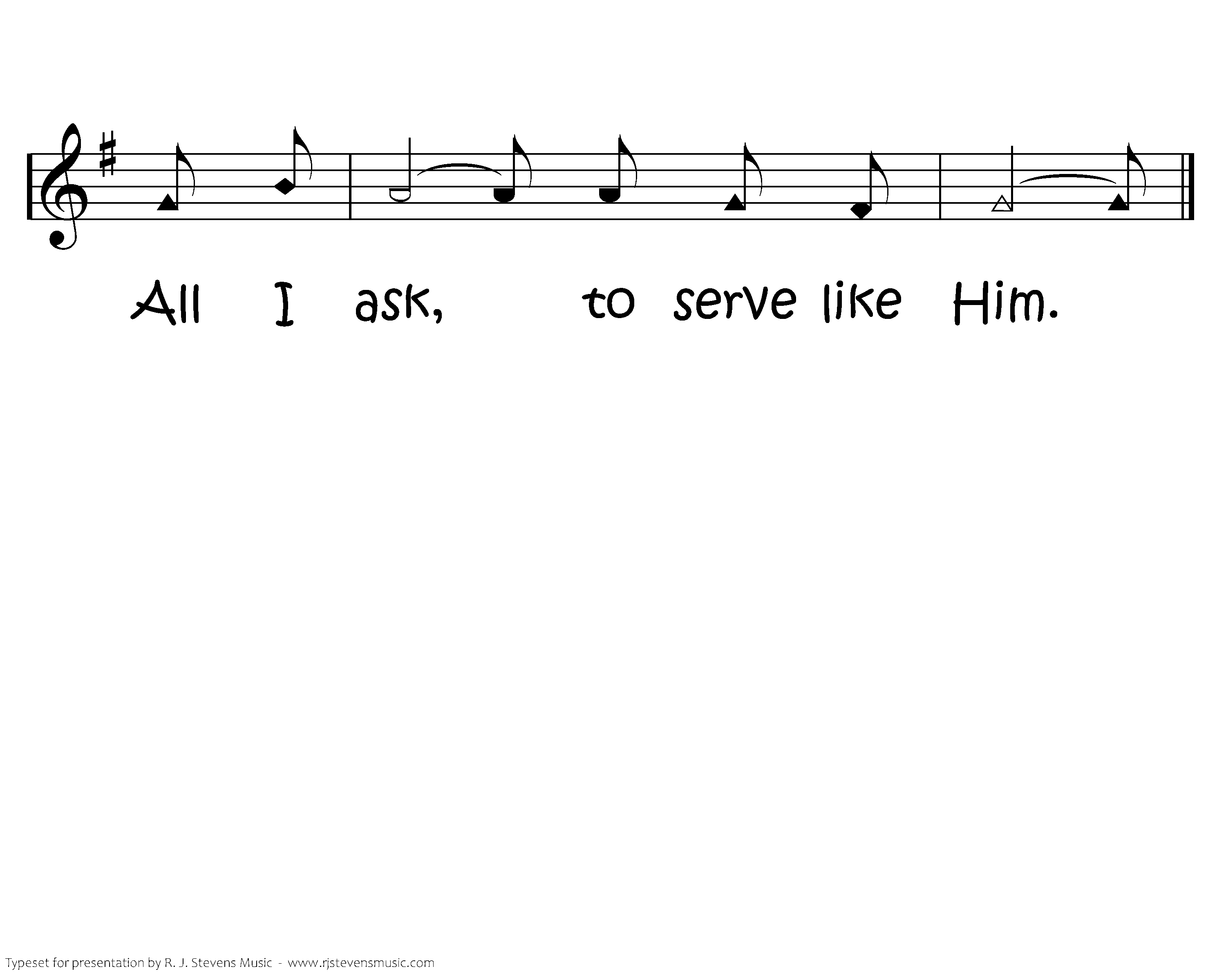 To serve like Jesus, To serve like Jesus, All I ask, to serve like Him. All thru life's journey from earth to glory, All I ask, to serve like Him.