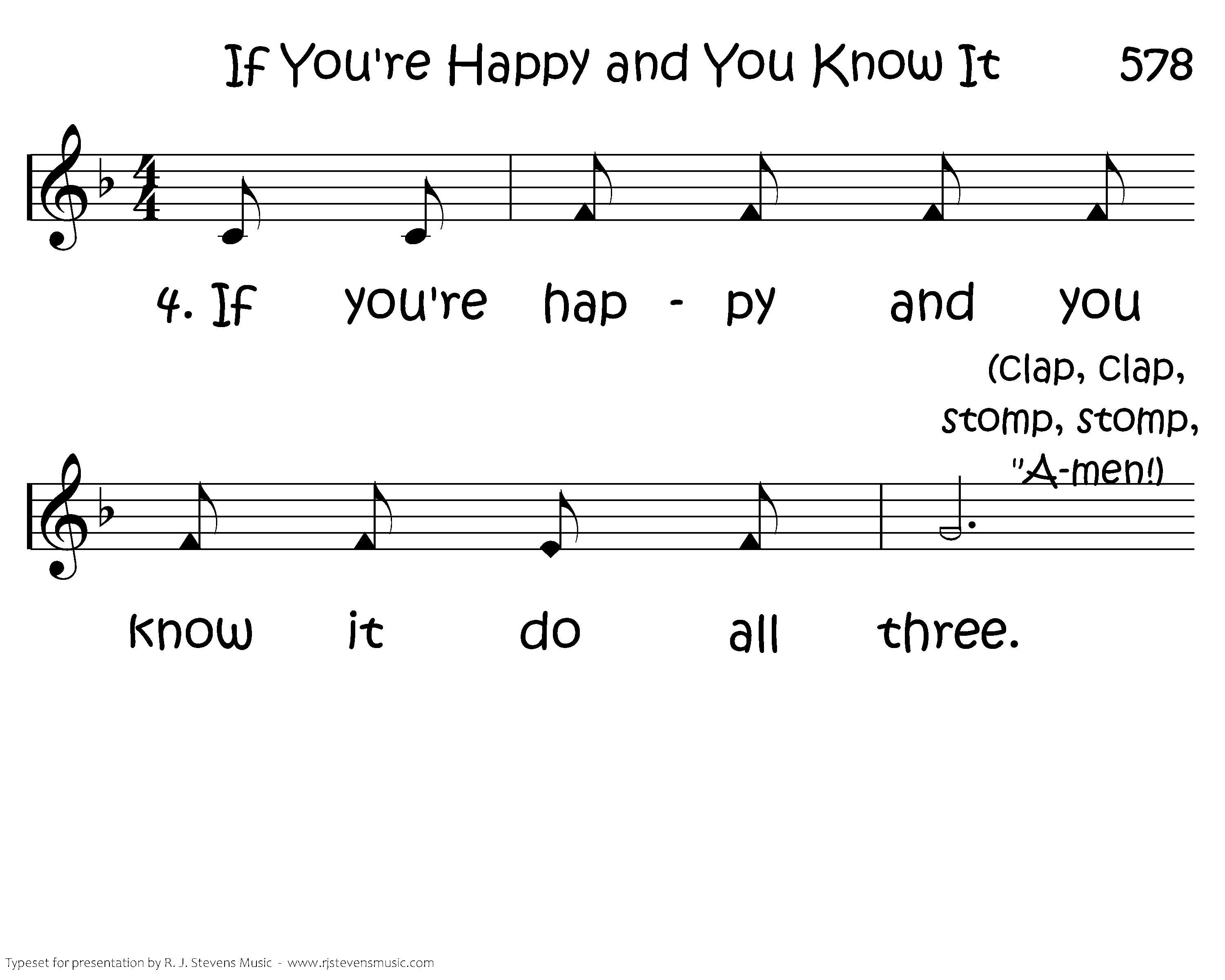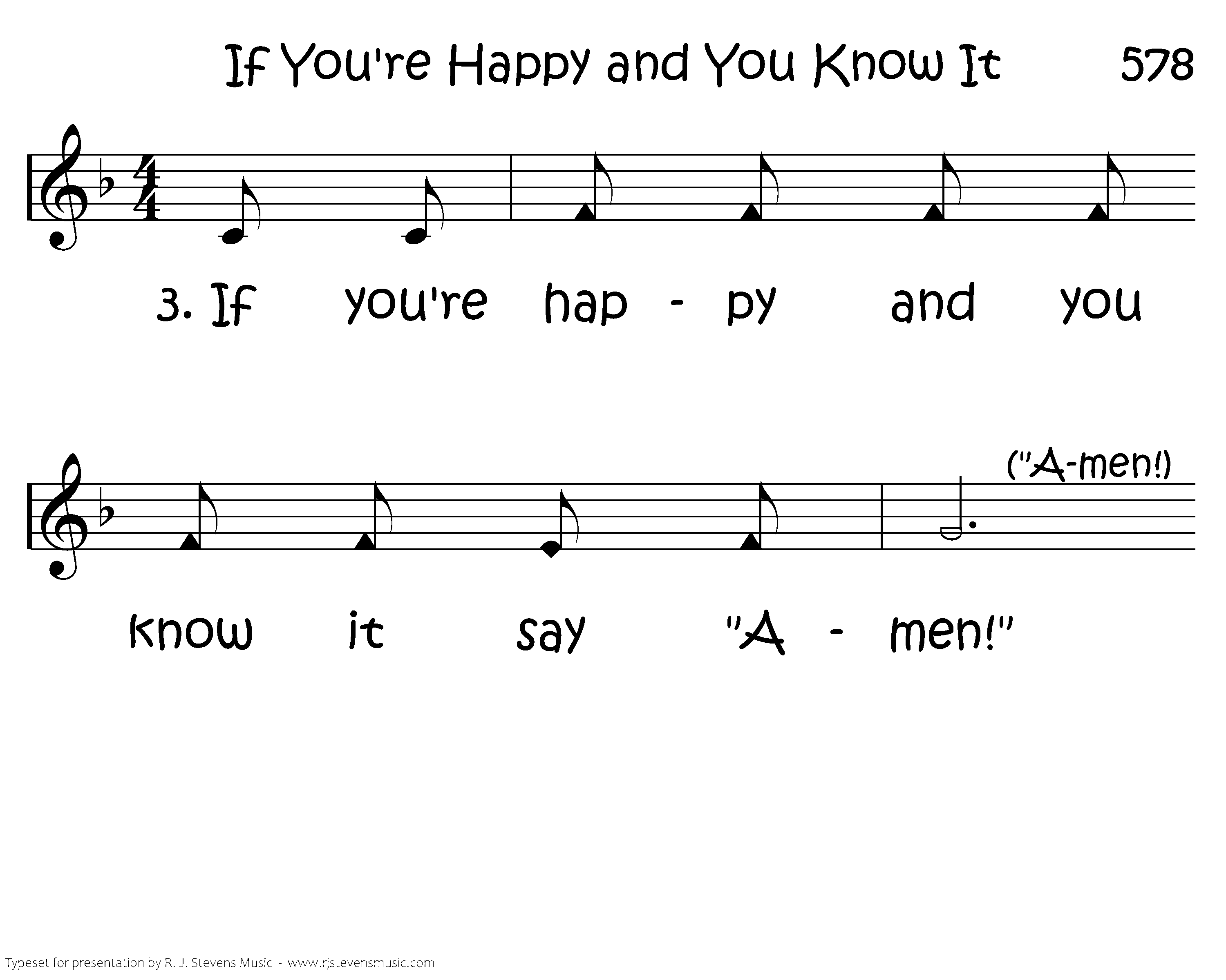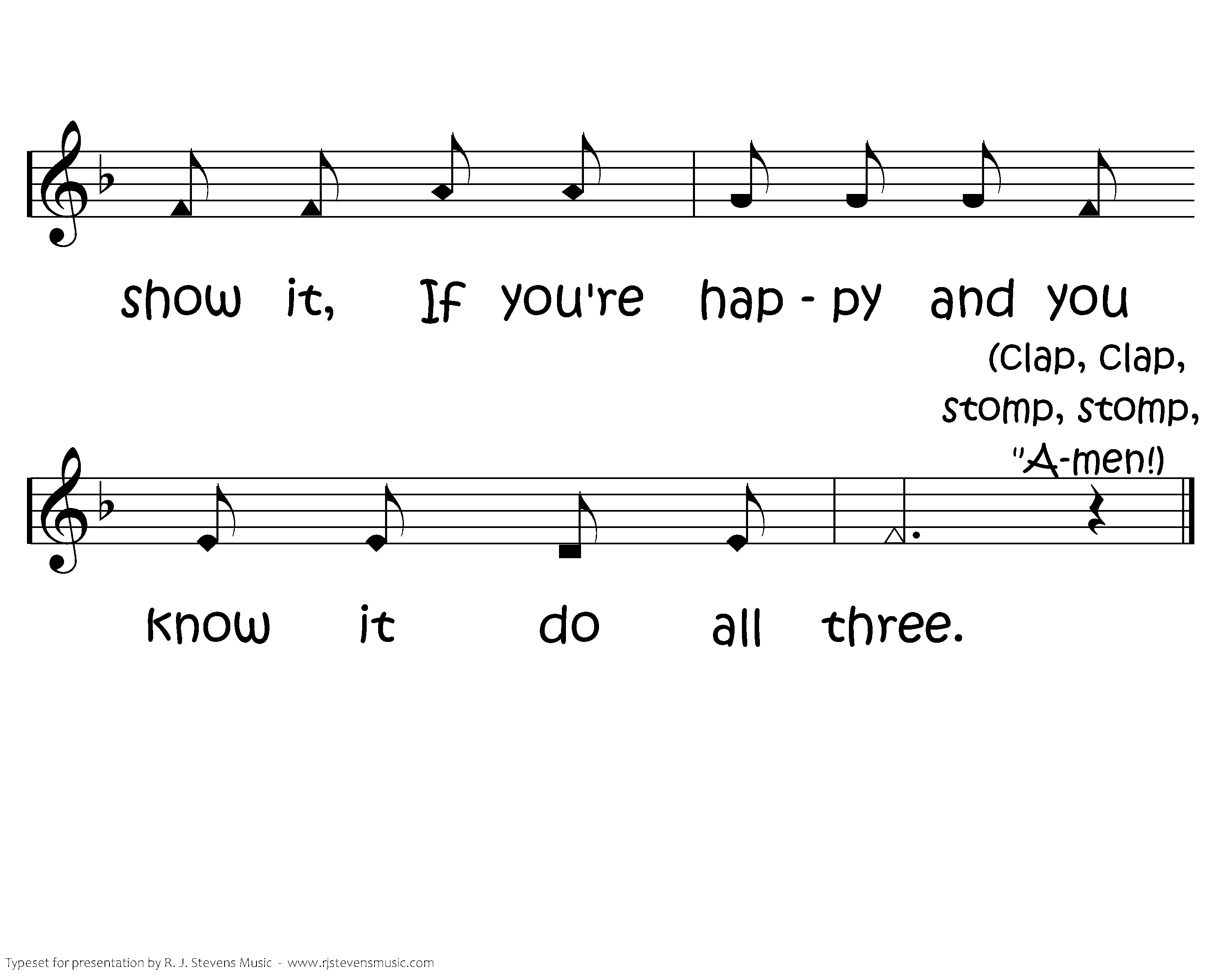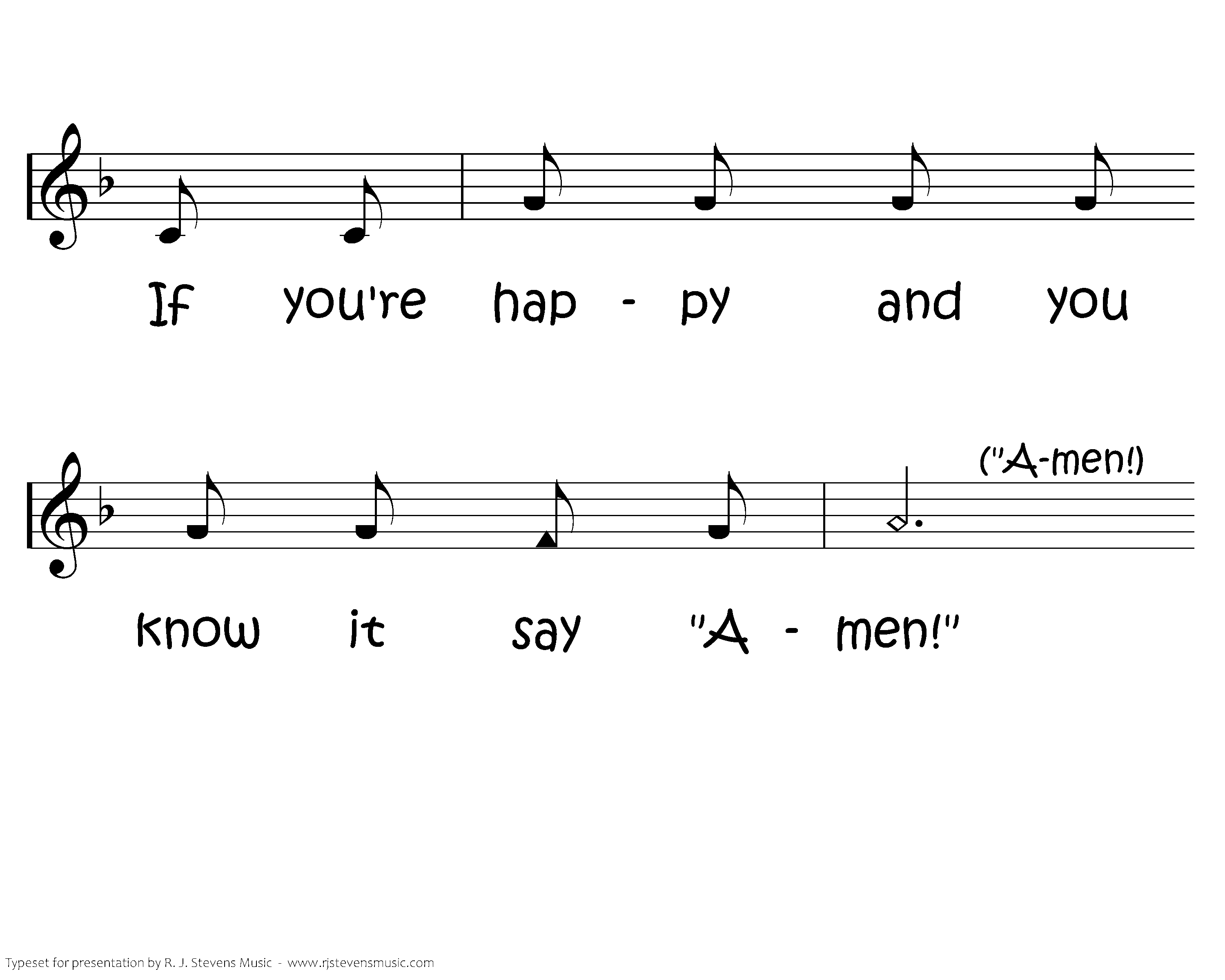 If you're happy and you know it say "Amen!" If you're happy and you know it say "Amen!" If you're happy and you know it then your life will surely show it, If you're happy and you know it say "Amen!"