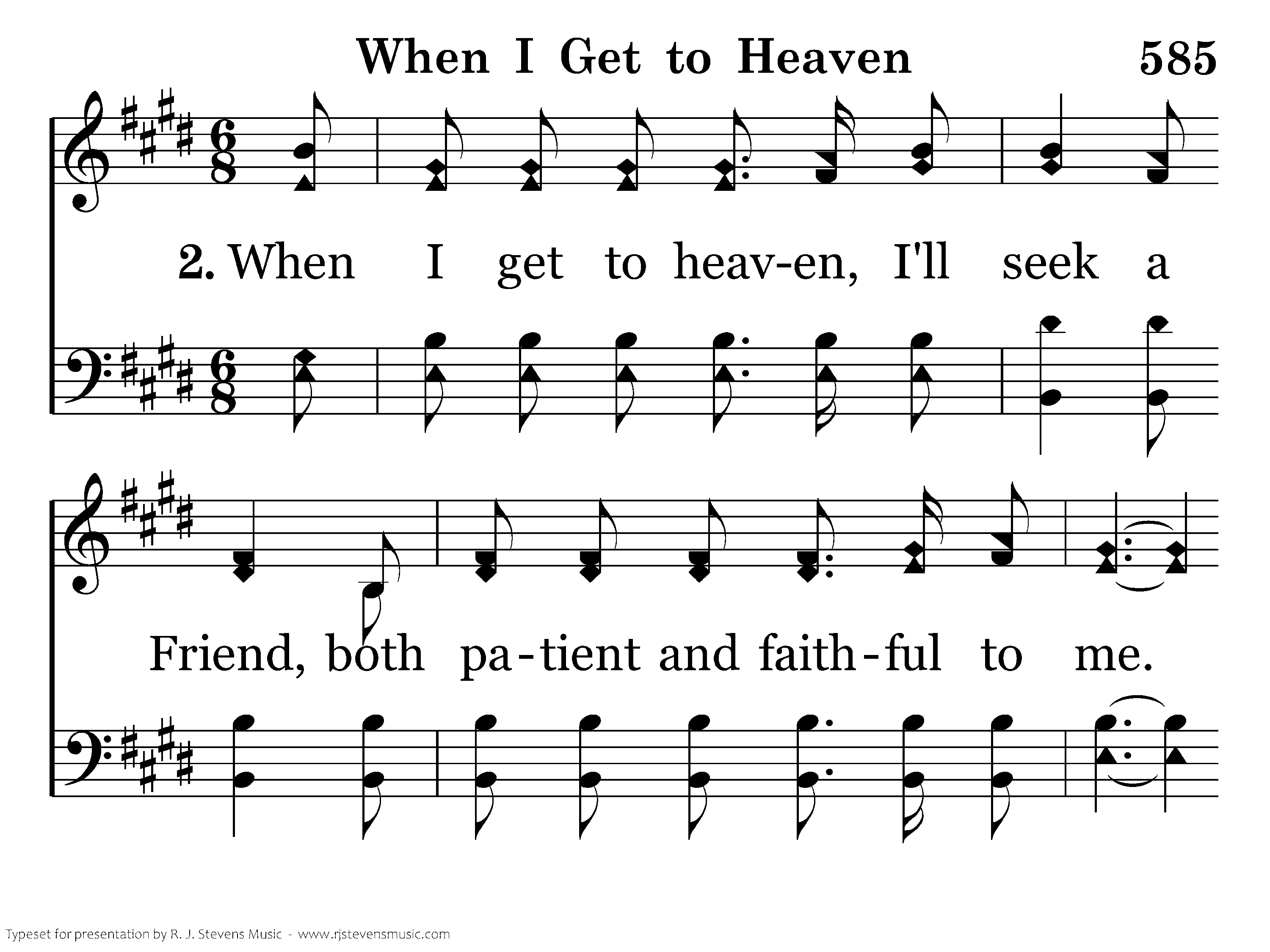 When I get to heaven, I'll seek a Friend, both patient and faithful to me. And 'though I failed often to be His friend, The truest Friend was He.
