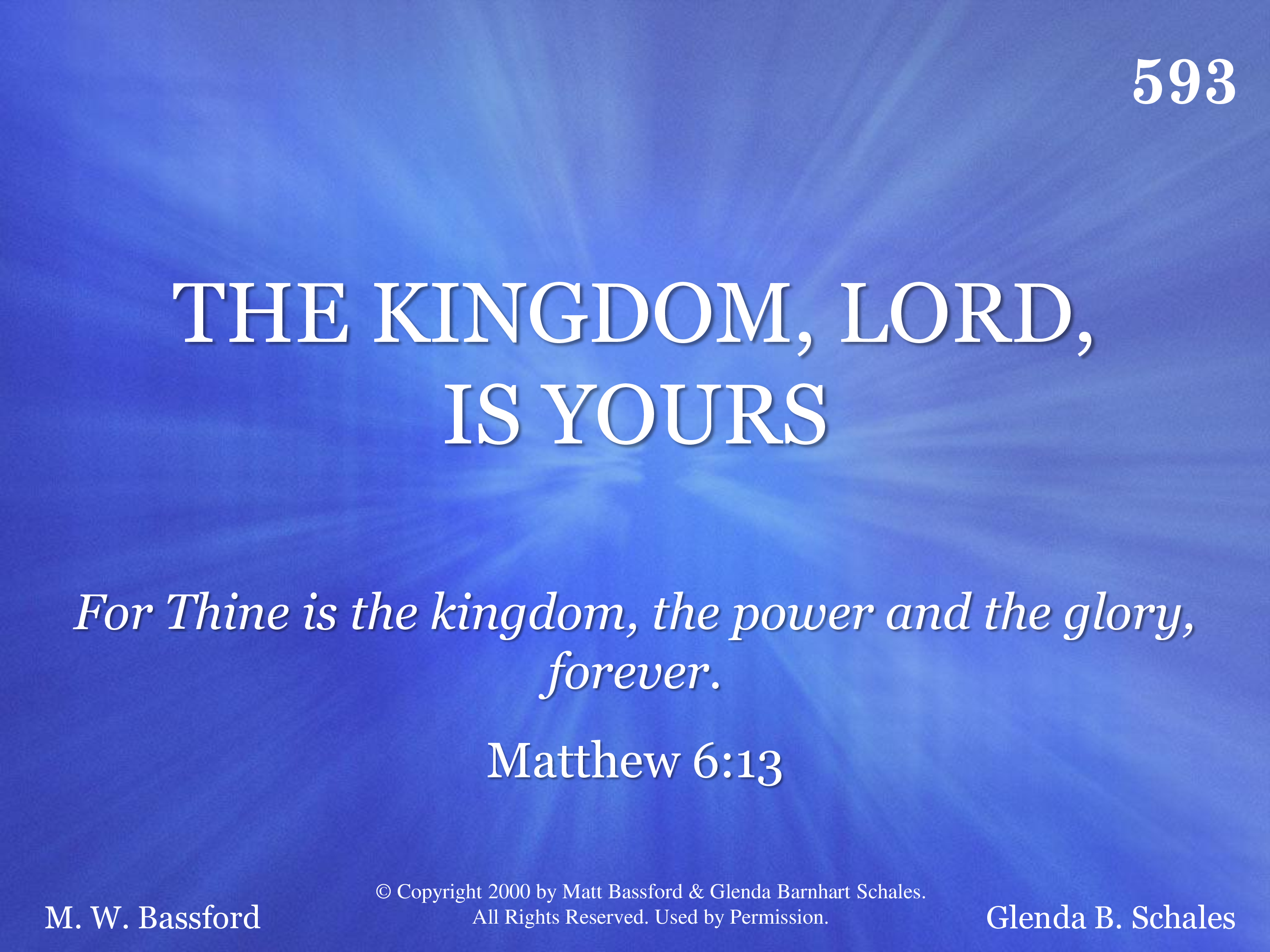 - Copyright © 2000 by Matt Bassford & Glenda Barnhart Schales. All Rights Reserved. Used by Permission.