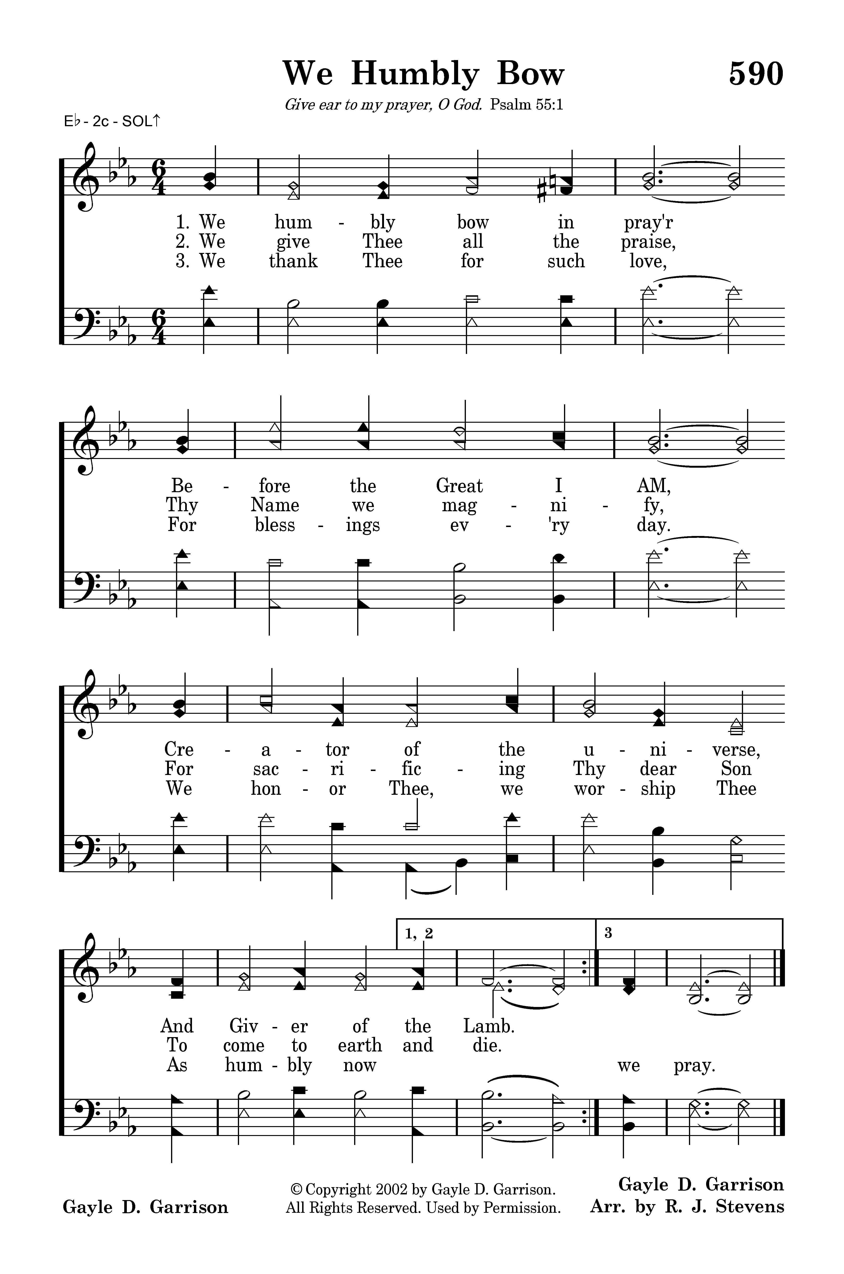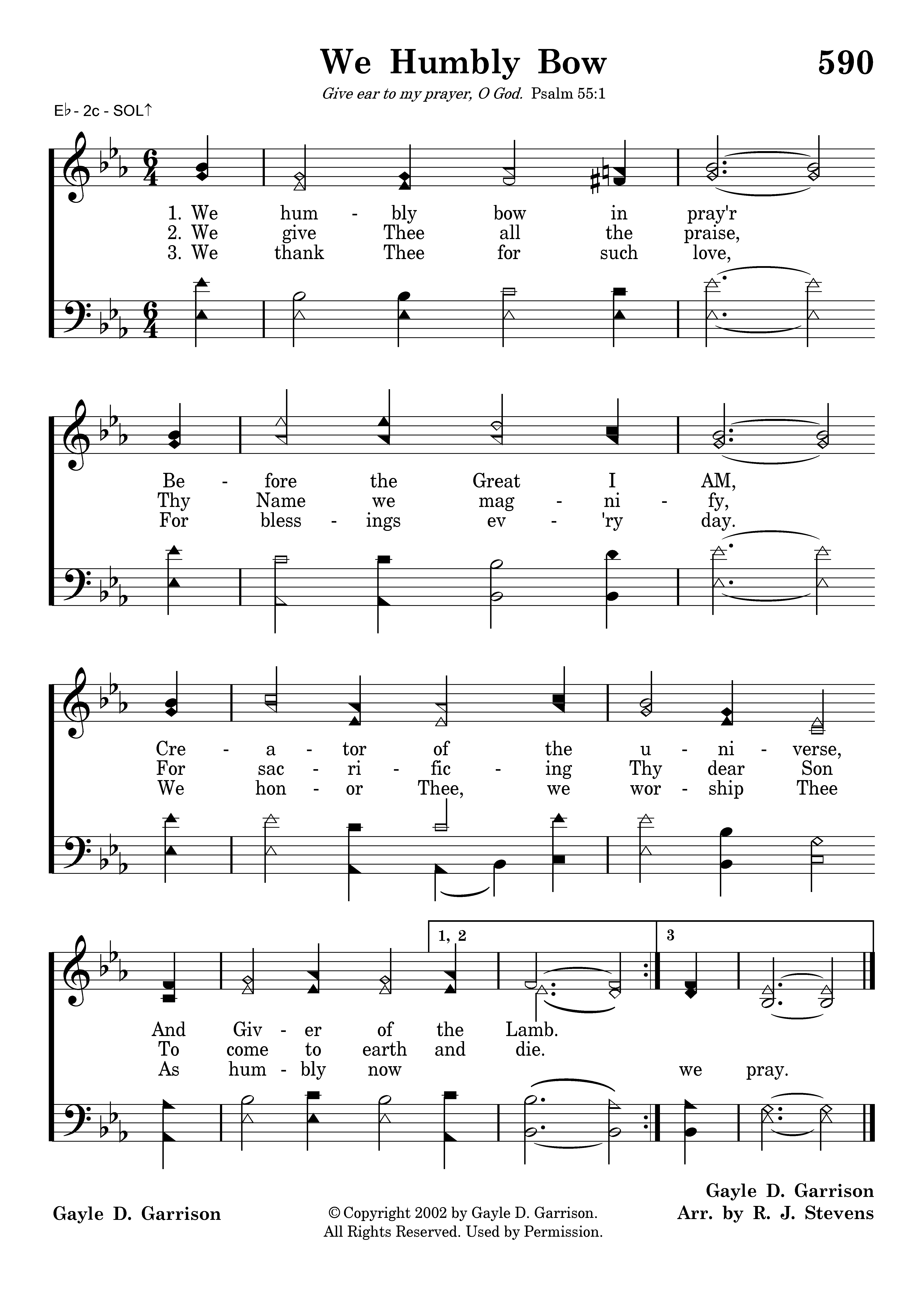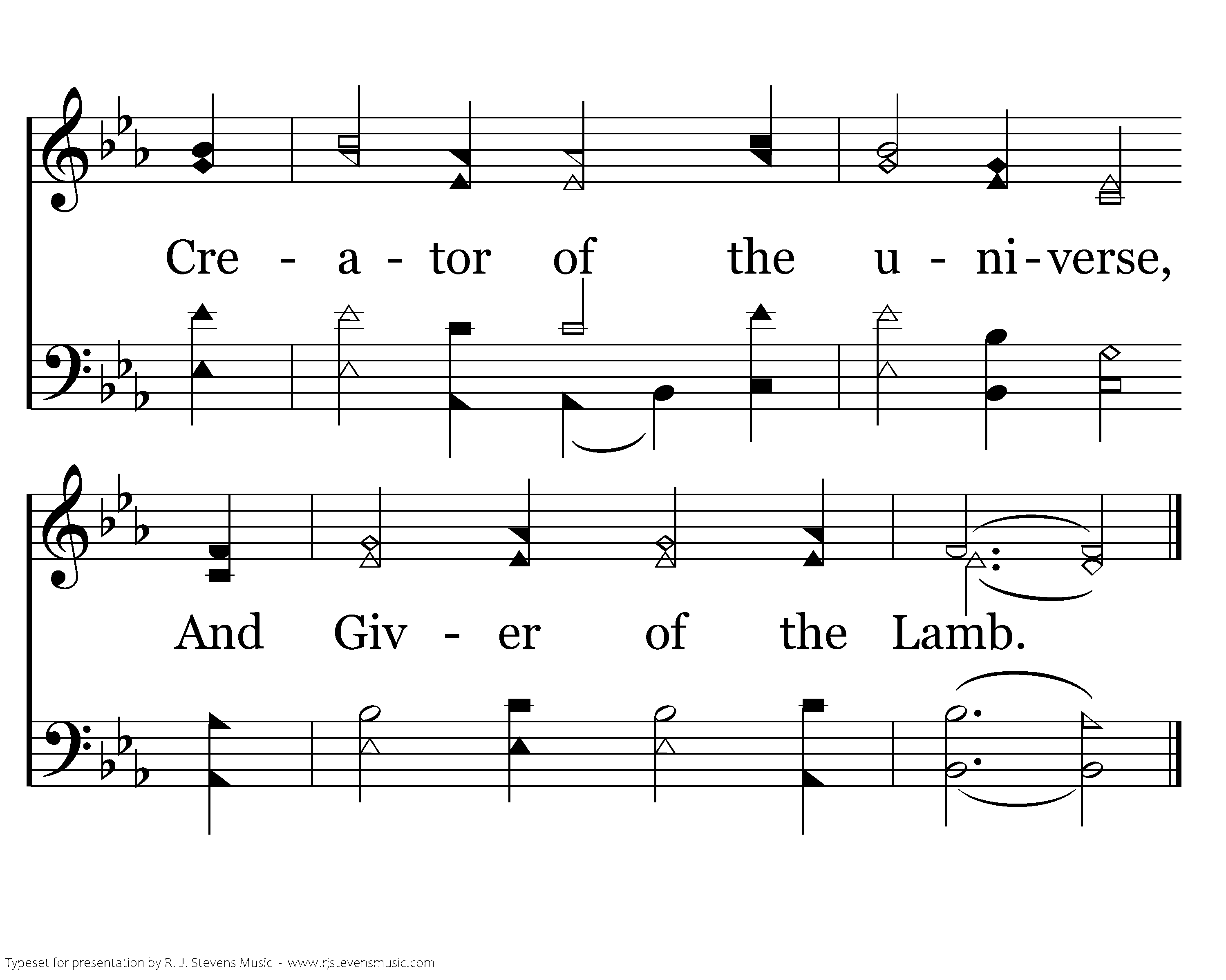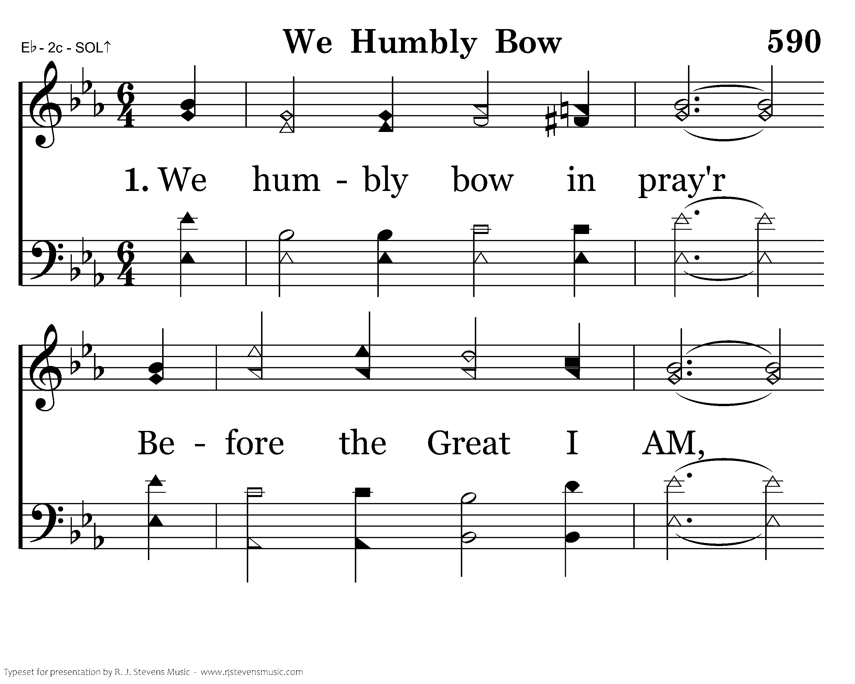 We humbly bow in pray'r Before the Great I AM, Creator of the universe, and Giver of the Lamb.