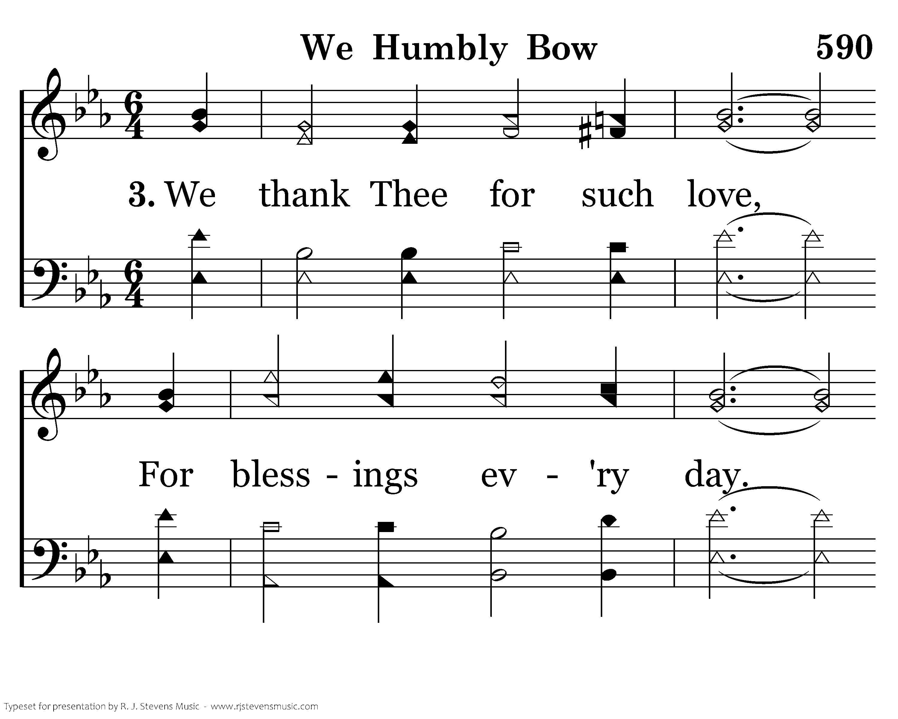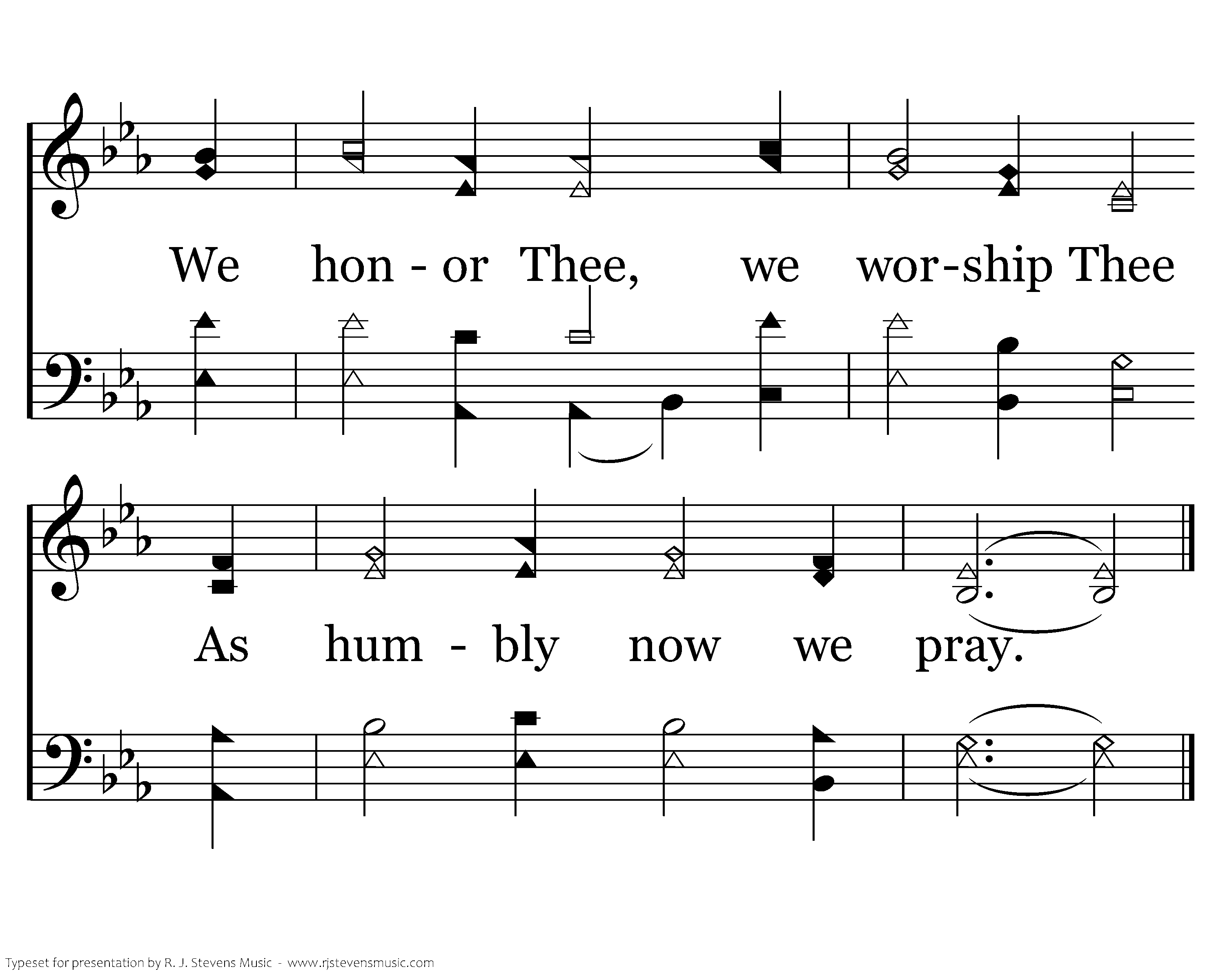 We thank Thee for such love, For blessings ev'ry day. We honor Thee, we worship Thee As humbly now we pray.