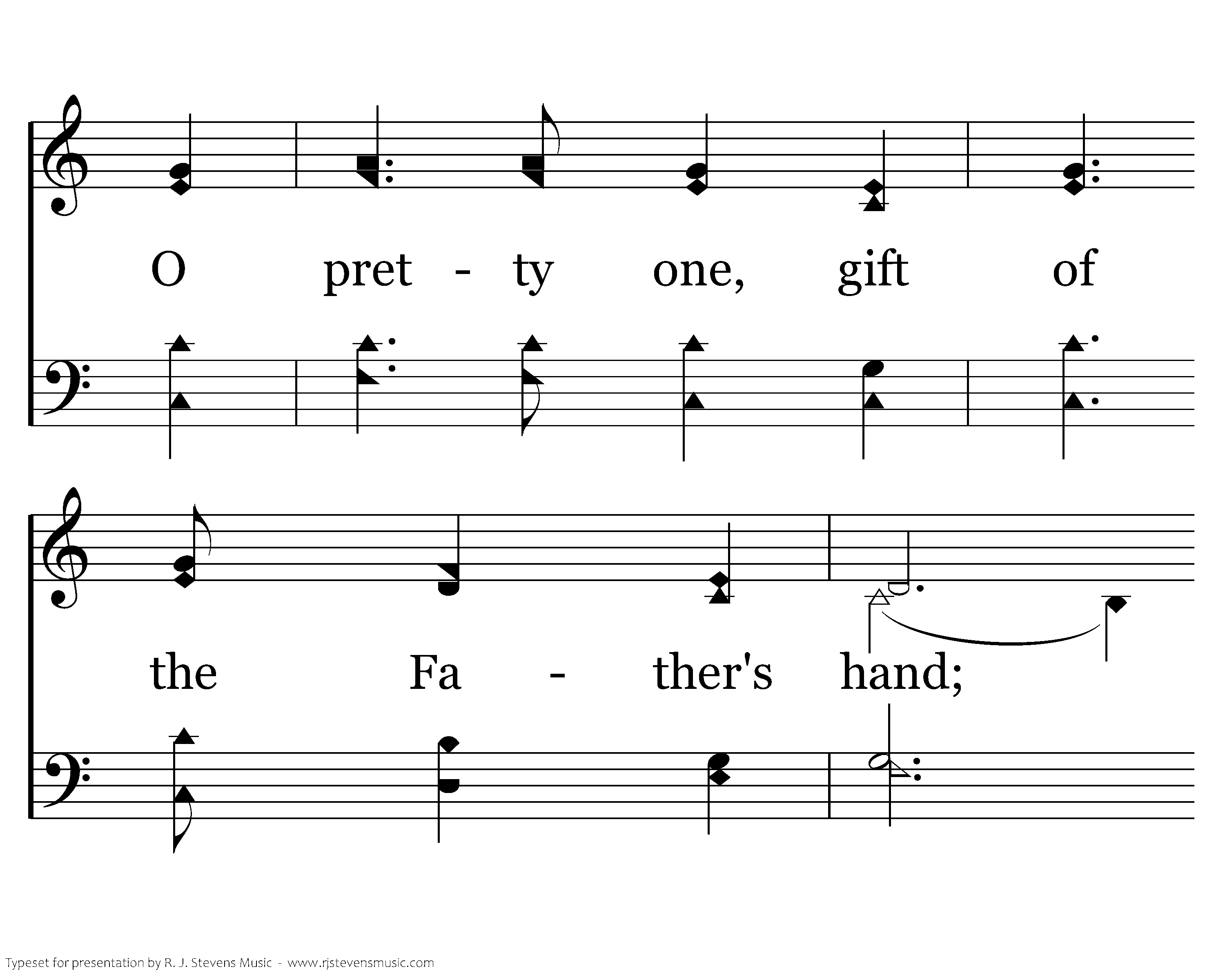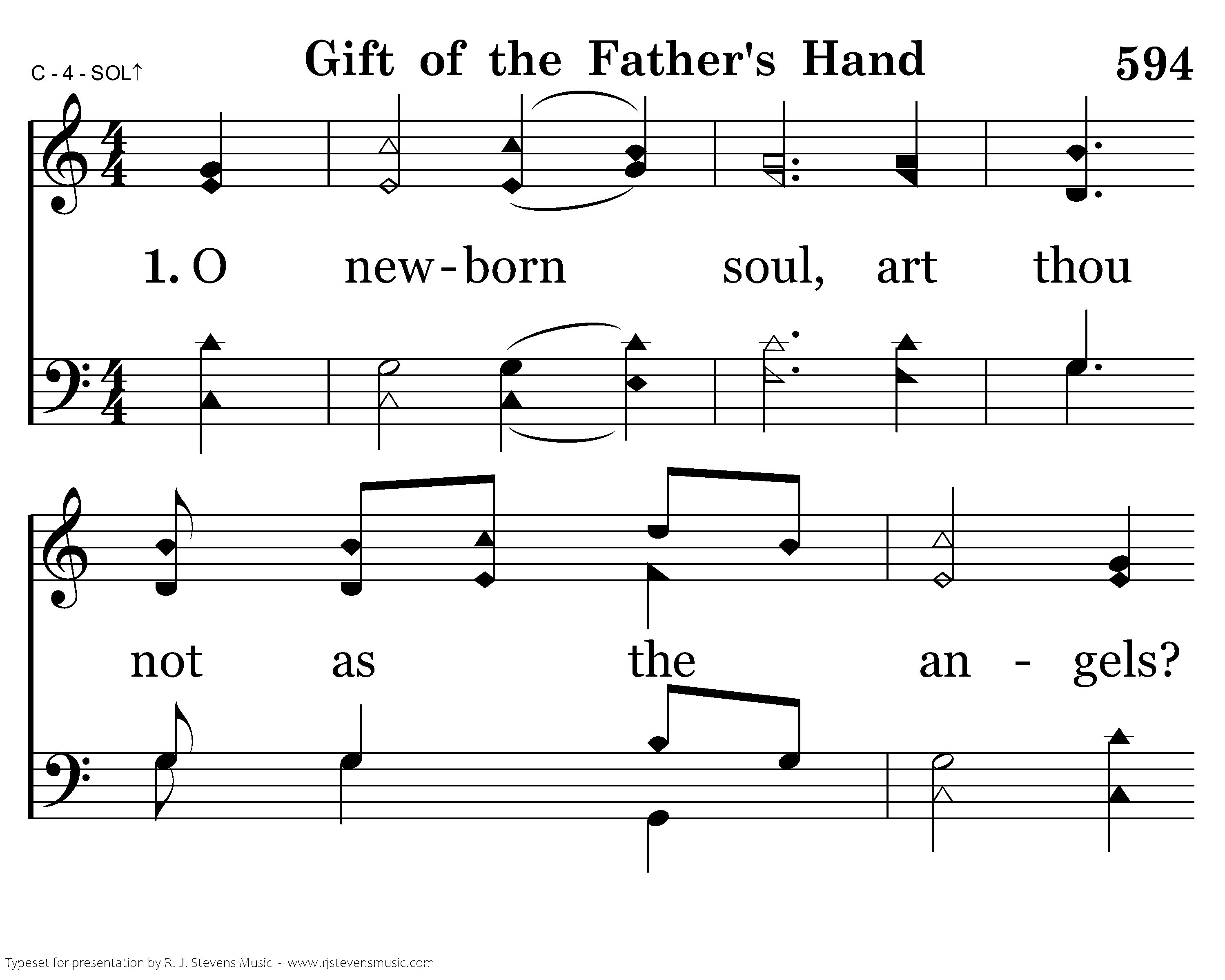 O newborn soul, art thou not as the angels? O pretty one, gift of the Father's hand; O soul so pure and suited but for glory How shall we keep, how shall we keep you safe from wiles of man?