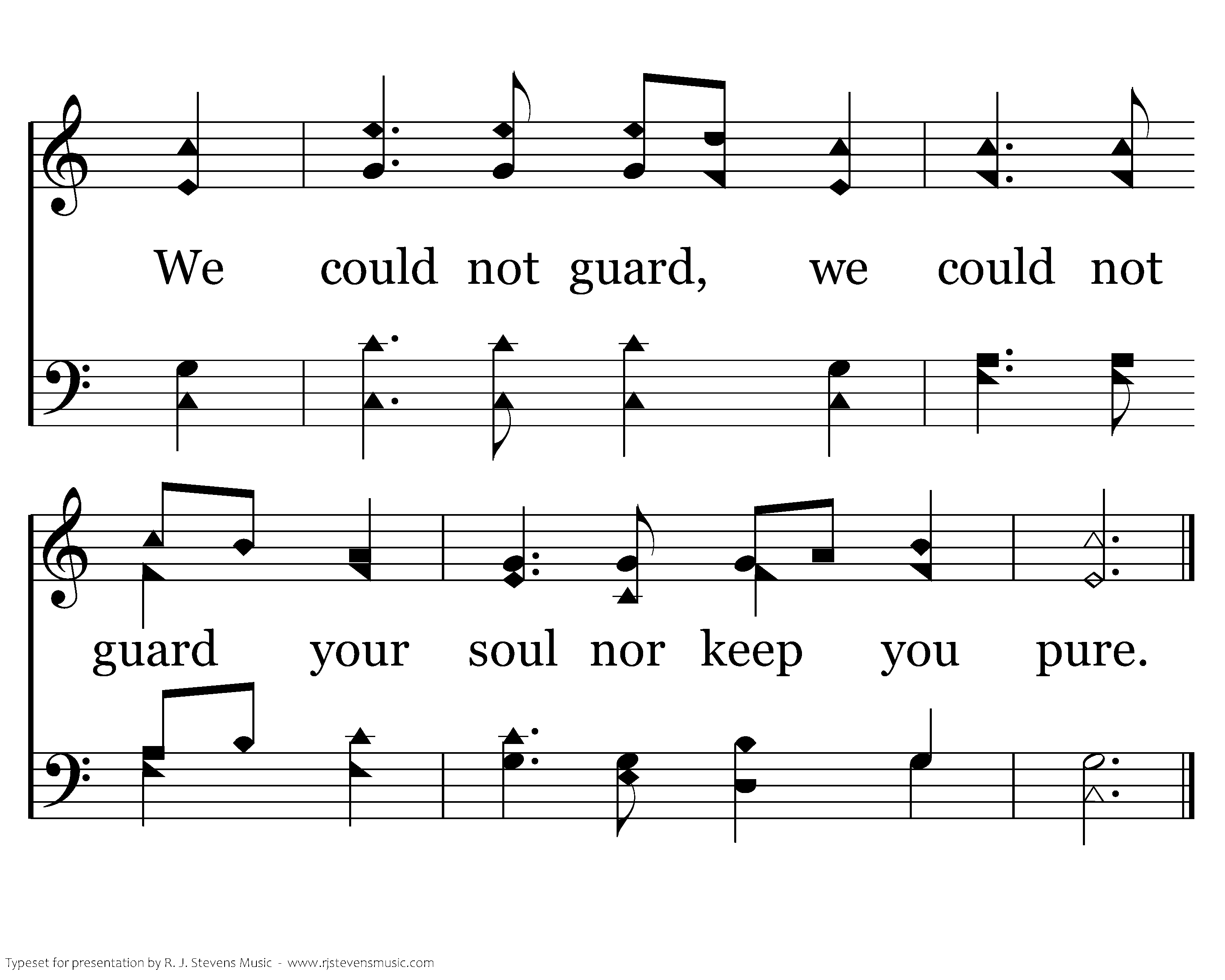How shall we keep your soul? How can we guide you? But for that gracious hand, we'd fail you sure. But for our God who formed your very being, We could not guard, we could not guard your soul nor keep you pure.