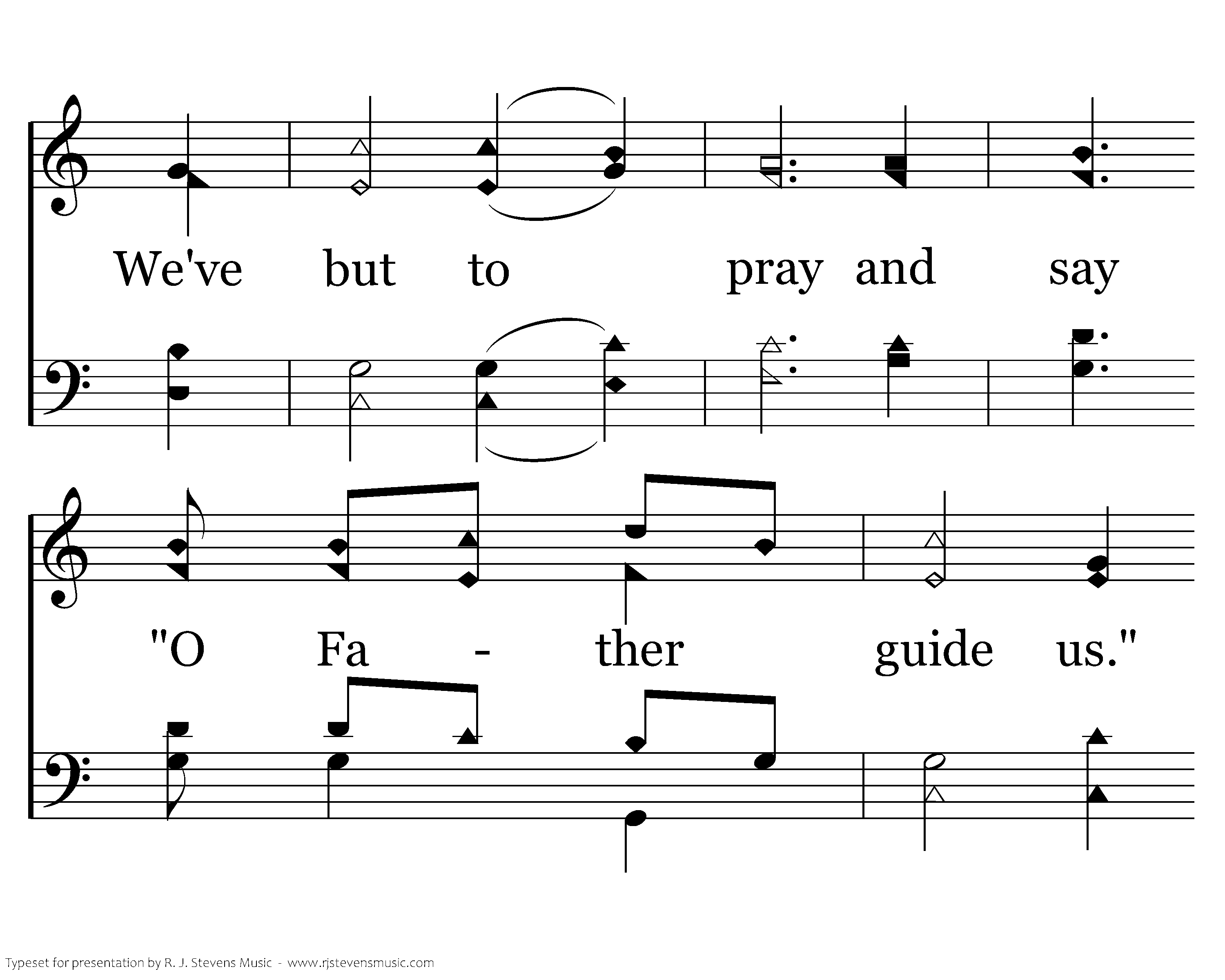 O newly born, to cherish and to keep you, As God would have us keep you for His own; We've but to pray and say "O Father guide us." Nor will we fear, nor will we fear, He's left us not alone.