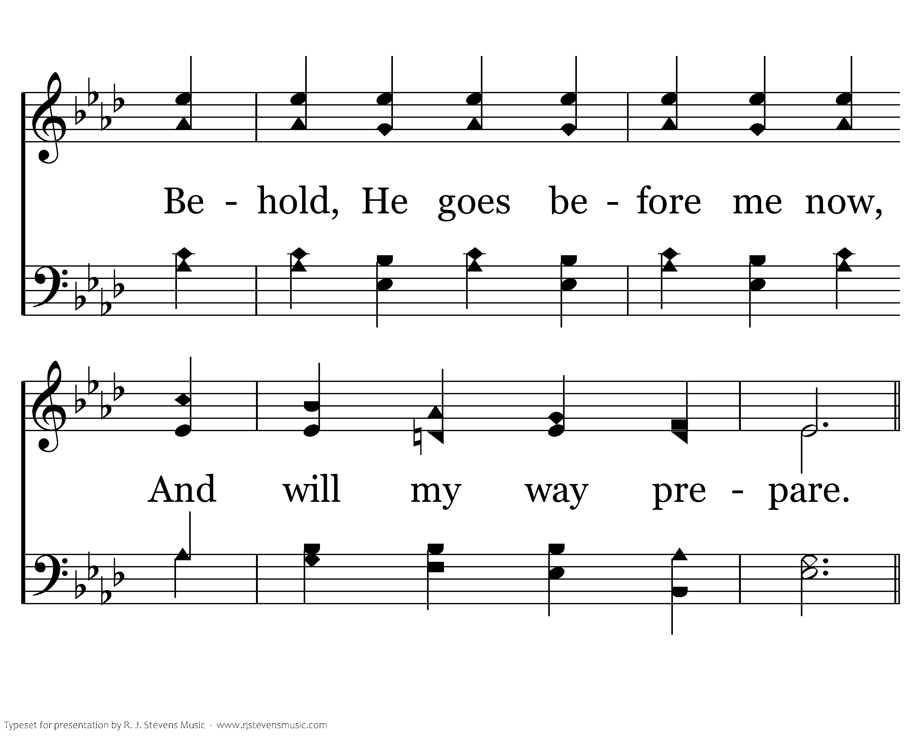 The future beckons and I bow: My God removes the care! Behold, He goes before me now, And will my way prepare.