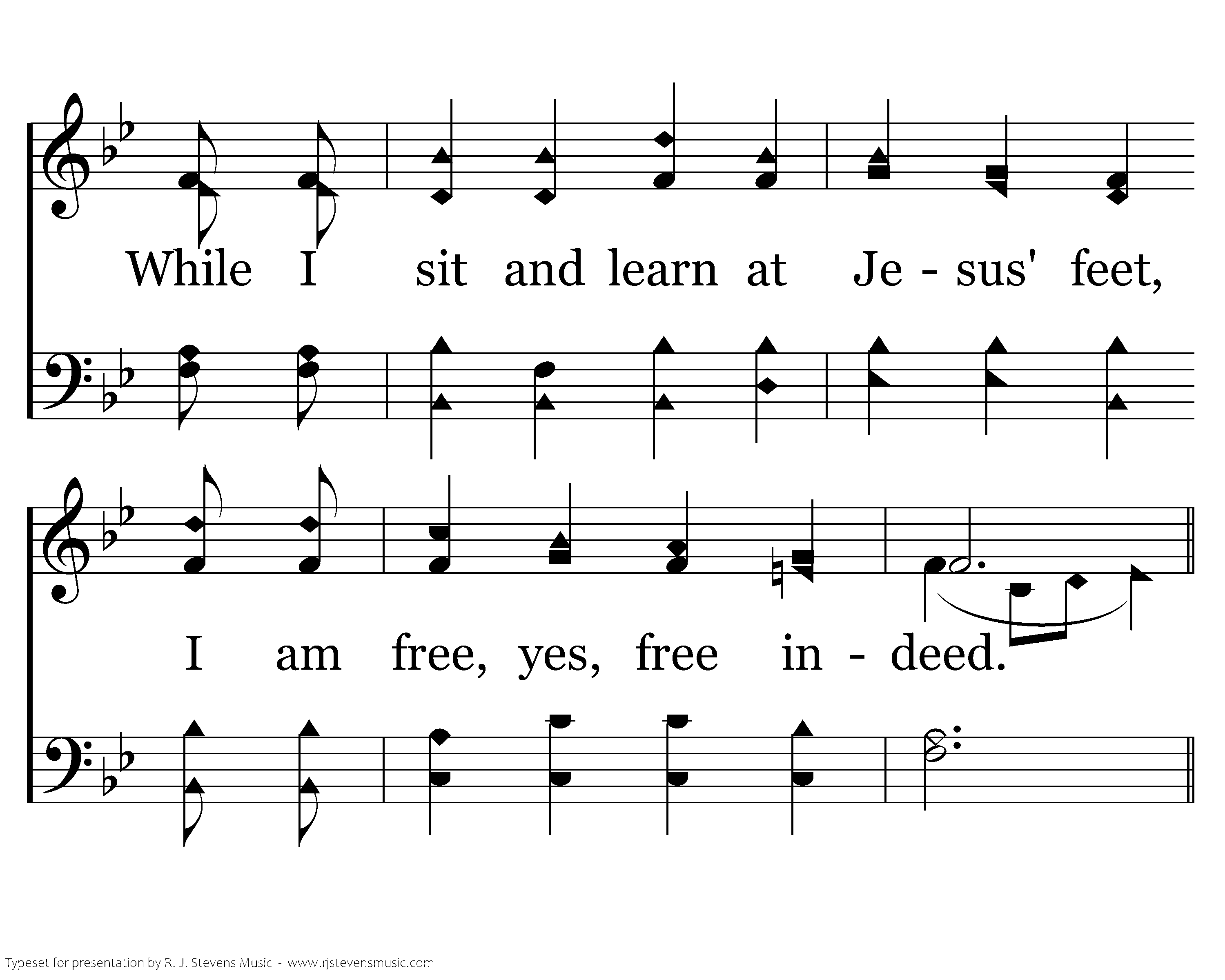 I have found His grace is all complete, He supplieth ev'ry need; While I sit and learn at Jesus' feet, I am free, yes, free indeed.