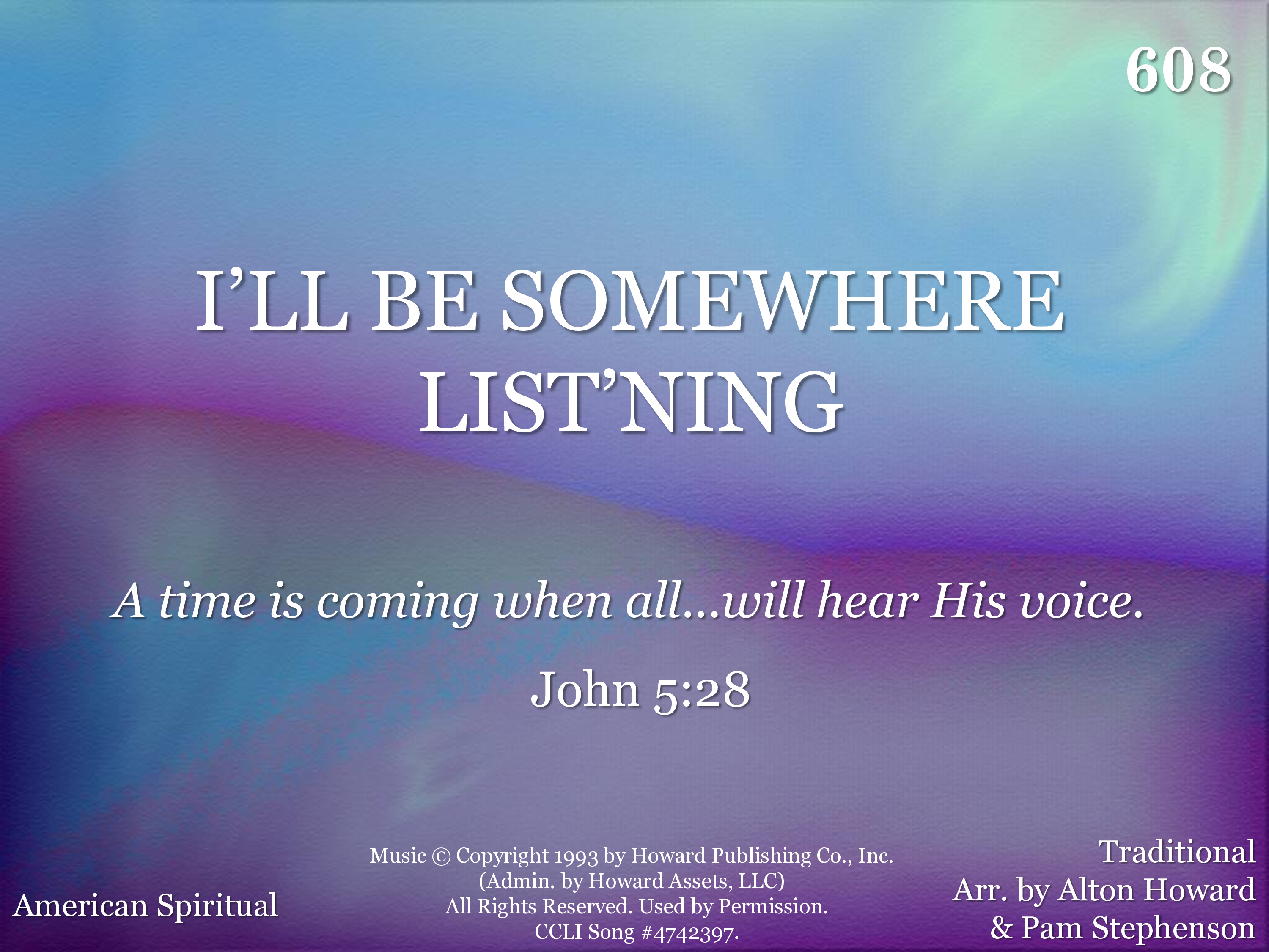 - Music © Copyright 1993 by Howard Publishing Col, Inc. (Admin. by Howard Assets, LLC.) All Rights Reserved. Used by Permission.