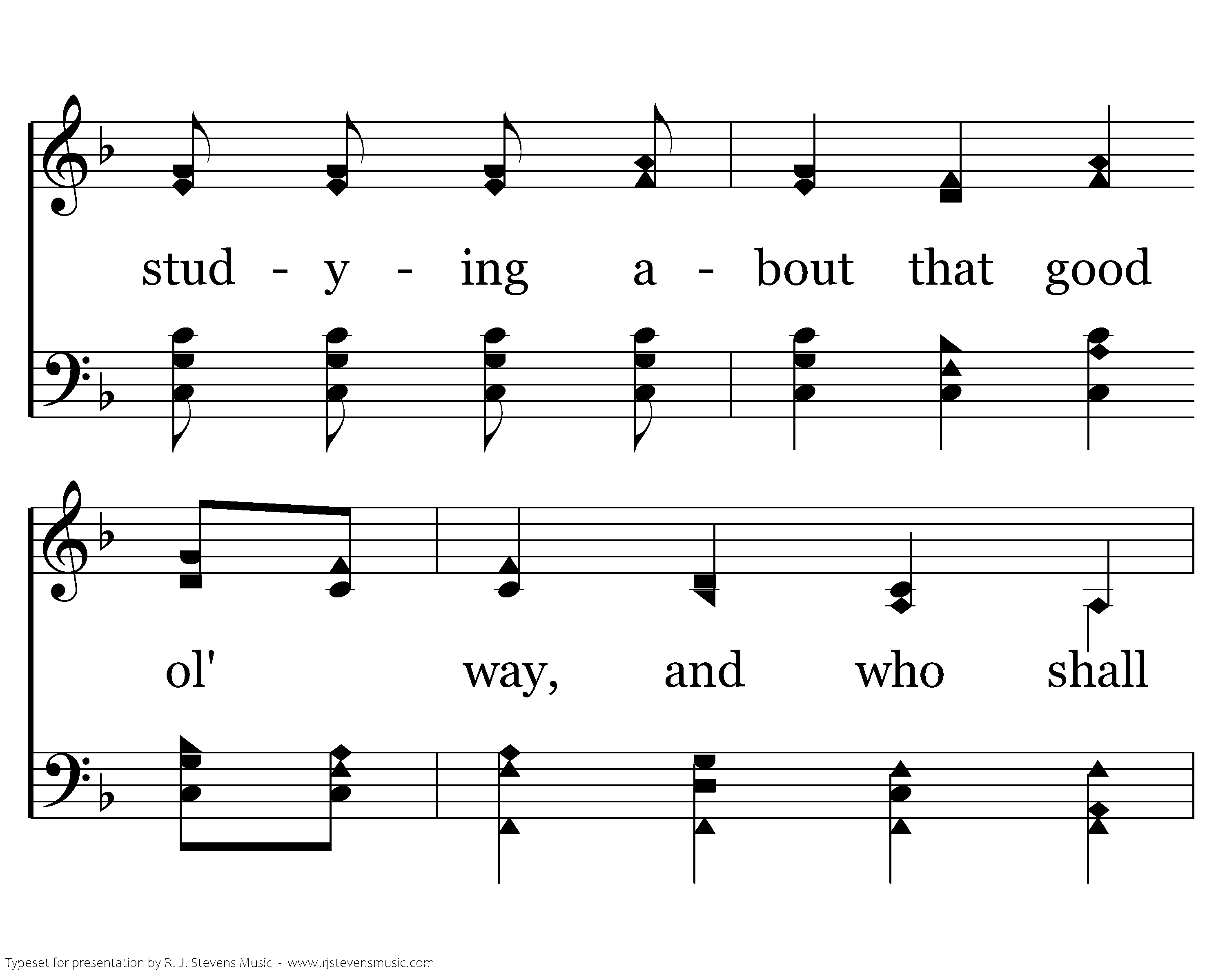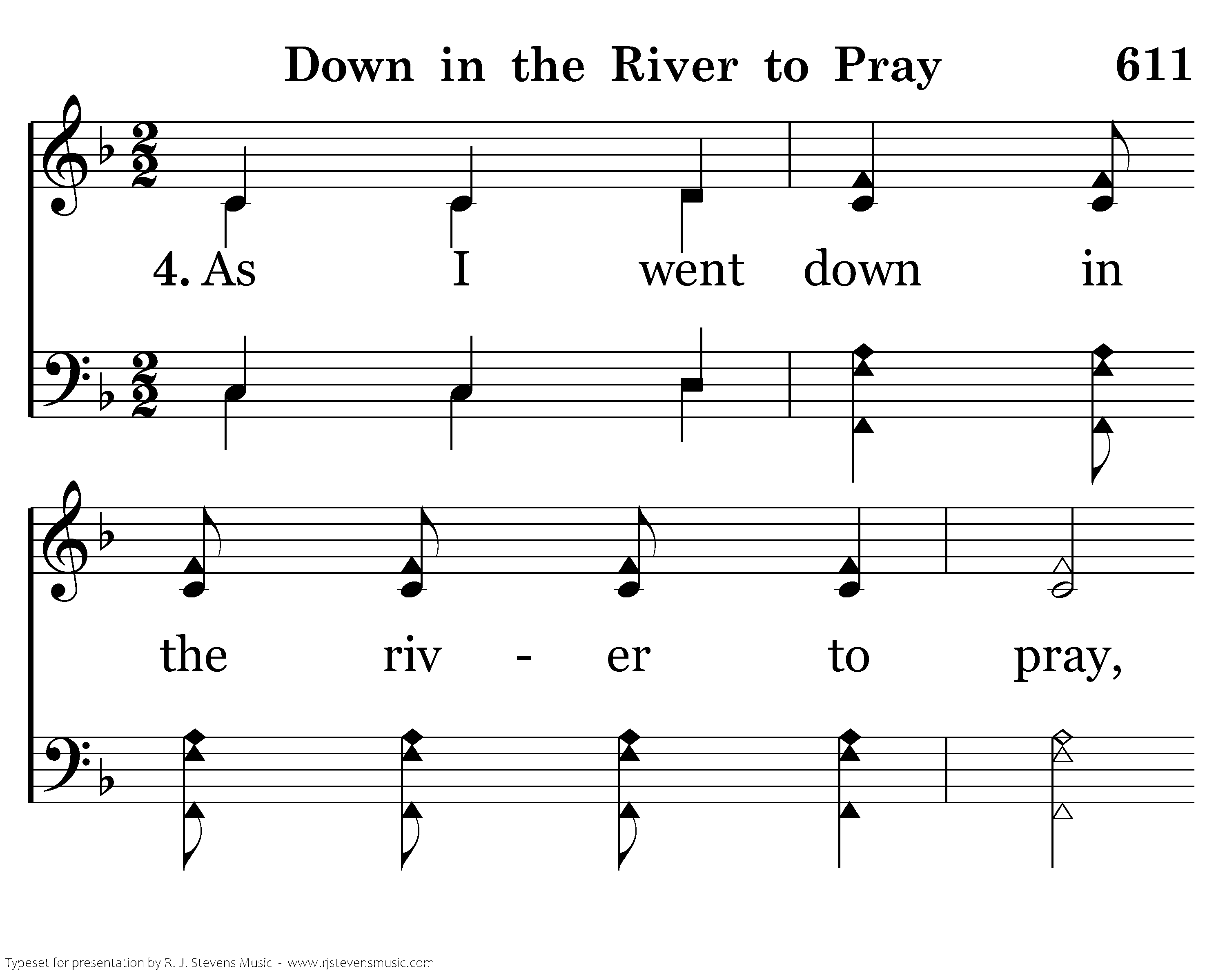 As I went down in the river to pray, studying about that good ol' way, and who shall wear a robe and crown, good Lord, show me the way.