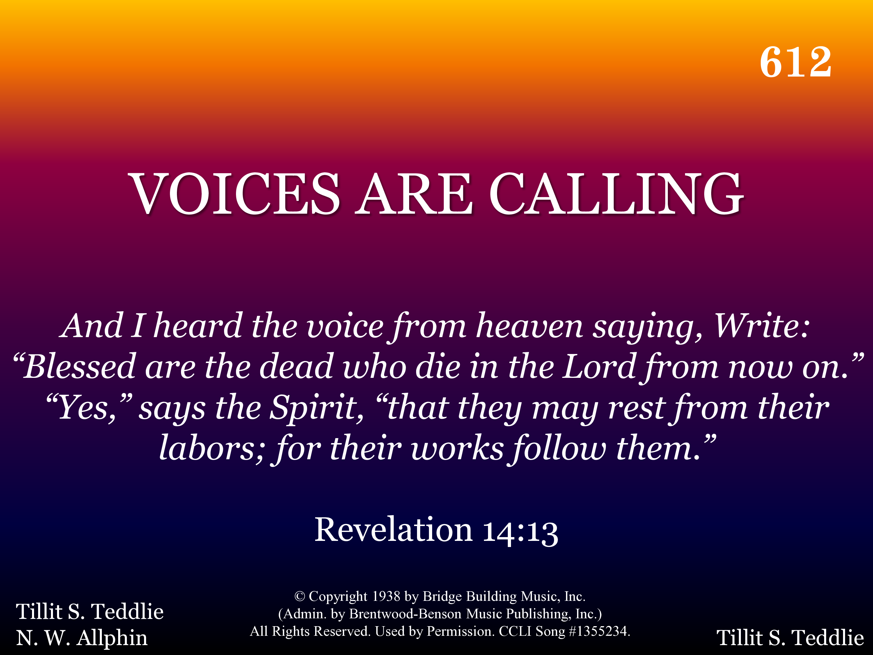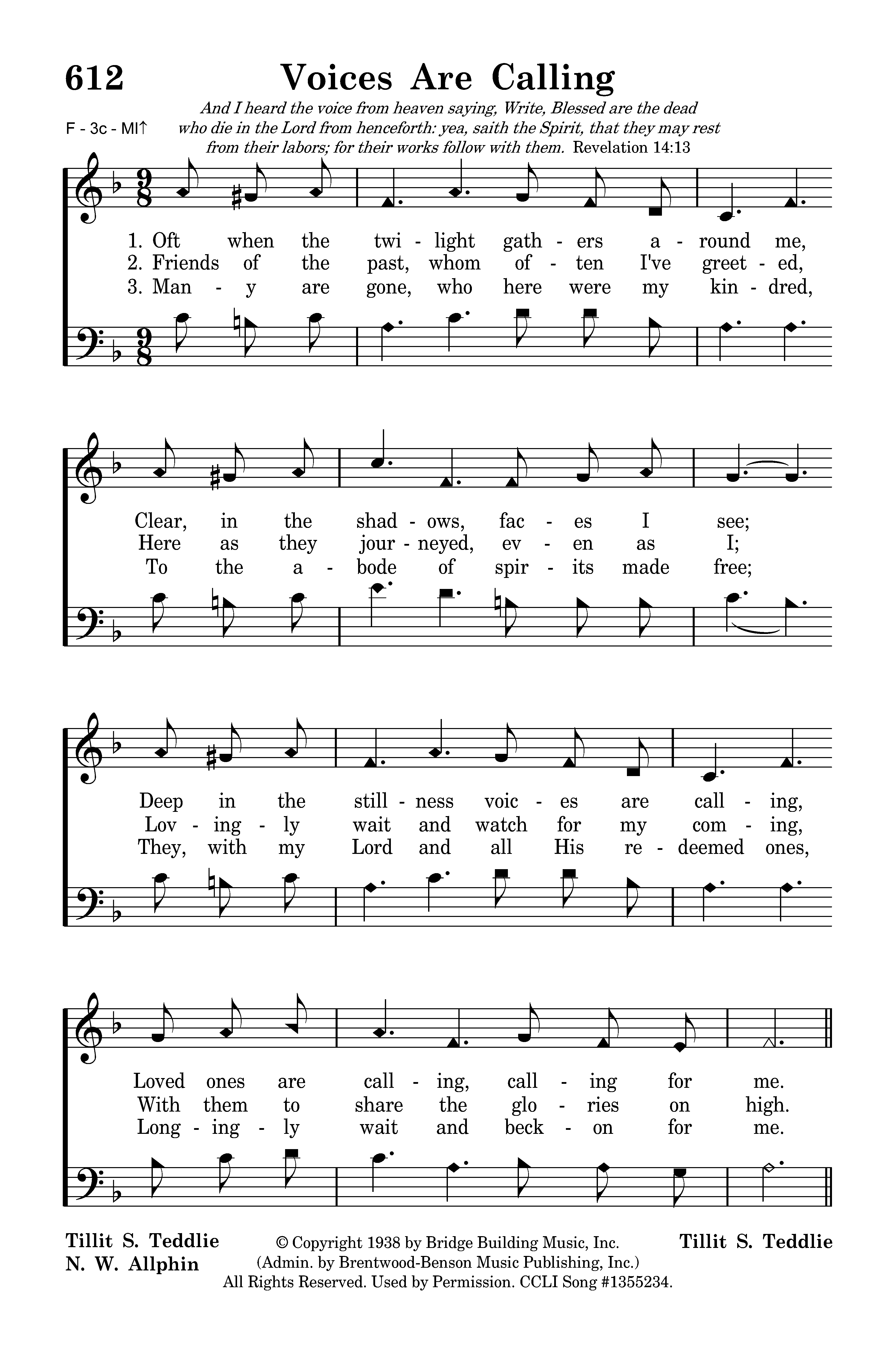 - © Copyright 1938 by Bridge Building Music, Inc. (Admin. by Brentwood-Benson Music Publishing, Inc.) All Rights Reserved. Used by Permission.