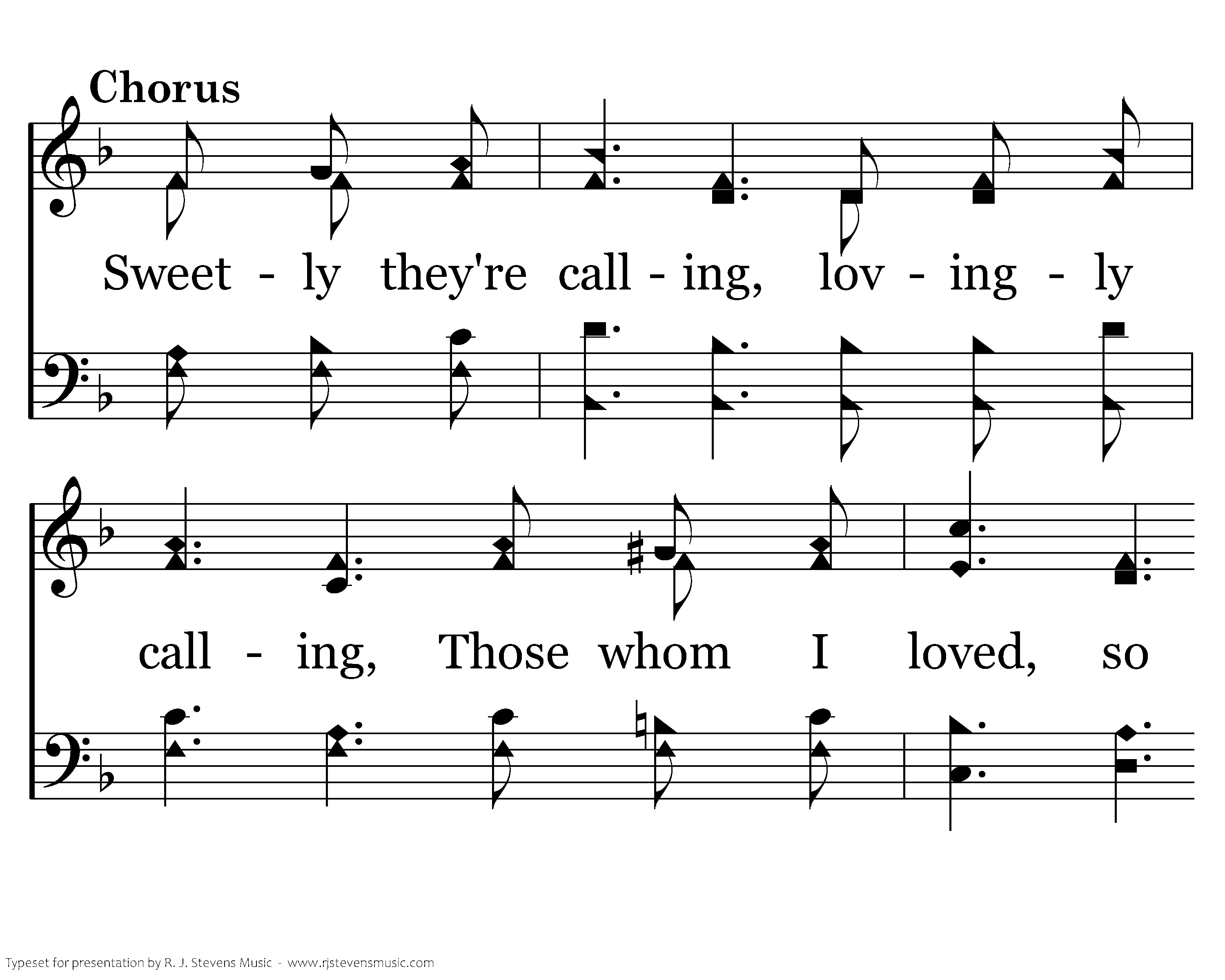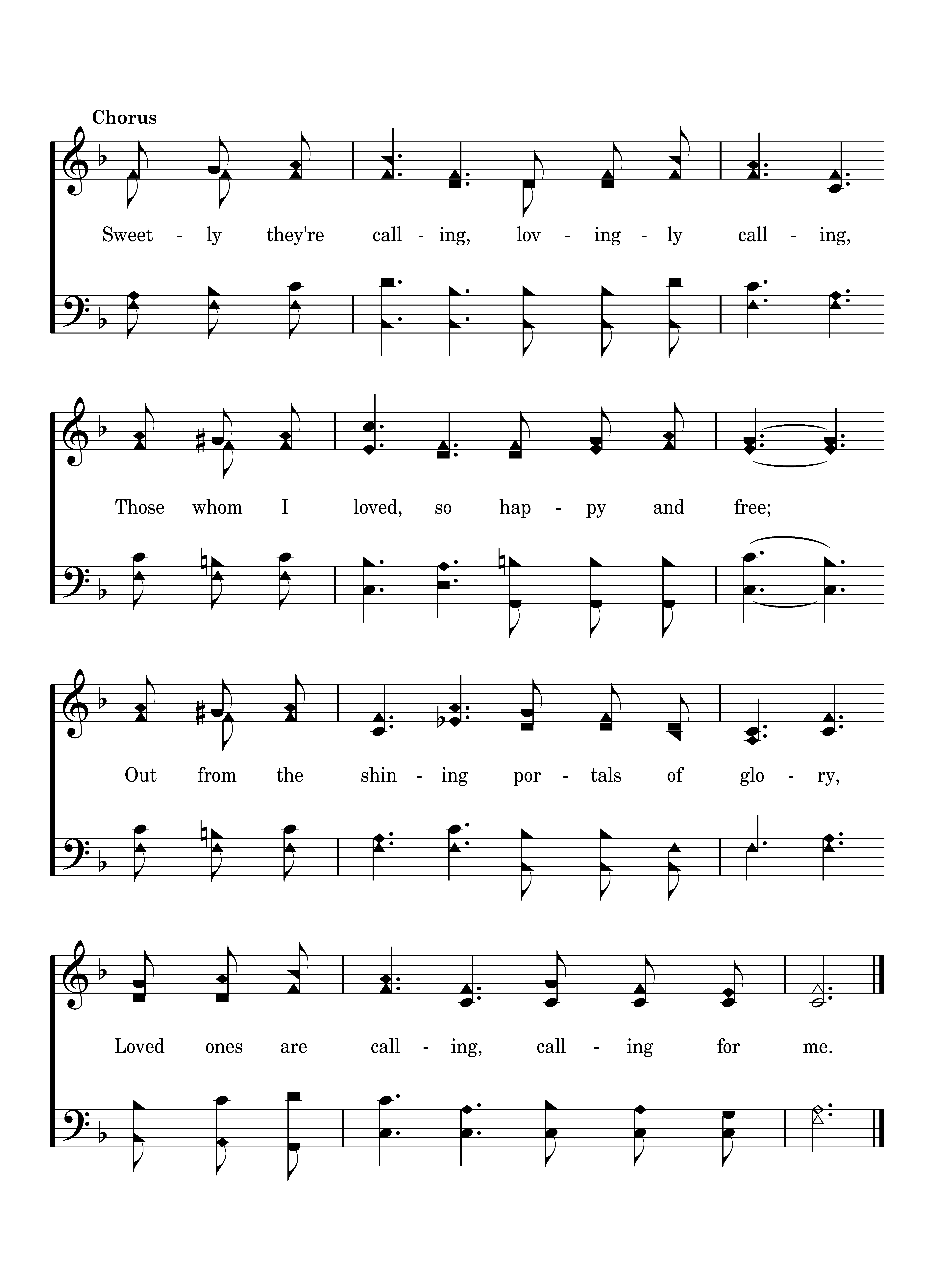 Sweetly they're calling, lovingly calling, Those whom I loved, so happy and free; Out from the shining portals of glory, Loved ones are calling, calling for me.