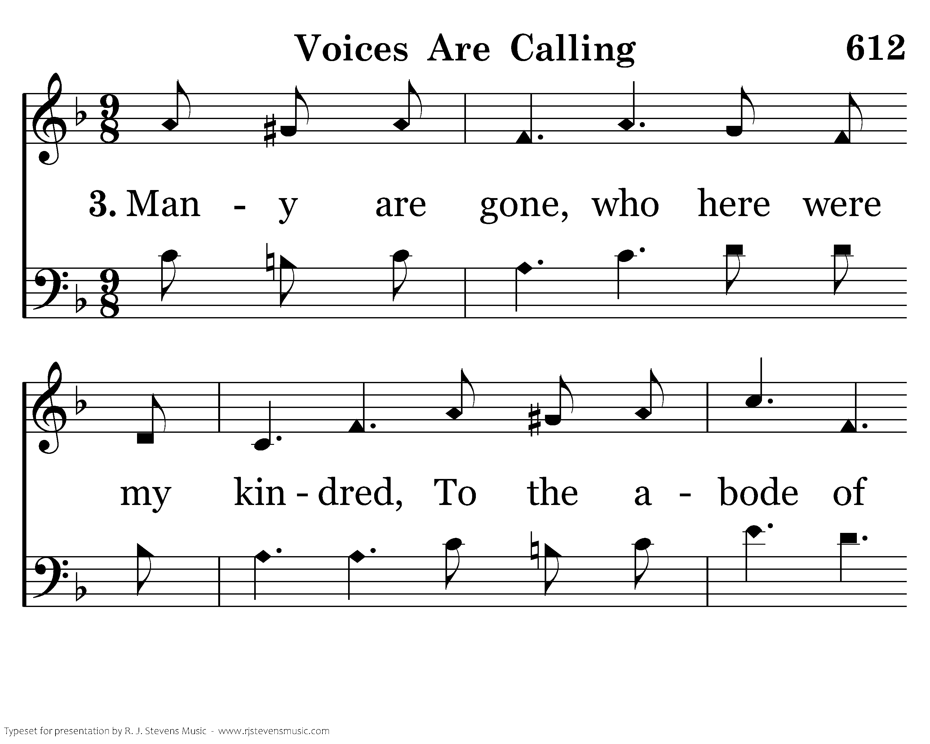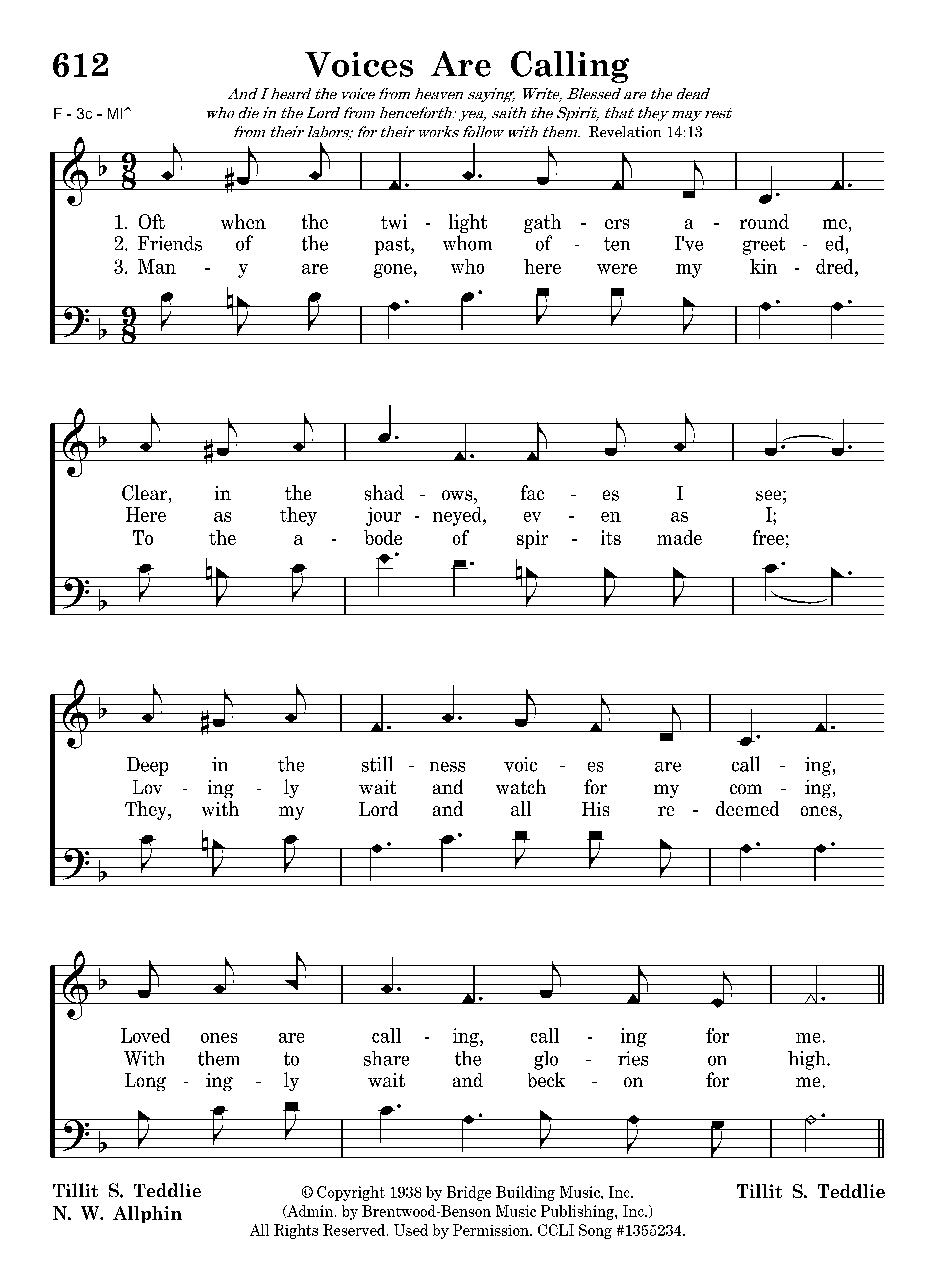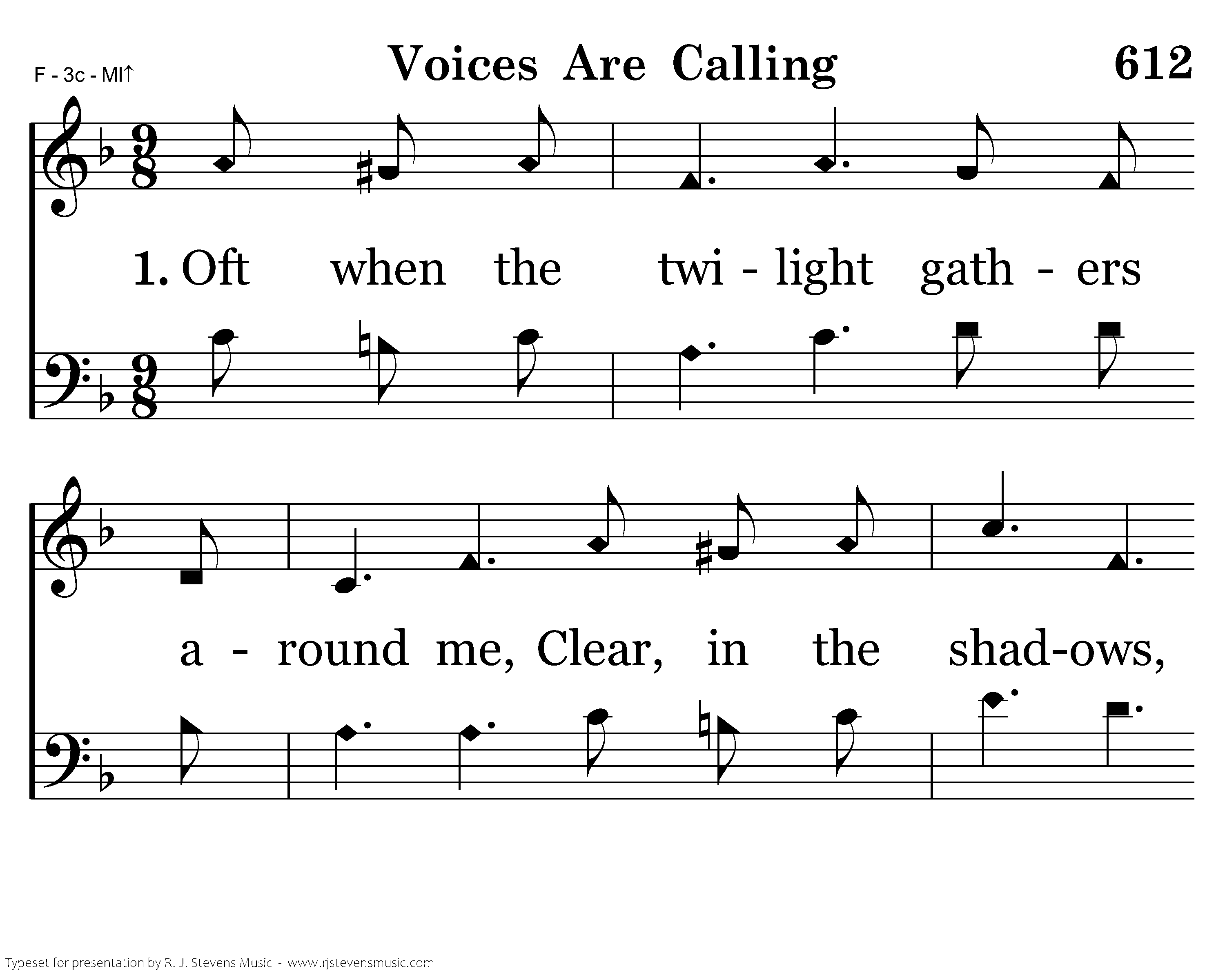 Oft when the twilight gathers around me, Clear, in the shadows, faces I see; Deep in the stillness voices are calling, Loved ones are calling, calling for me.