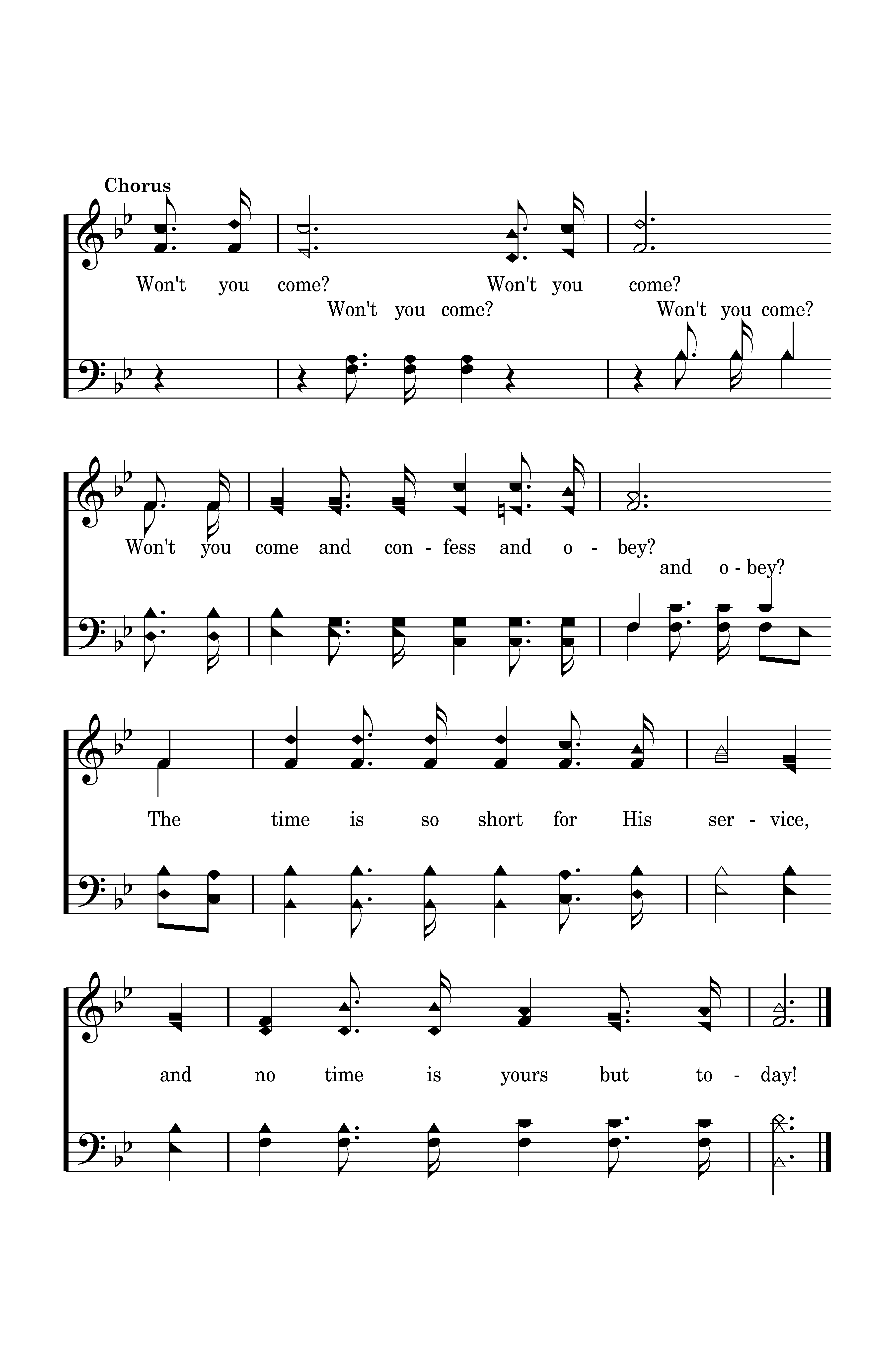 Won't you come? Won't you come? Won't you come and confess and obey? The time is so short for His service, and no time is yours but today!