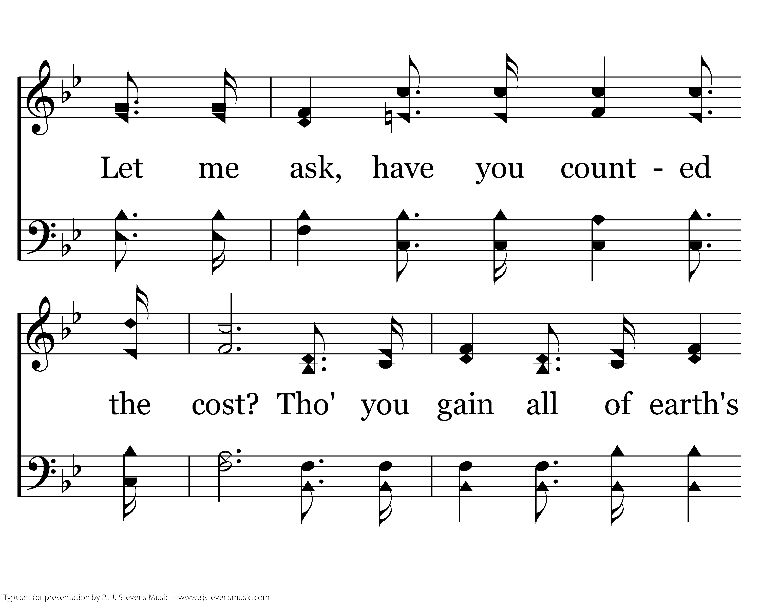 Let me ask, have you counted the cost? Tho' you gain all of earth's fleeting treasure, If your soul in the end should be lost!