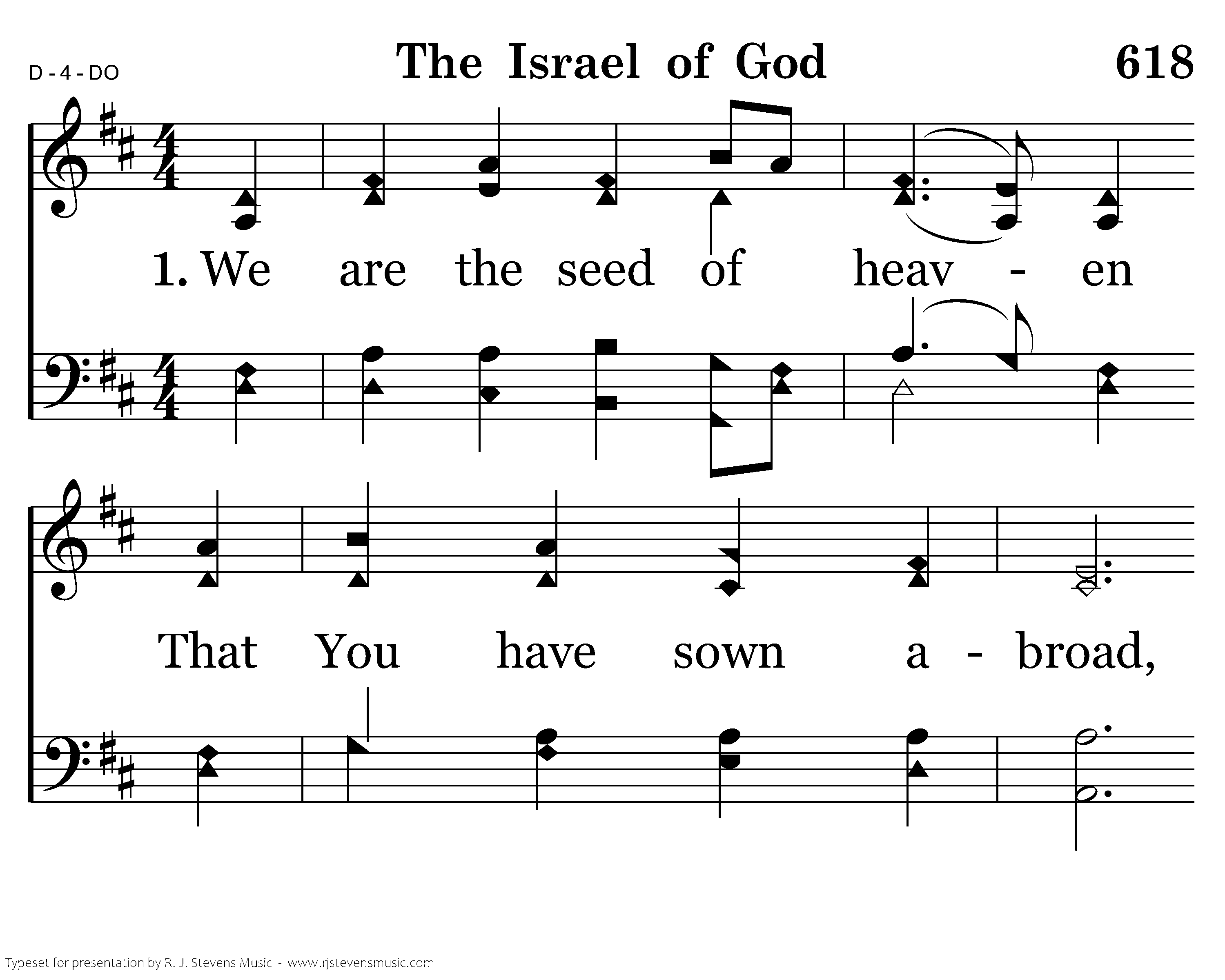 We are the seed of heaven That You have sown abroad, An everlasting kingdom, The Israel of God. For You are our Redeemer, And we, Your chosen race; Both God and man, united In covenant of grace.