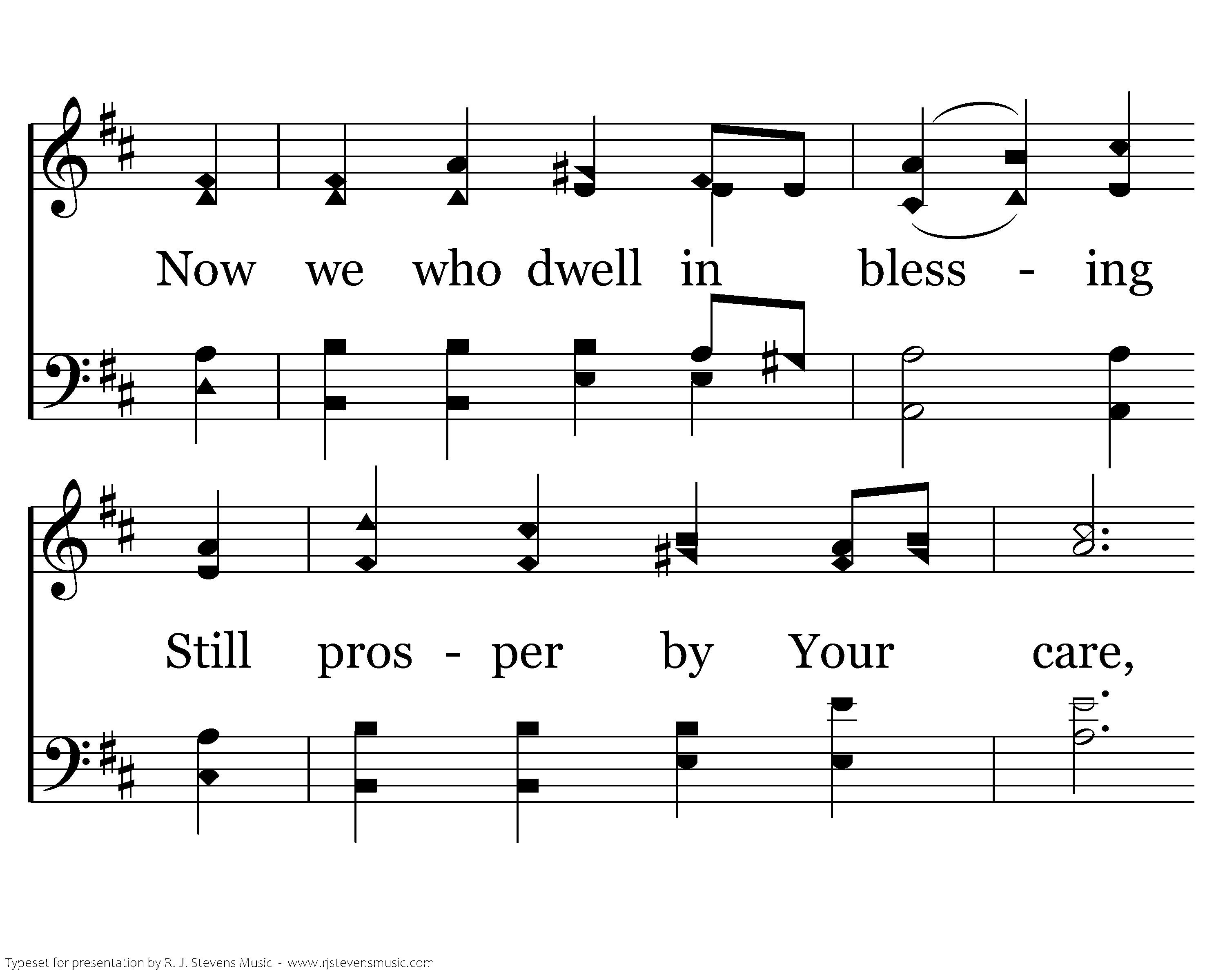 By grace You brought our fathers Into their promised land, Their guide, Your cloud and pillar, Their strength, Your mighty hand. Now we who dwell in blessing Still prosper by Your care, Your guidance, strength, and promise, The answer to each prayer.